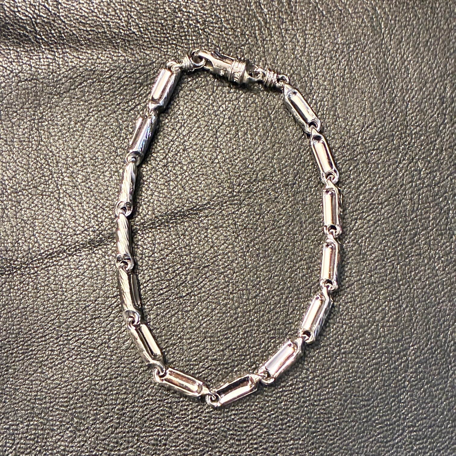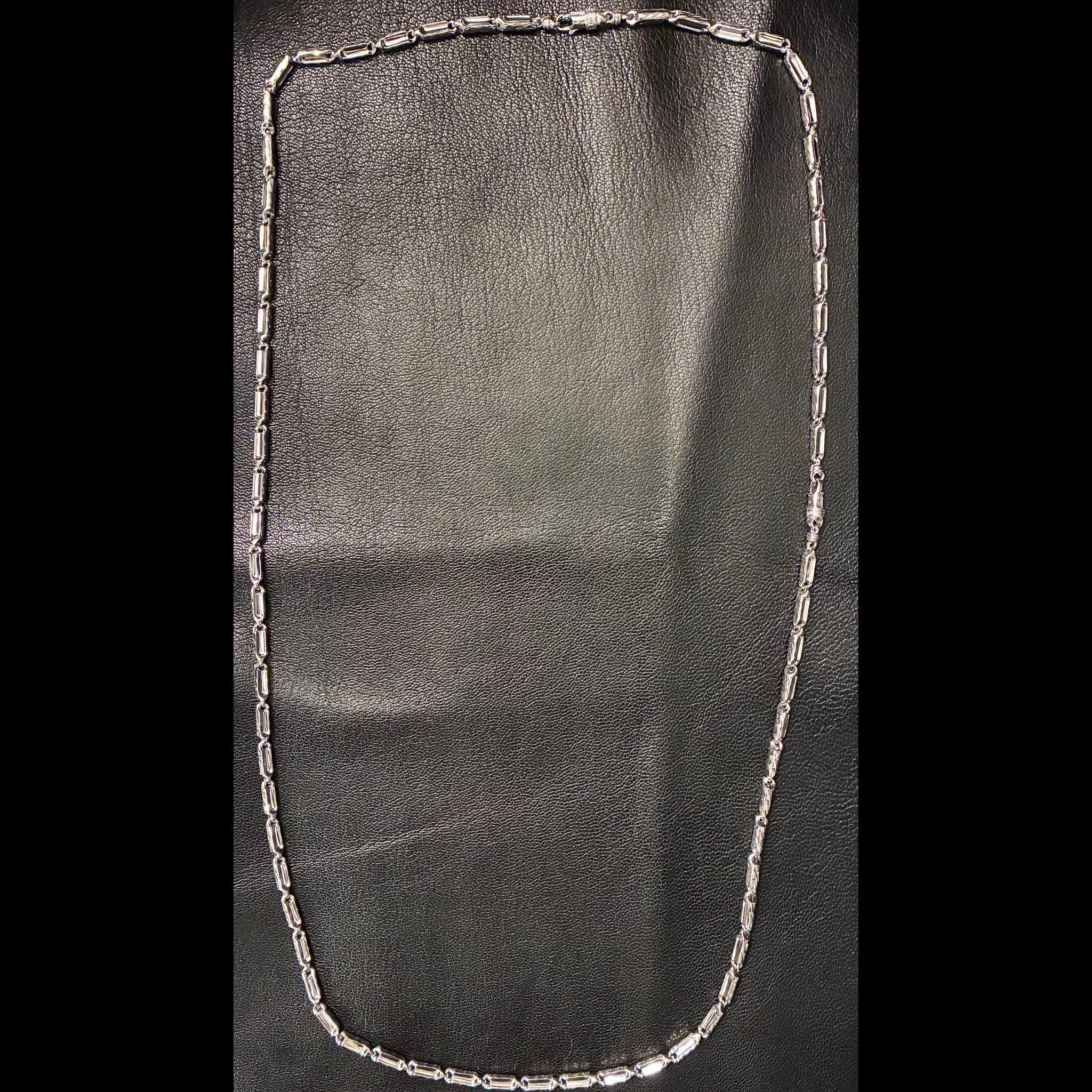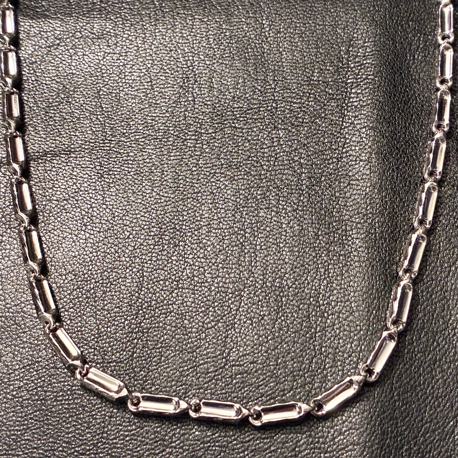 ラッパーやB-BOYが好むロングタイプのネックレスで、光が反射するようなカットデザインと無地のシンプルなデザインを組み合わせており、ブレスレットと組み合わせると更にロングチェーンとして使うことも可能です。