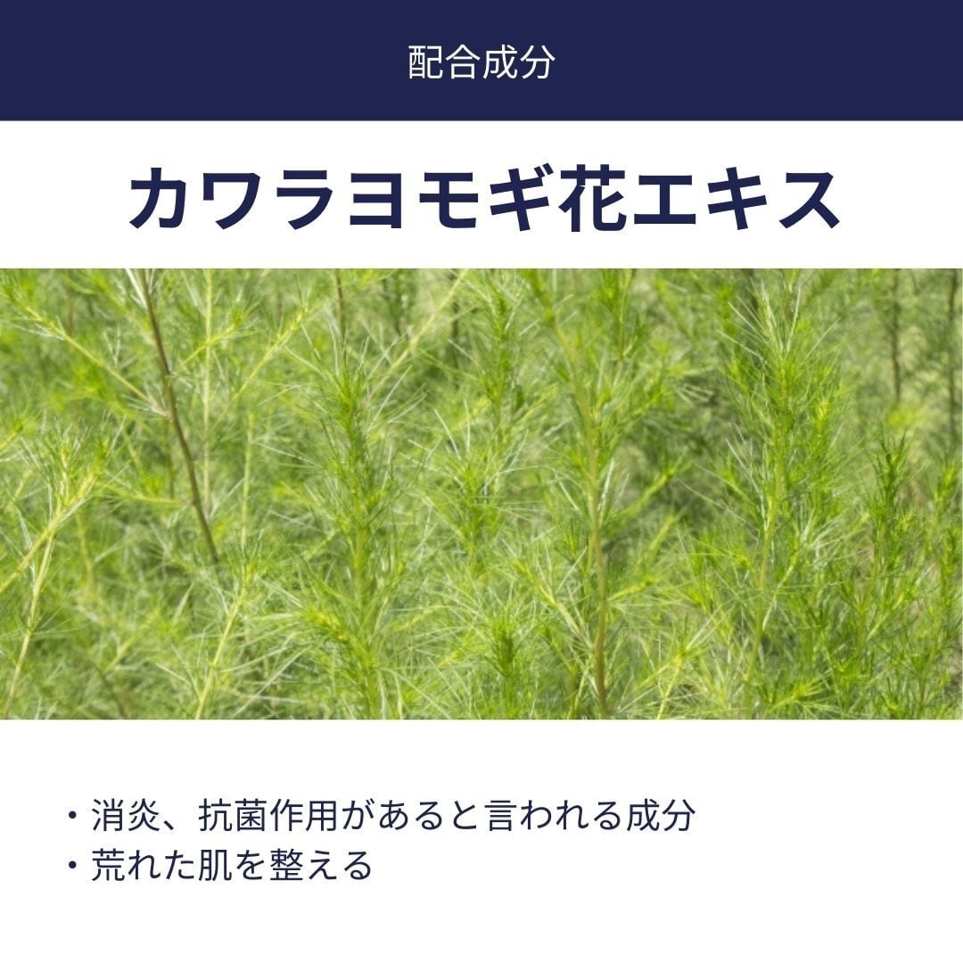 水、ラウラミドプロピルベタイン、ラウロイルメチルアラニンNa、ポリクオタニウム-52、PEG-32、ソルビトール、コカミドDEA、セラミドNP(セラミド3)、セラミドAP(セラミド6Ⅱ)、セラミドEOP(セラミド1)、ヒアルロン酸Na、マコンブエキス、カワラヨモギ花エキス、チョウジエキス、加水分解コラーゲン、水溶性コラーゲン、フィトスフィンゴシン、コレステロール、ラウロイルラクチレートNa、ラウリン酸ポリグリセリル-10、BG、PCA-Na、塩化Na、キサンタンガム、クエン酸、クエン酸Na、カルボマー、フェノキシエタノール