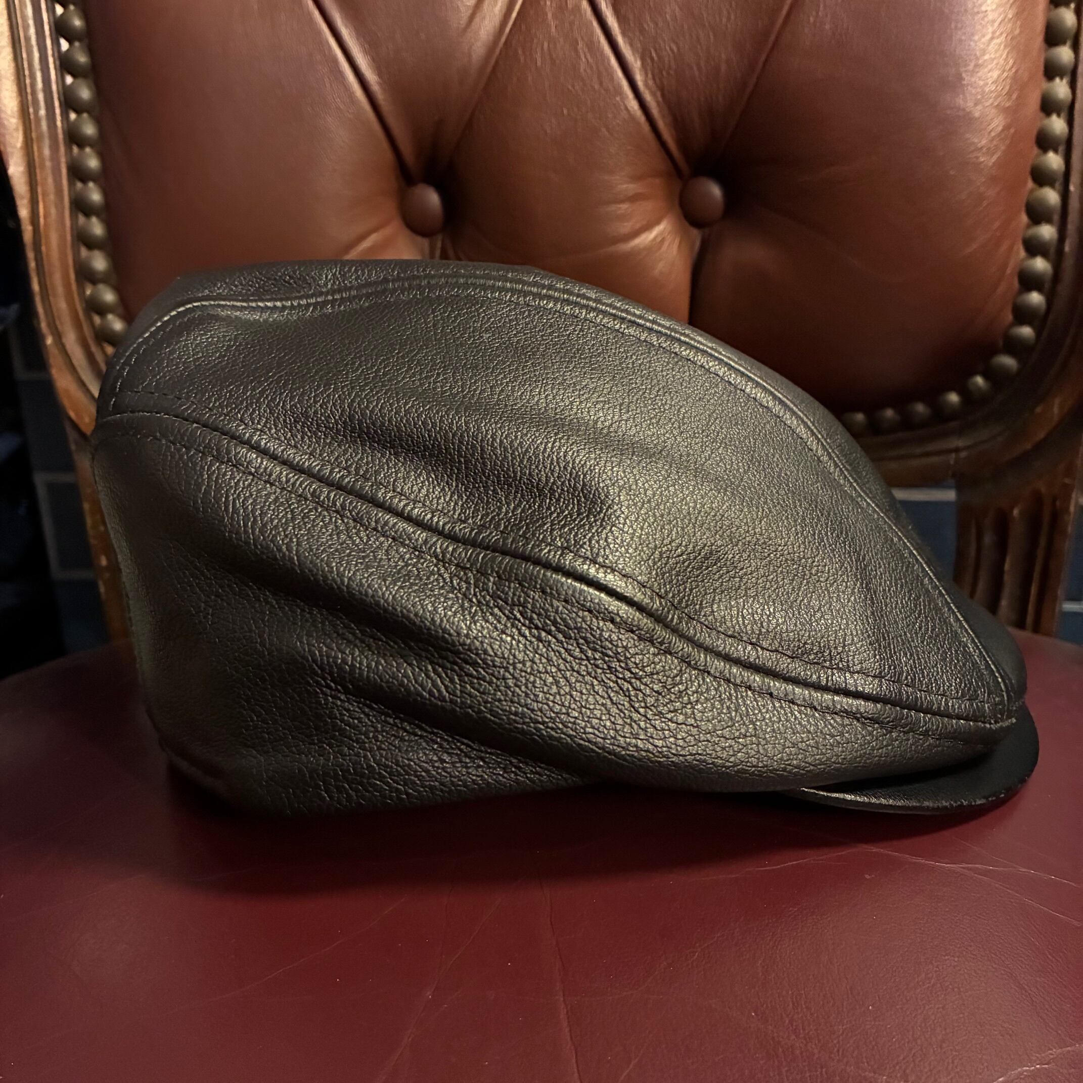 MADE IN USA製 KBETHOS Genuine leather 本革 レザーハンチングキャップ ブラック S/Mサイズ