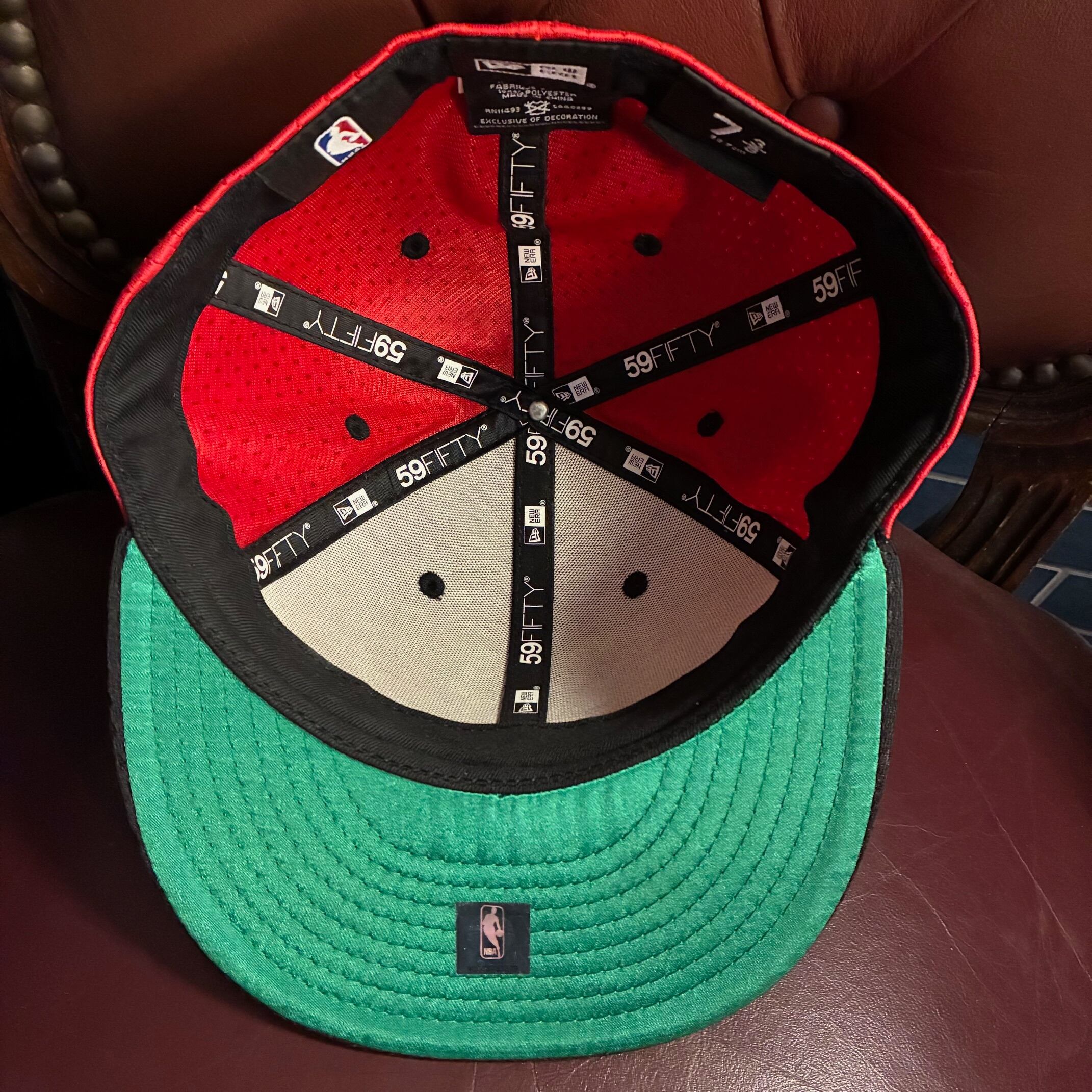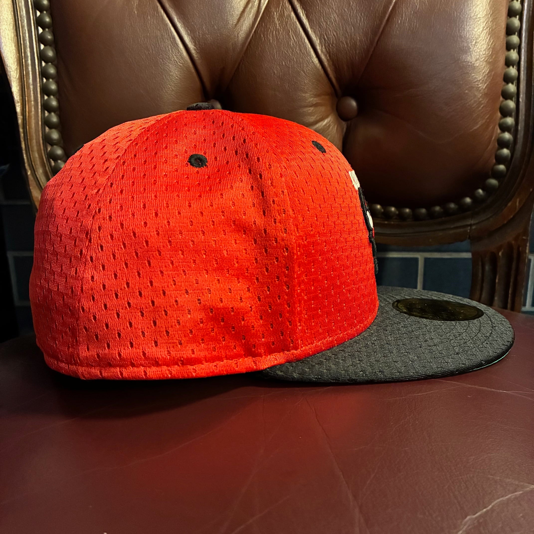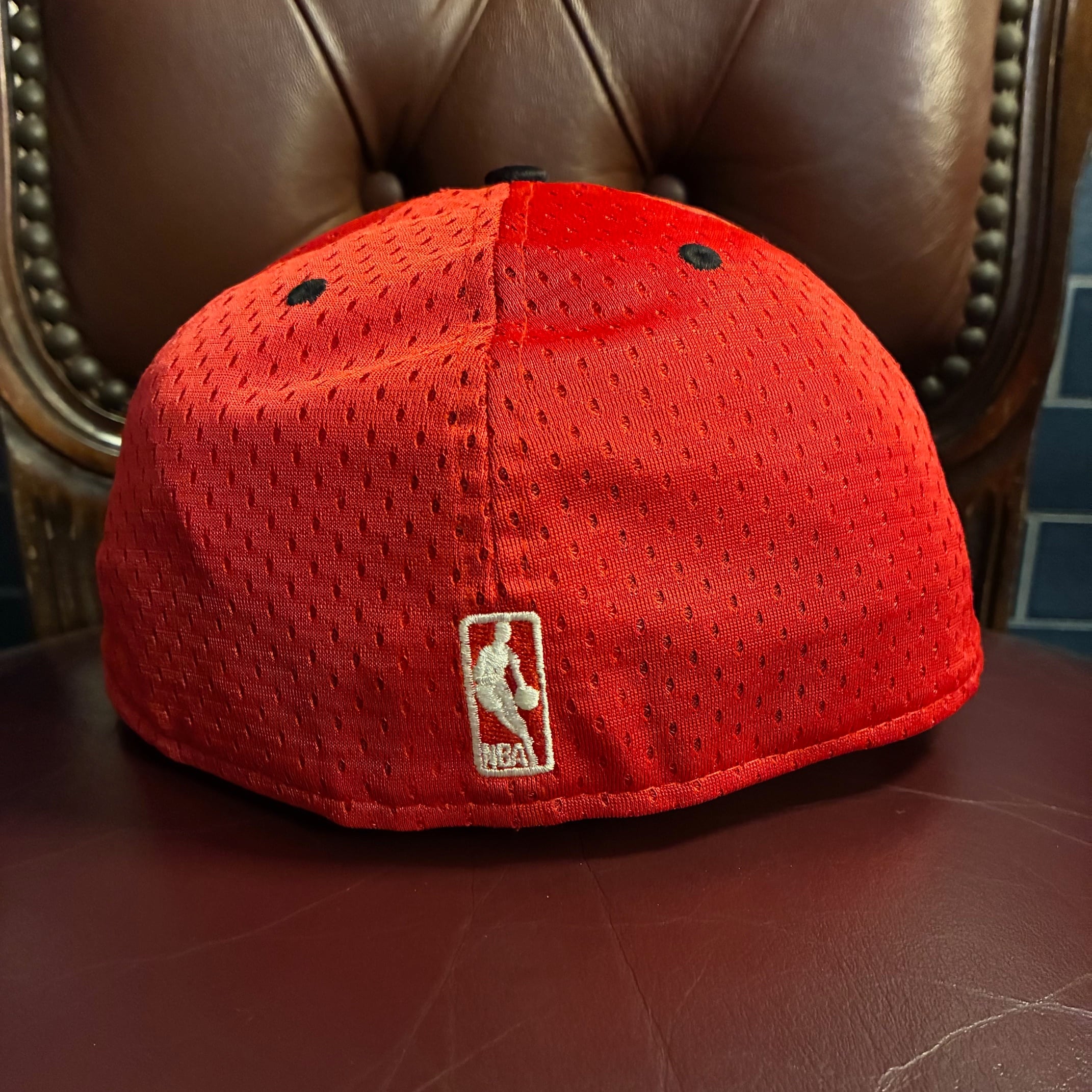ゲームジャージで使われるメッシュ素材を使っており、ブルズカラーのレッドとブラックのカラーリングにつば裏がグリーンのサテン仕様になったなかなか市場では見かけないオシャレなおすすめの一品です。