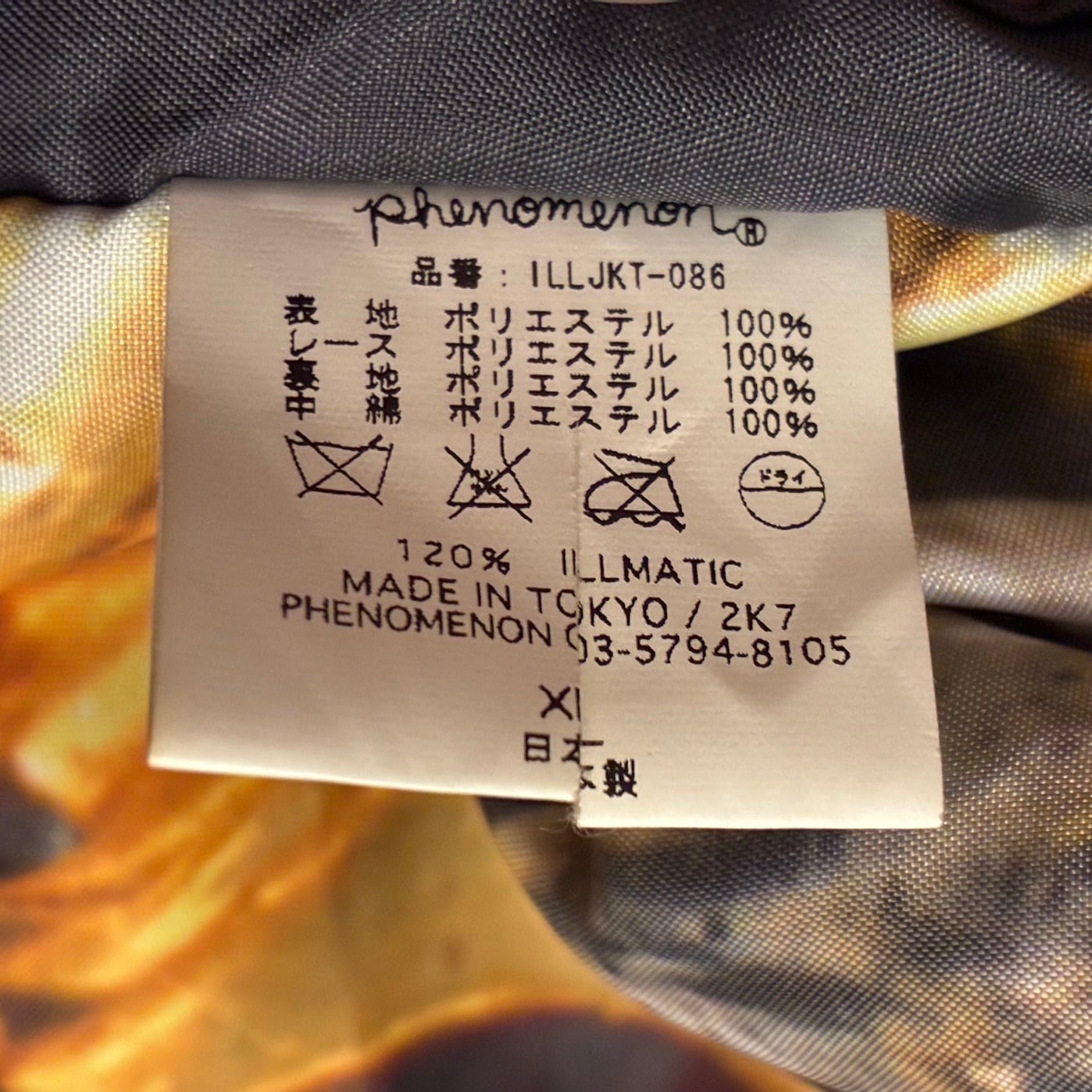 フェノメノンはシーズン毎に異なるタグや裏地を使うなど細部までこだわった商品が多く、こちらの裏地はデザイナーのオオスミ氏がBIG-O&DJ WATARAI名義で発売した名作アルバム「STRAIGHT TO NEXT DOOR」のジャケットでも使われているゴールドチェーンを使ったオリジナルデザインを採用しており、中綿入りなので防寒性もございます。