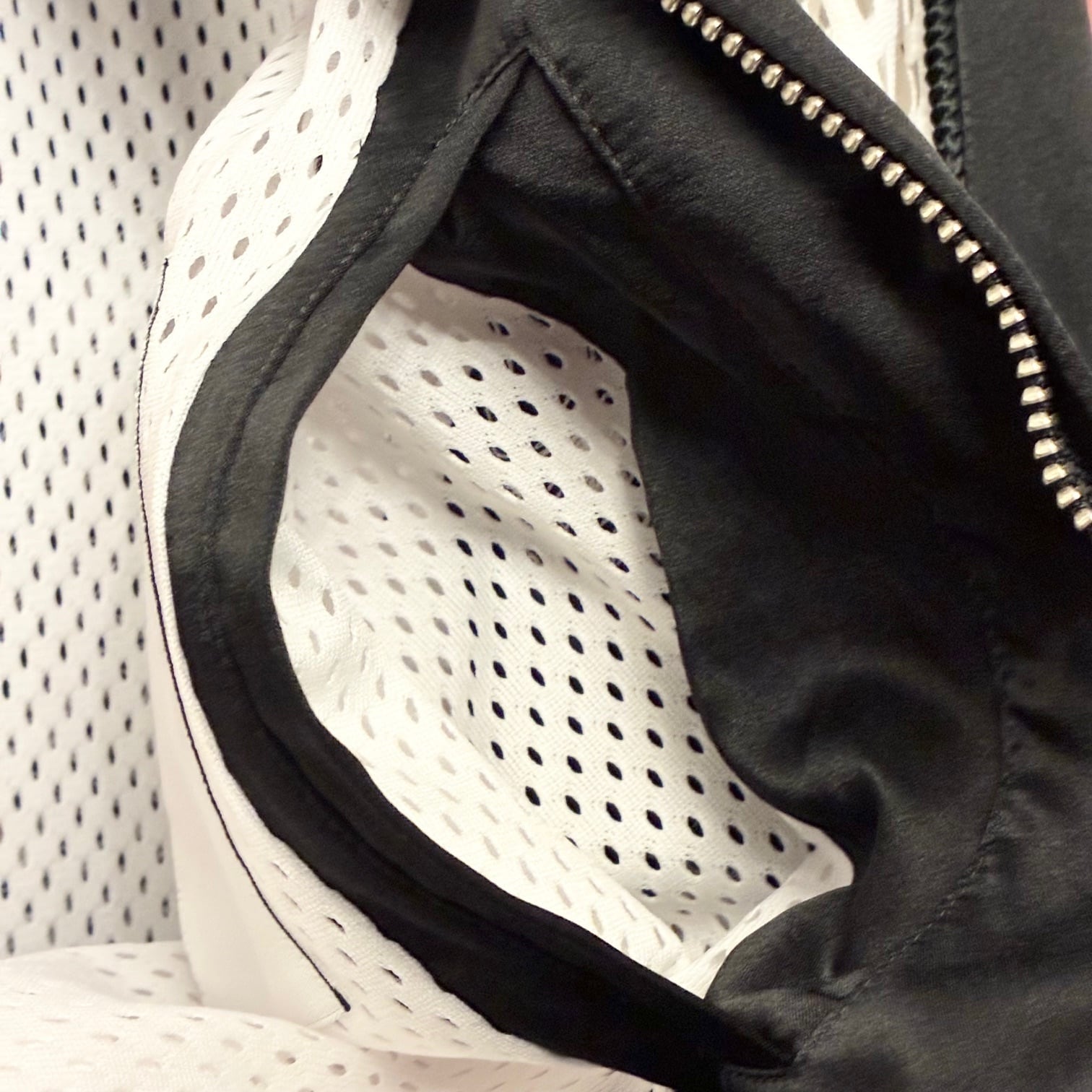 裏地はスポーツウェアで使われるメッシュ地にこのシーズンで使われたネイティブ柄のようなデザインが入っており、ブランドタグはコレクション初期の黒タグから変更された白タグを仕様しております。