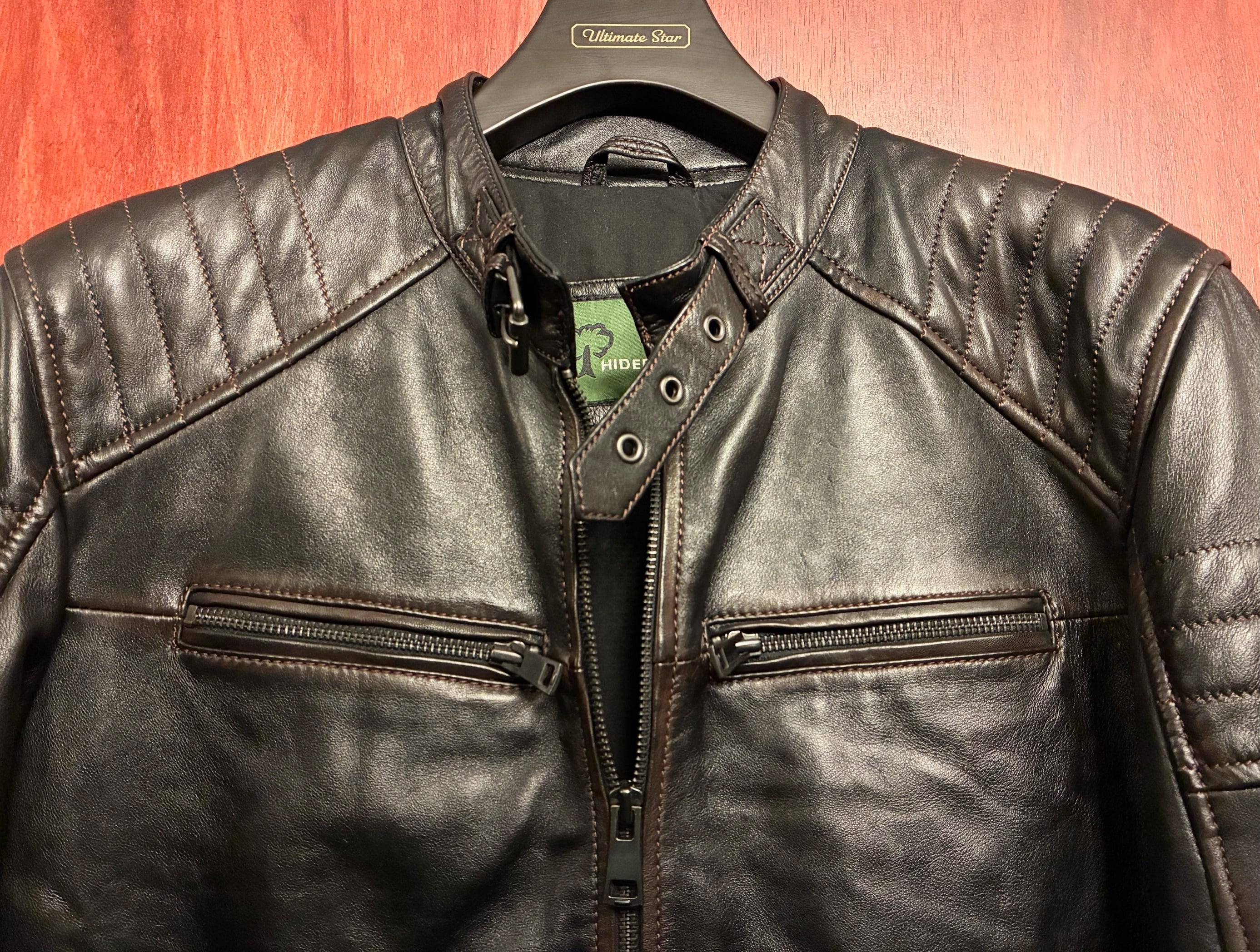 ▲訳あり商品▲ HIDEPARK .co.uk 本革 レザーシングルライダースジャケット ダークブラウン Sサイズ