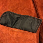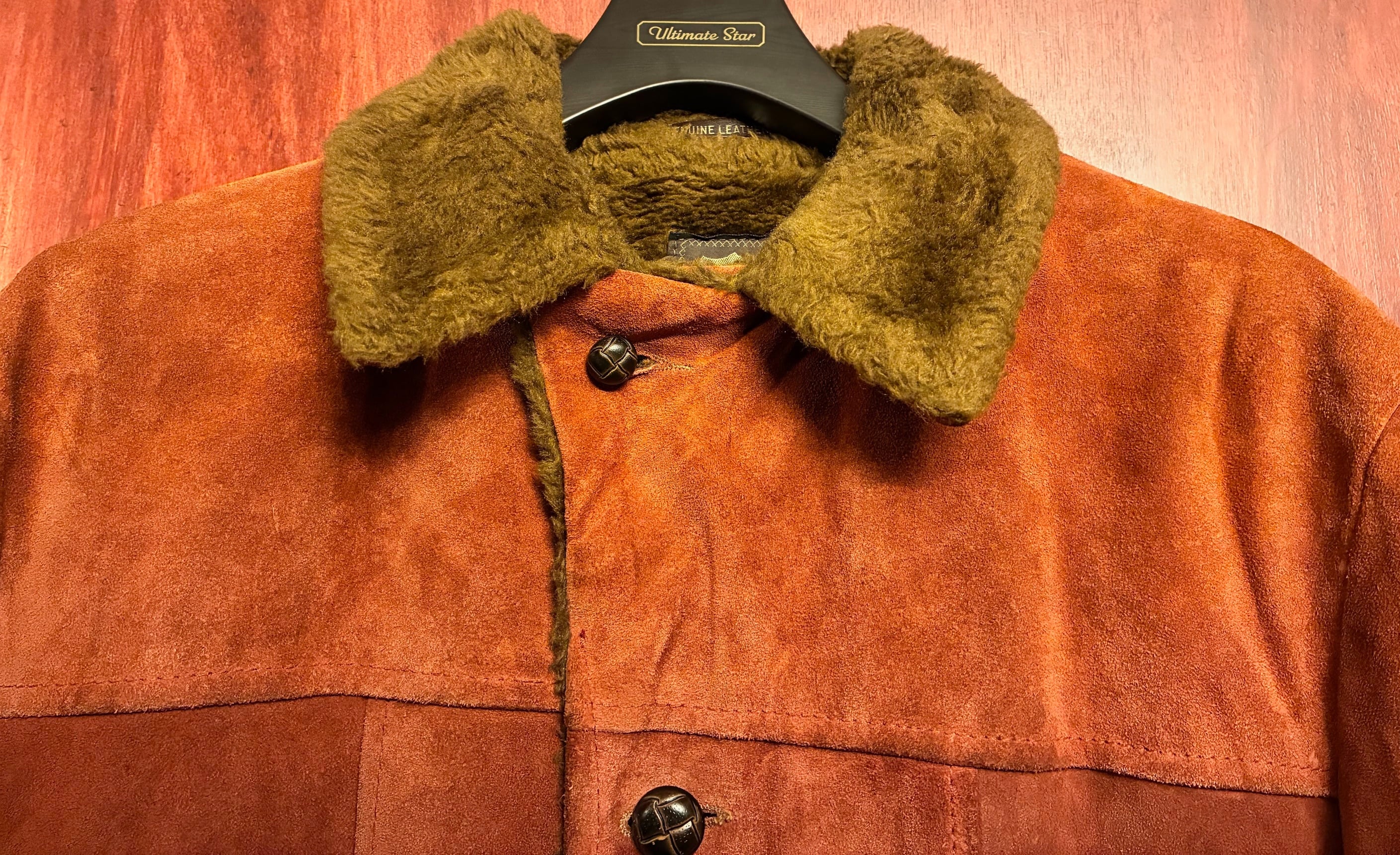 オレンジっぽいスウェードレザーを使っており、襟と裏地がムートン仕様になっているので防寒性も高く、大人の装いにピッタリのおすすめの一品です。