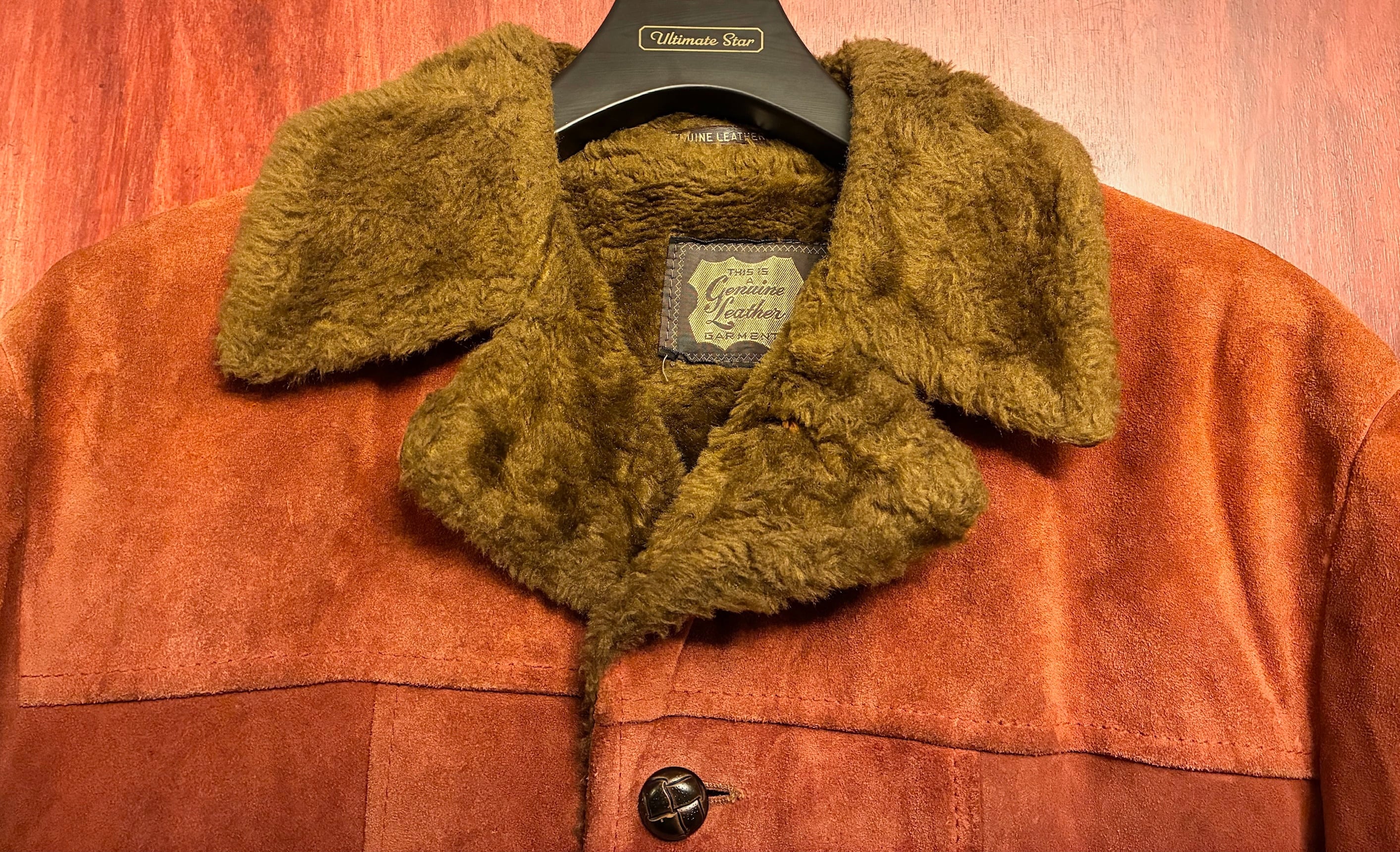 THIS IS A GENUINE LEATHER 本革 スウェードレザー ムートンコート オレンジブラウン 42サイズ