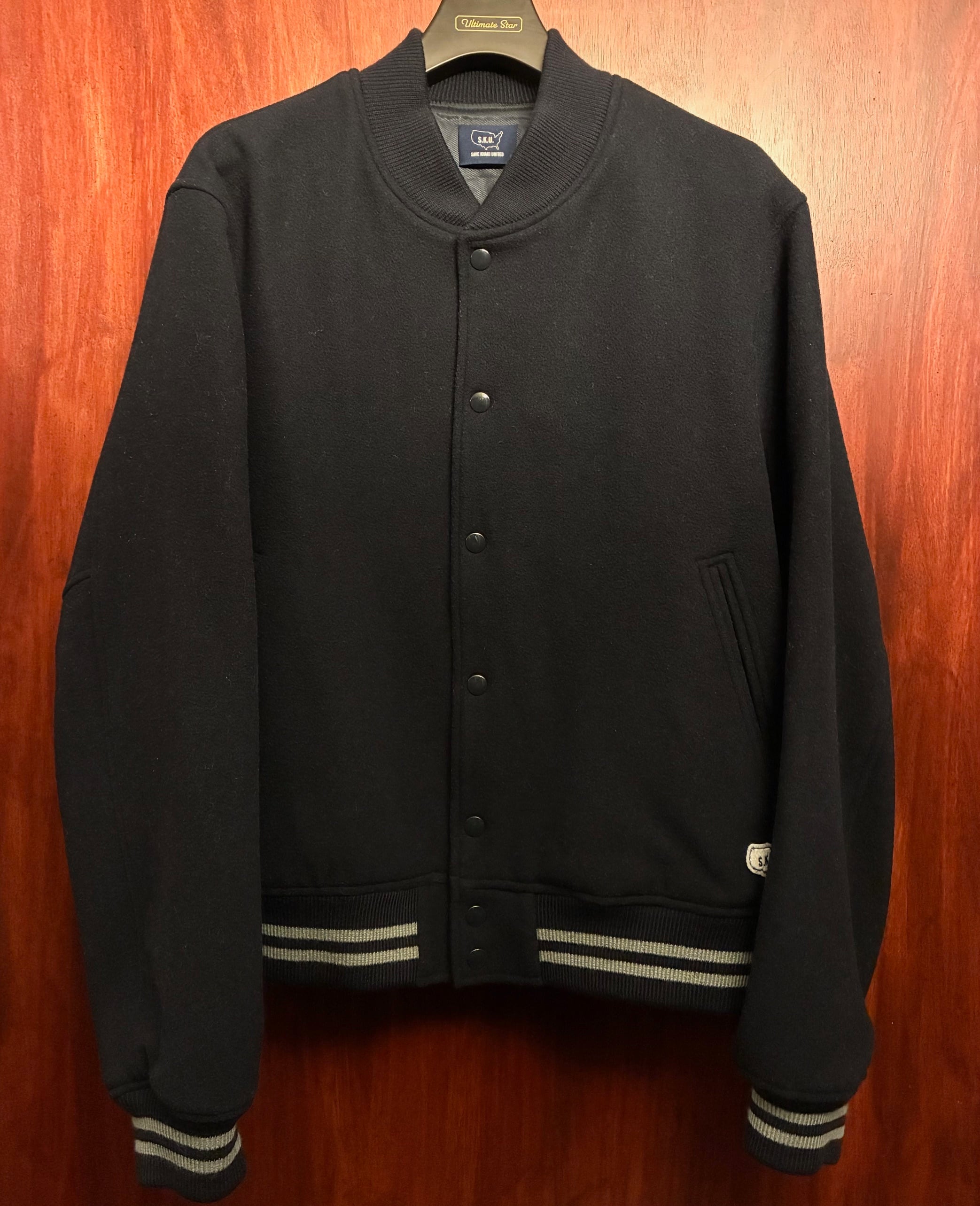 【JOURNAL STANDARD 取り扱い】 S.K.U. SAVE KHAKI UNITED ウールスタジアムジャケット ネイビー Lサイズ