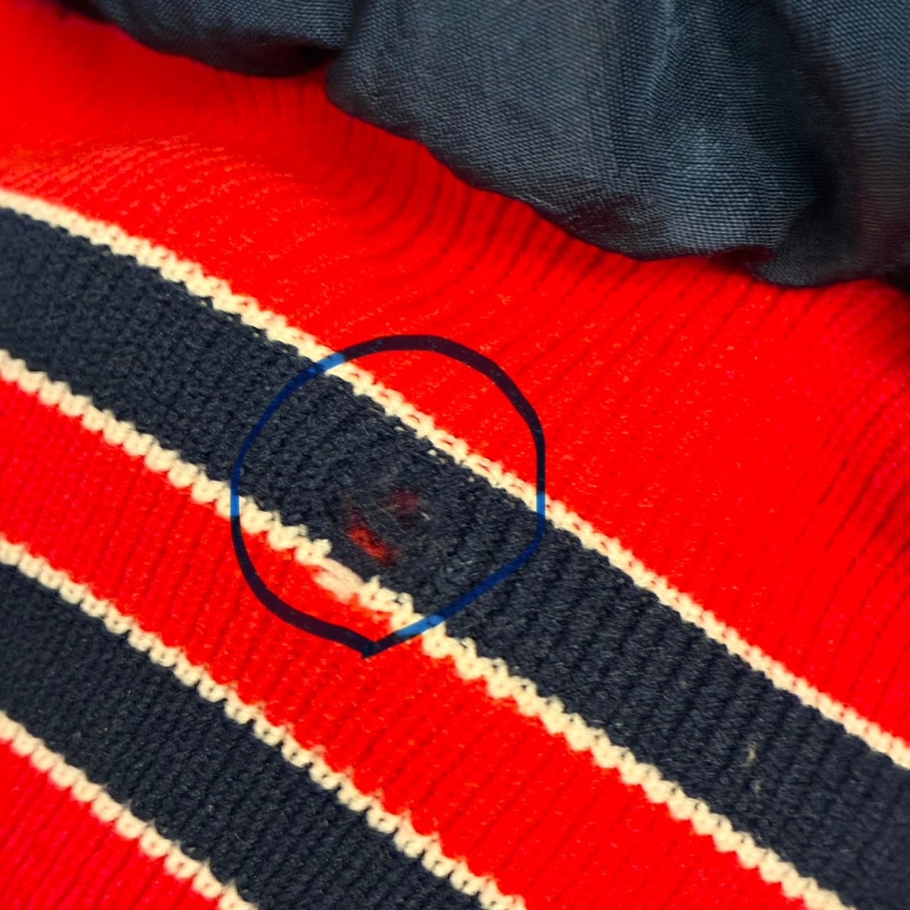 あまり目立ちませんがリブに穴がある為、お求めやすい価格での販売となりますので古着の特性をご理解いただいた上でご購入いただくようお願い致します。