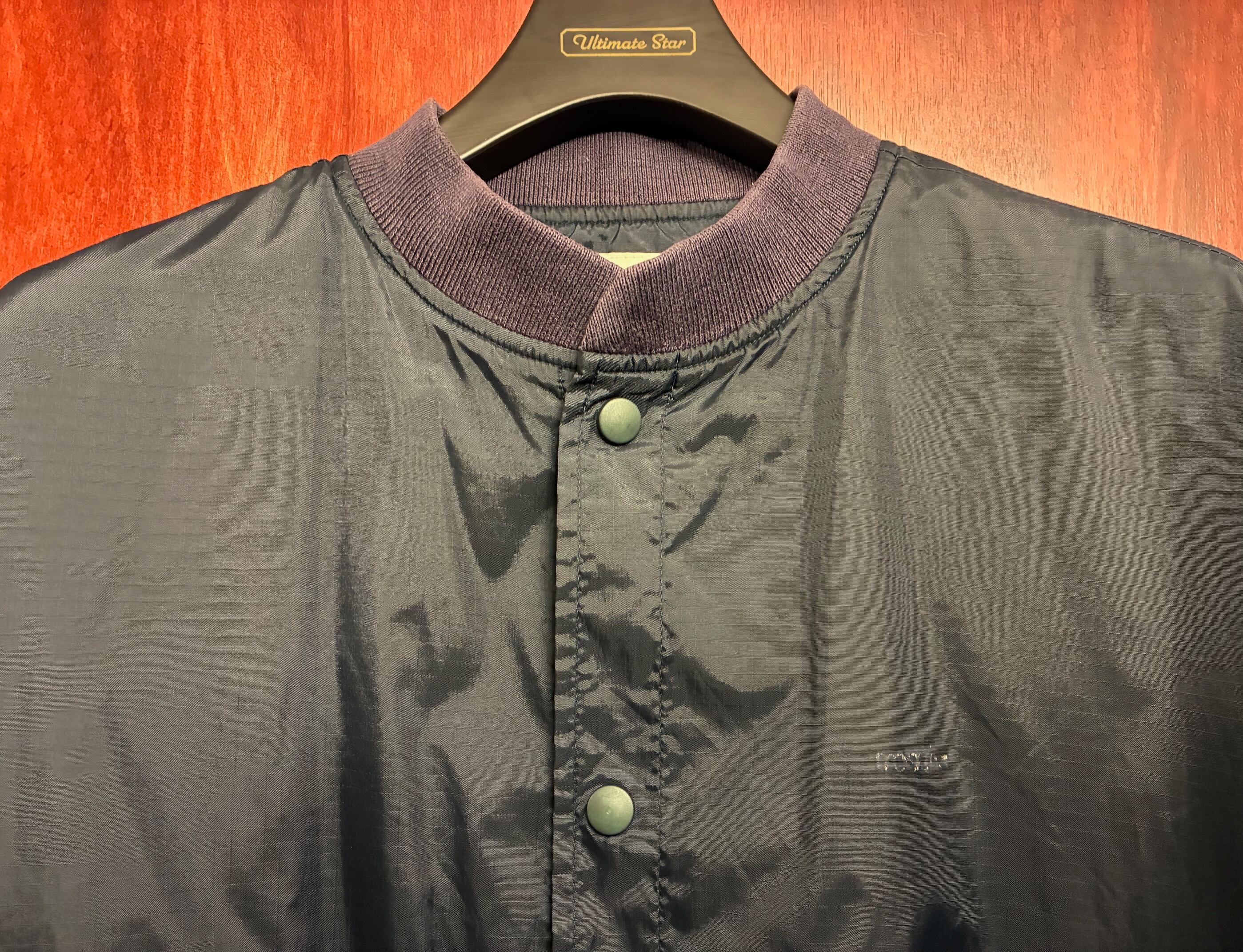 スタジャンのようなシンプルなデザインで薄手なので使い勝手の良いおすすめの一品です。