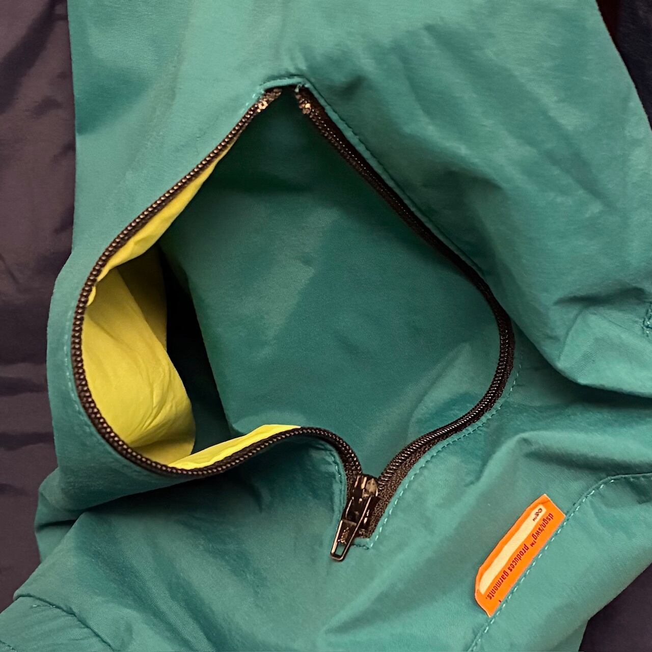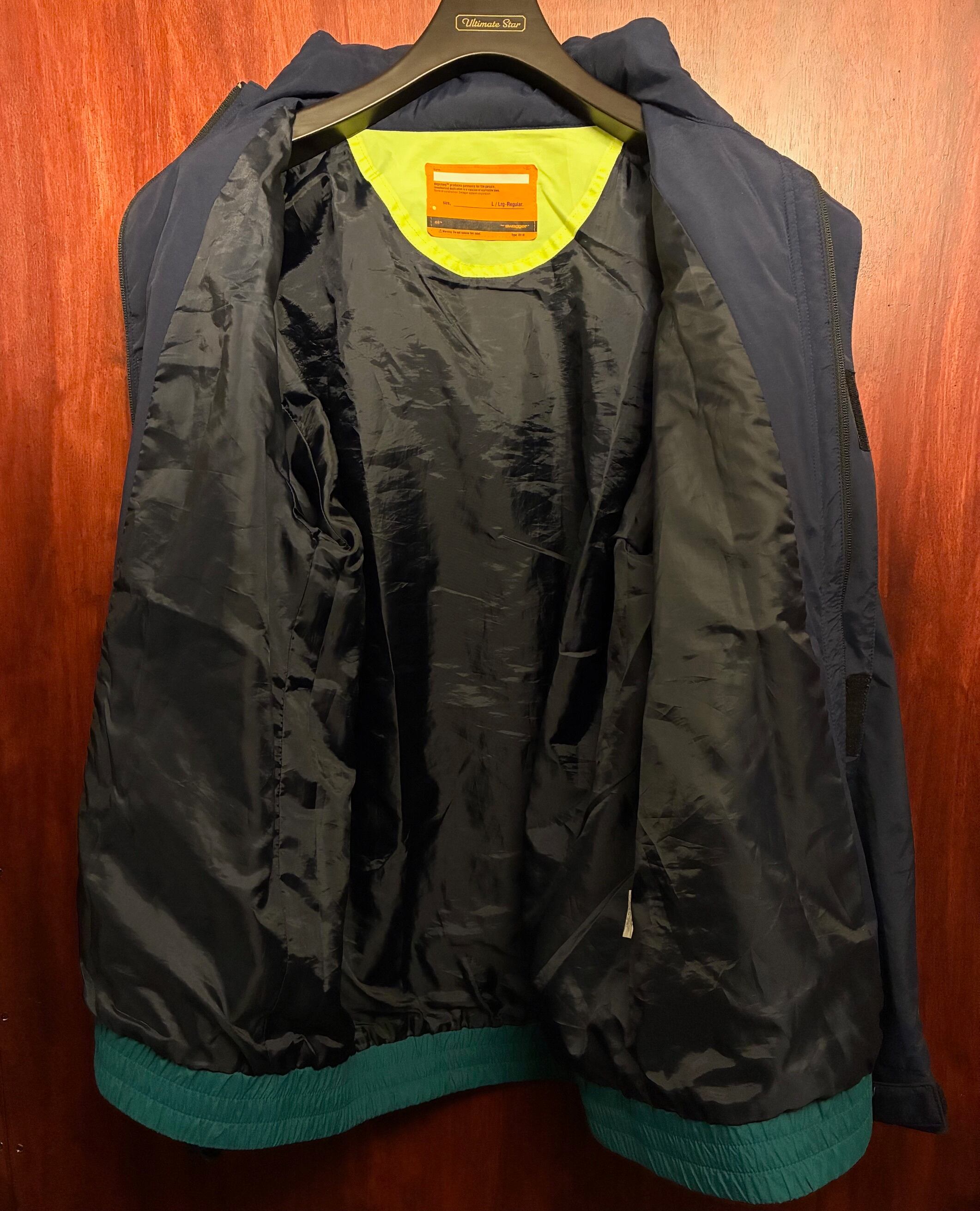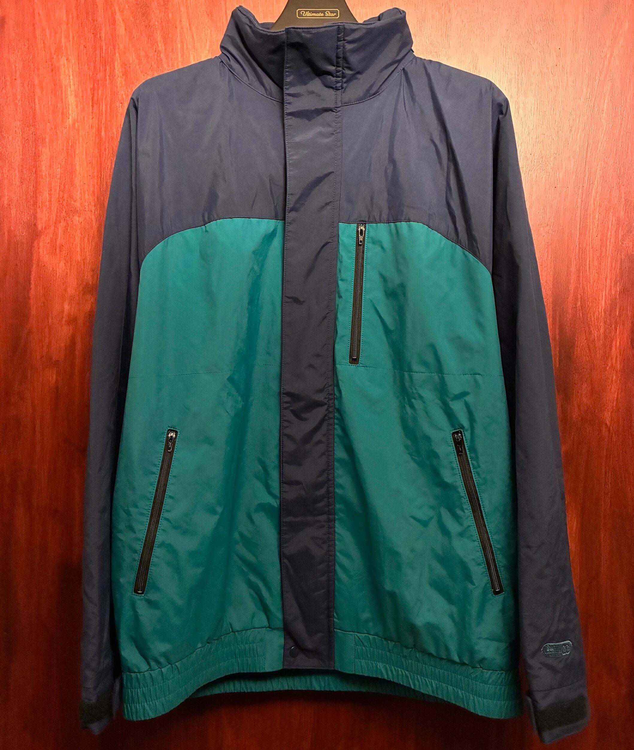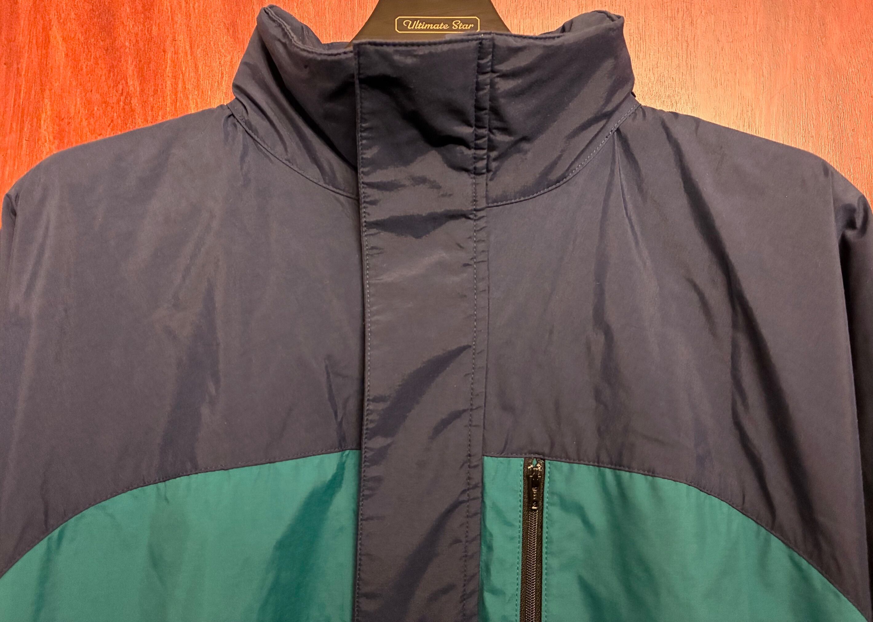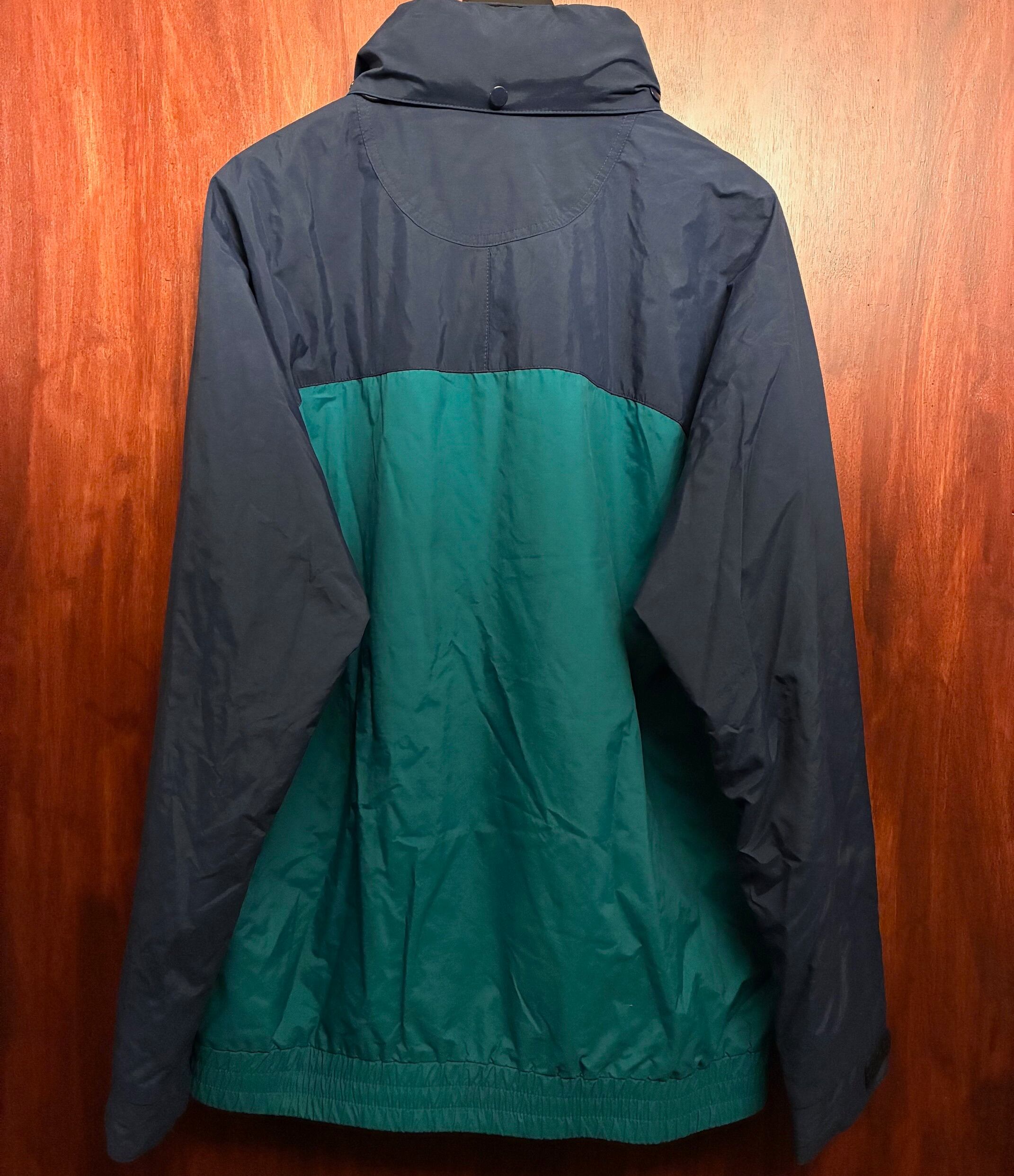 レア MADE IN JAPAN製 SWAGGER ナイロンマウンテンジャケット 隠しフード付き グリーン×ネイビー Lサイズ