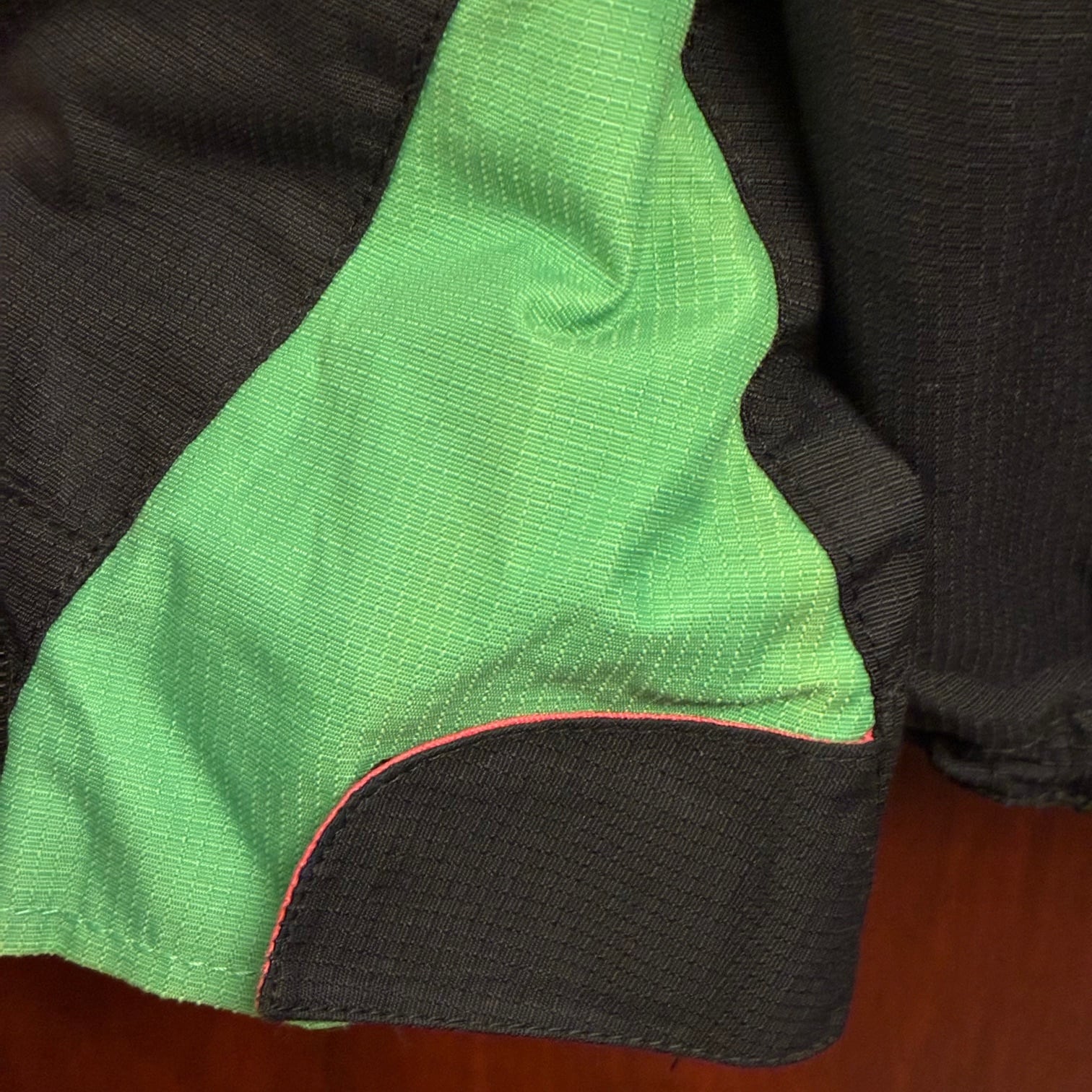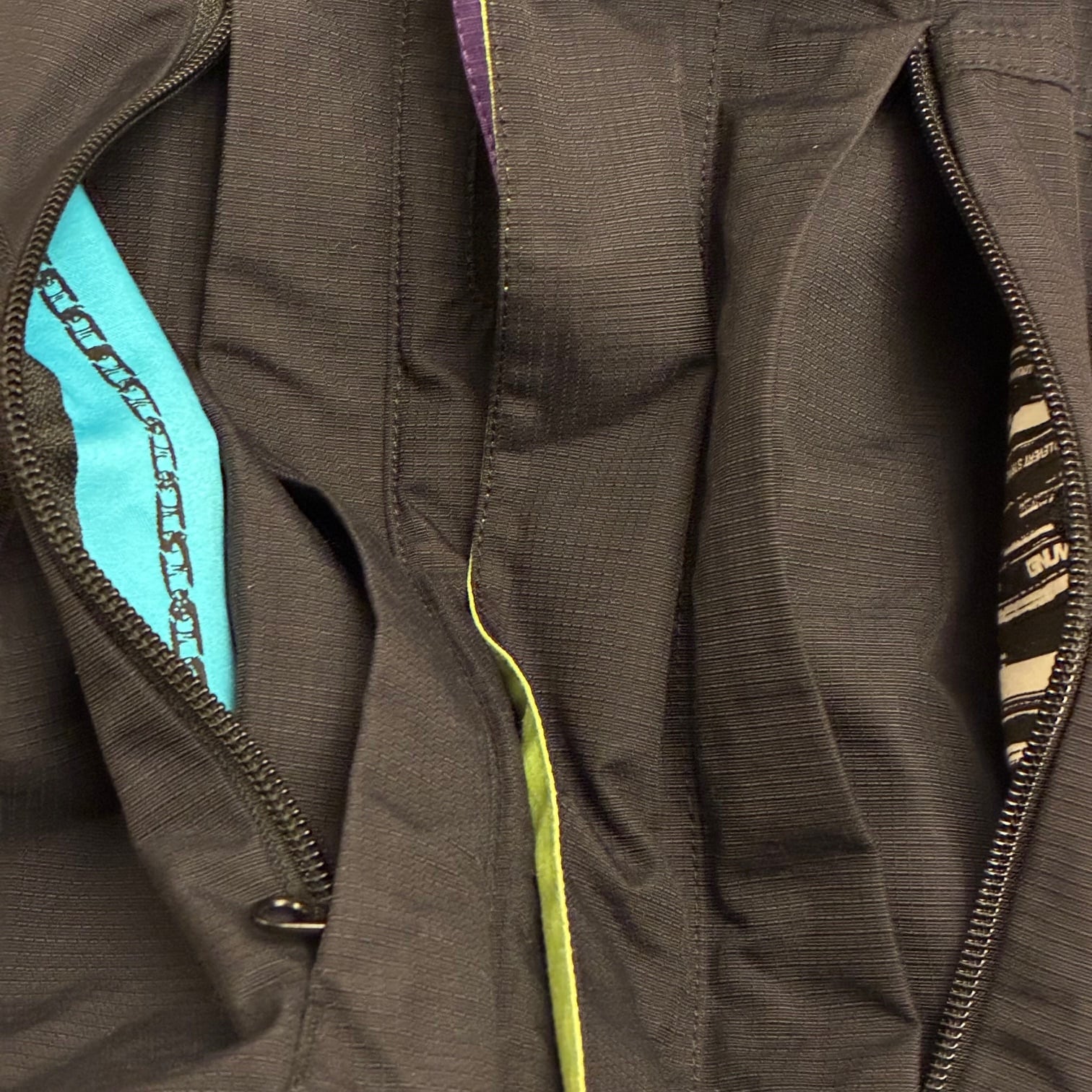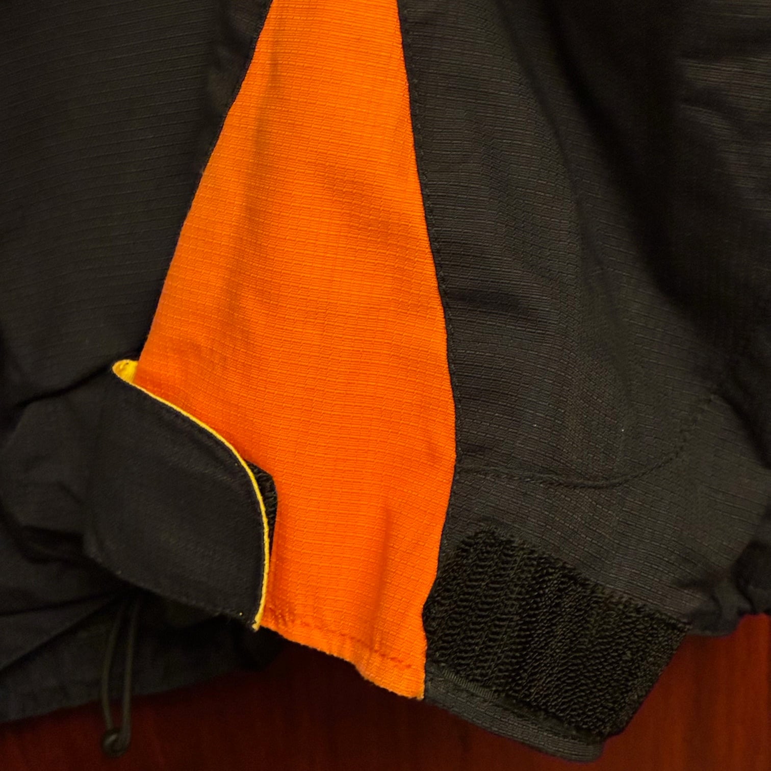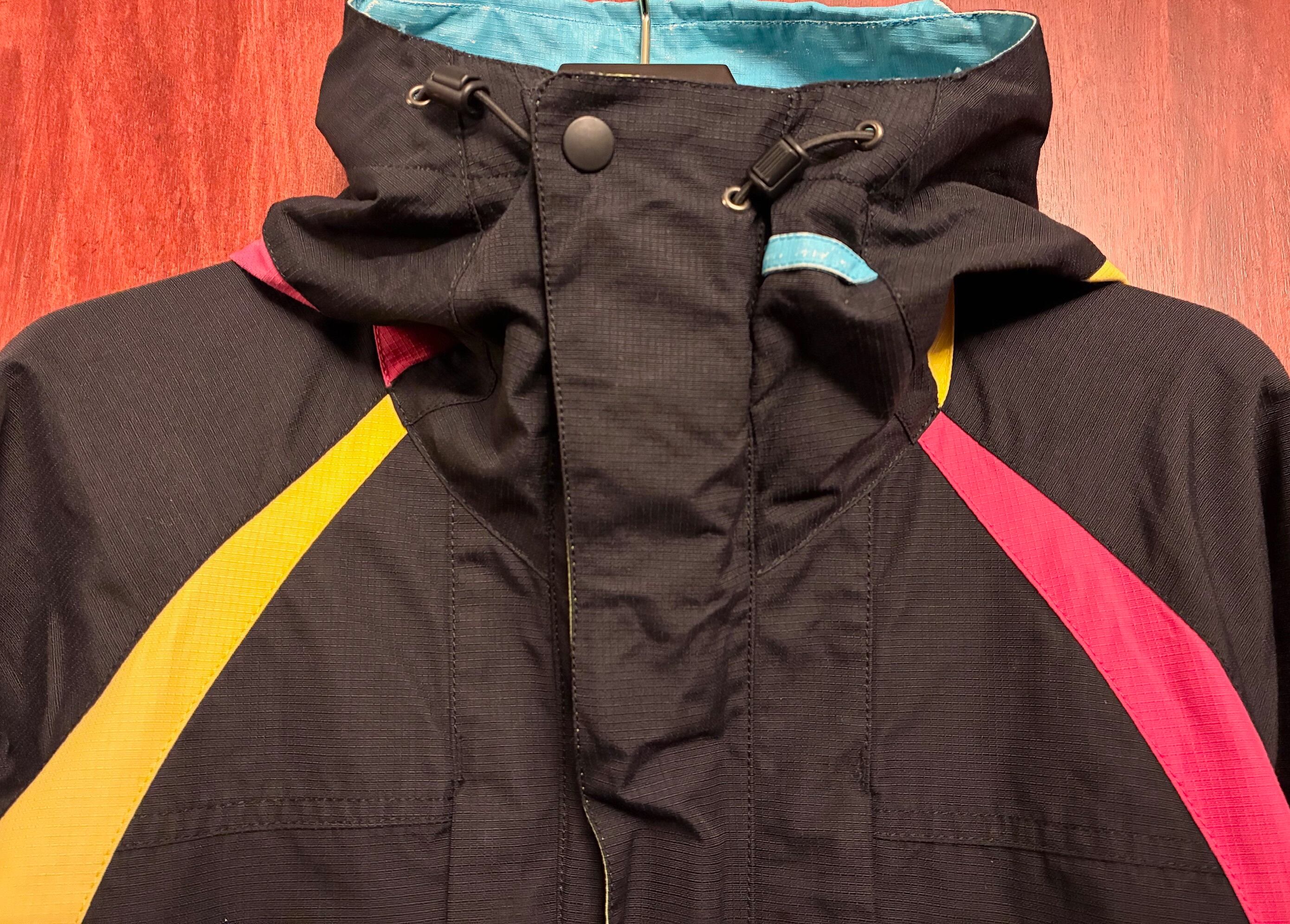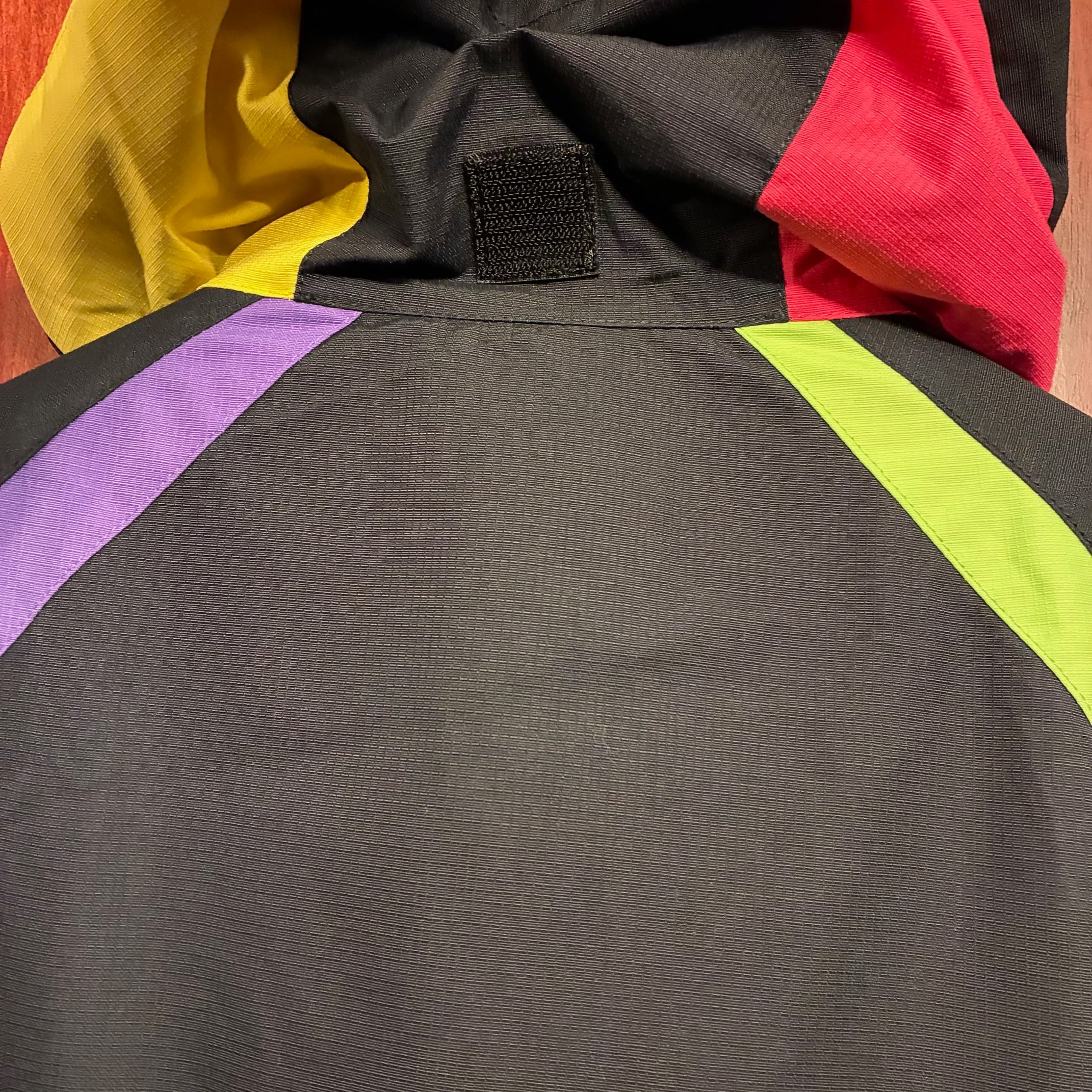 ネオンカラーの異なる色合いの生地を切り返しに使っており、ポケットも多いので実用性がとても高く、ナイロン素材なのでちょっとした小雨や防風性もある機能性ジャケットです。