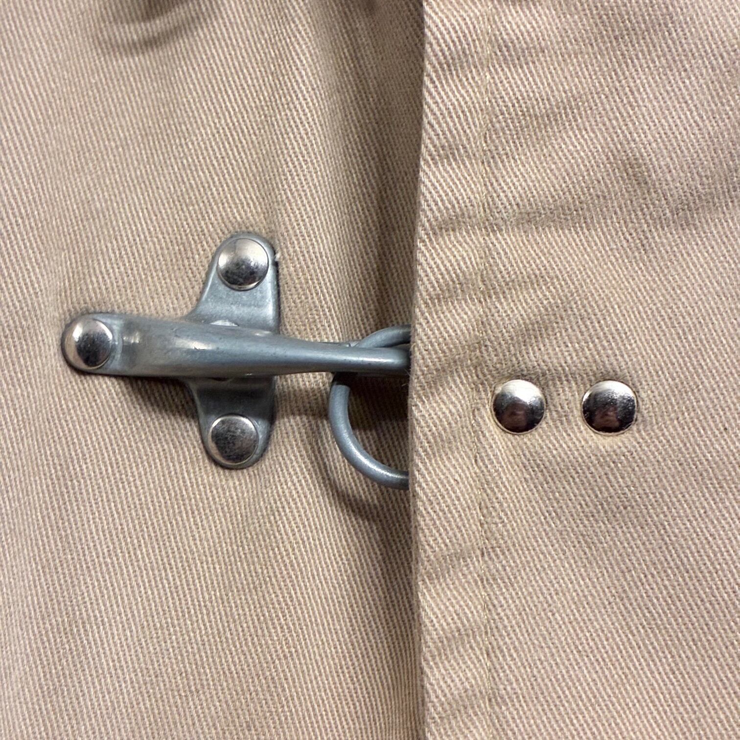 比翼のフルジップ仕様ですが、襟付近に金属金具が付いており、ダッフルコートのようなデザインアクセントになったおすすめの一品です。