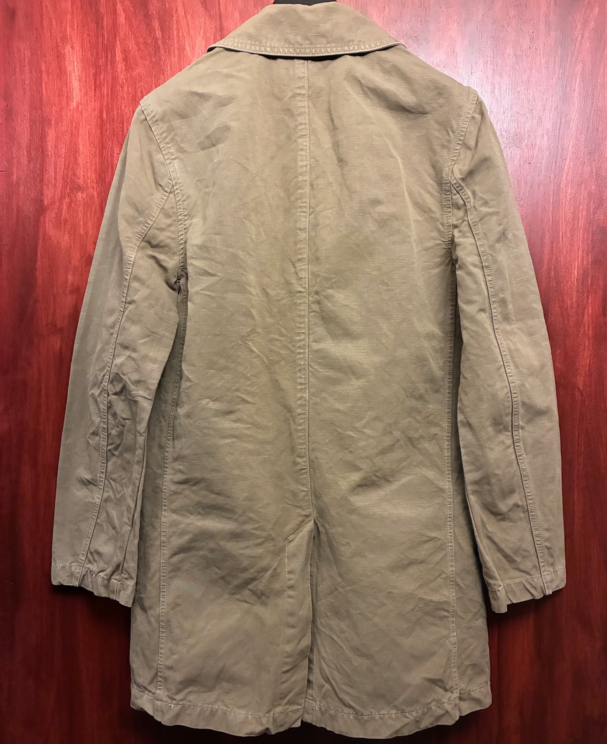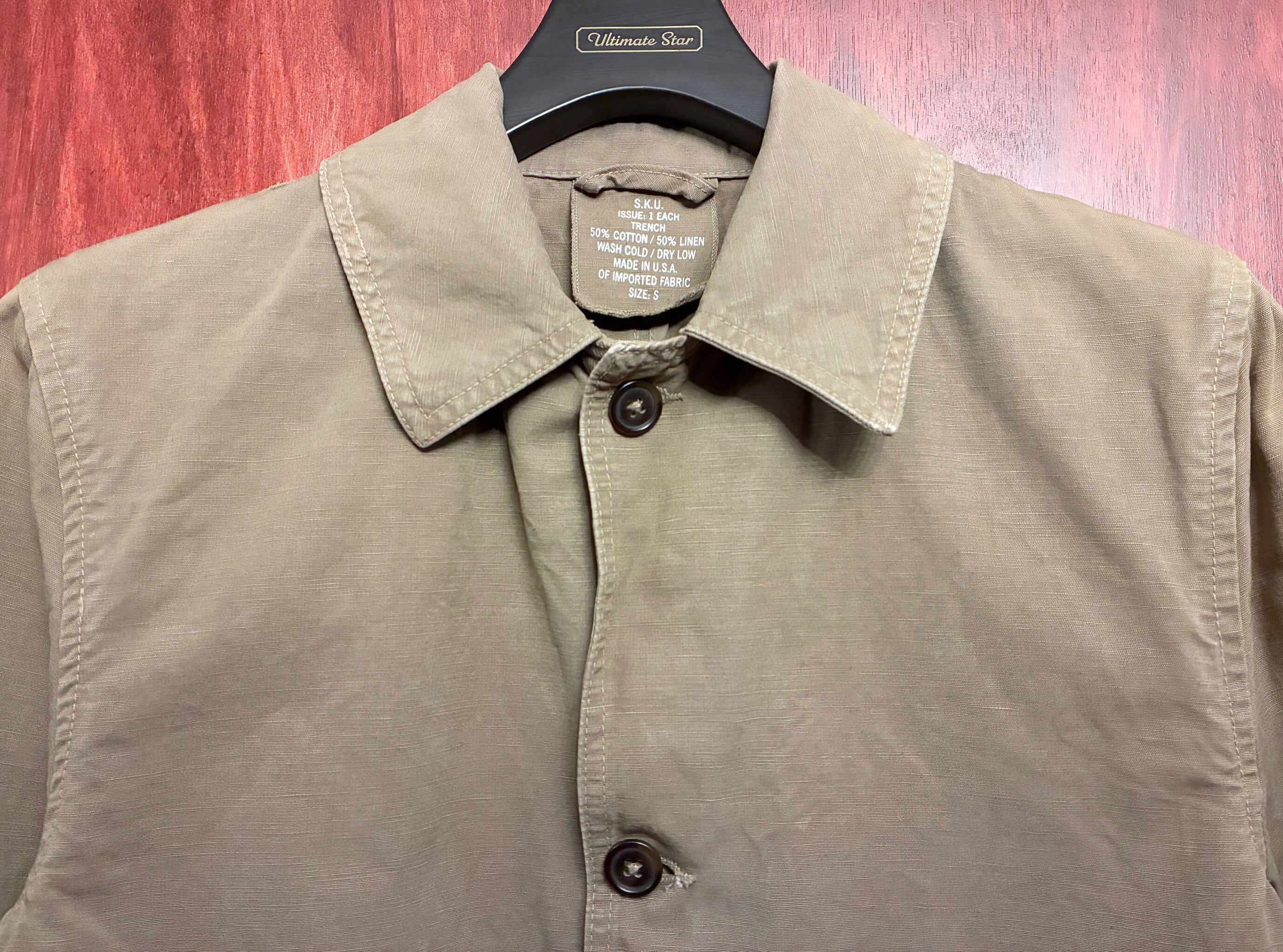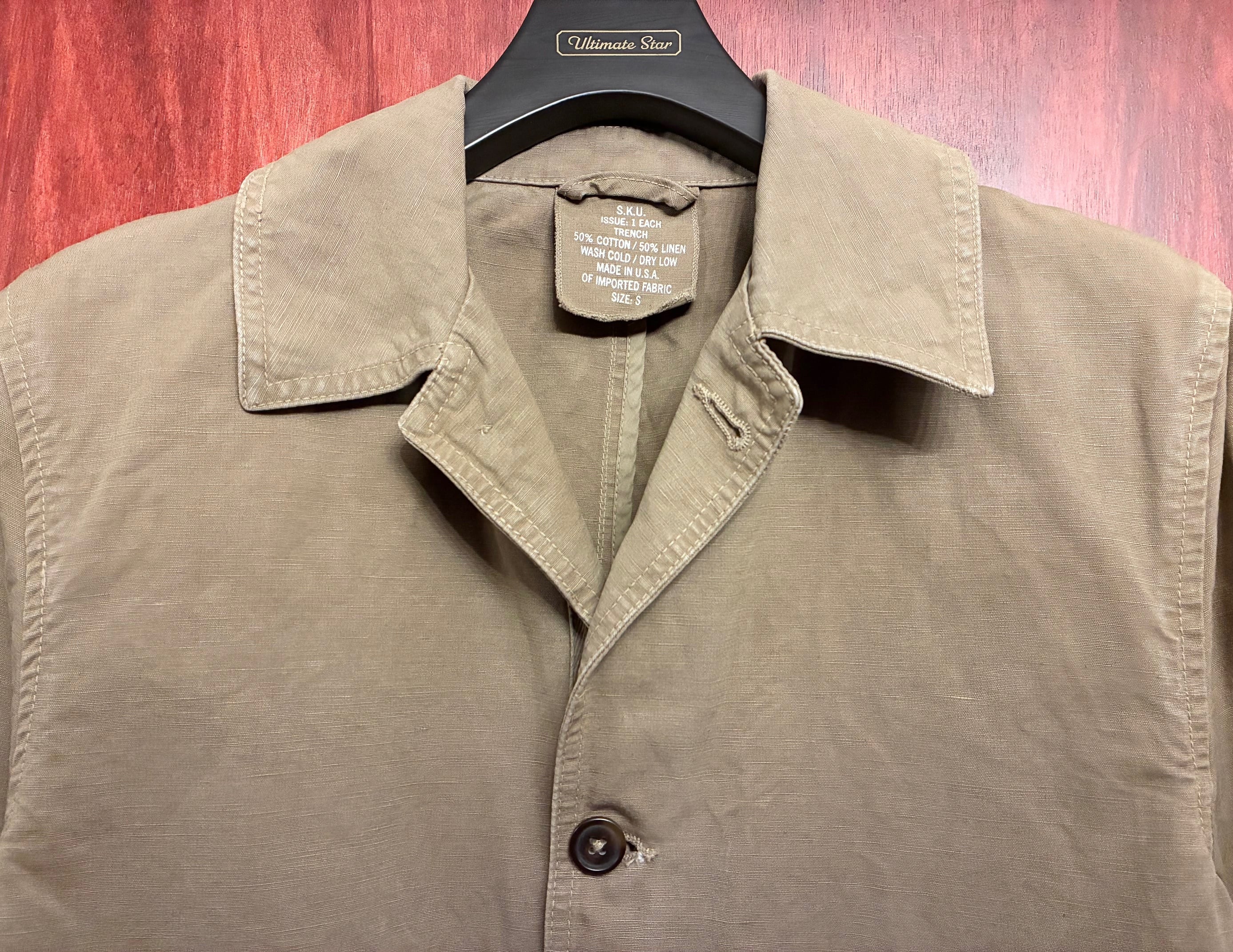【JOURNAL STANDARD 取り扱い】 MADE IN USA製 S.K.U. SAVE KHAKI UNITED コットンリネンステンカラーコート カーキ Sサイズ