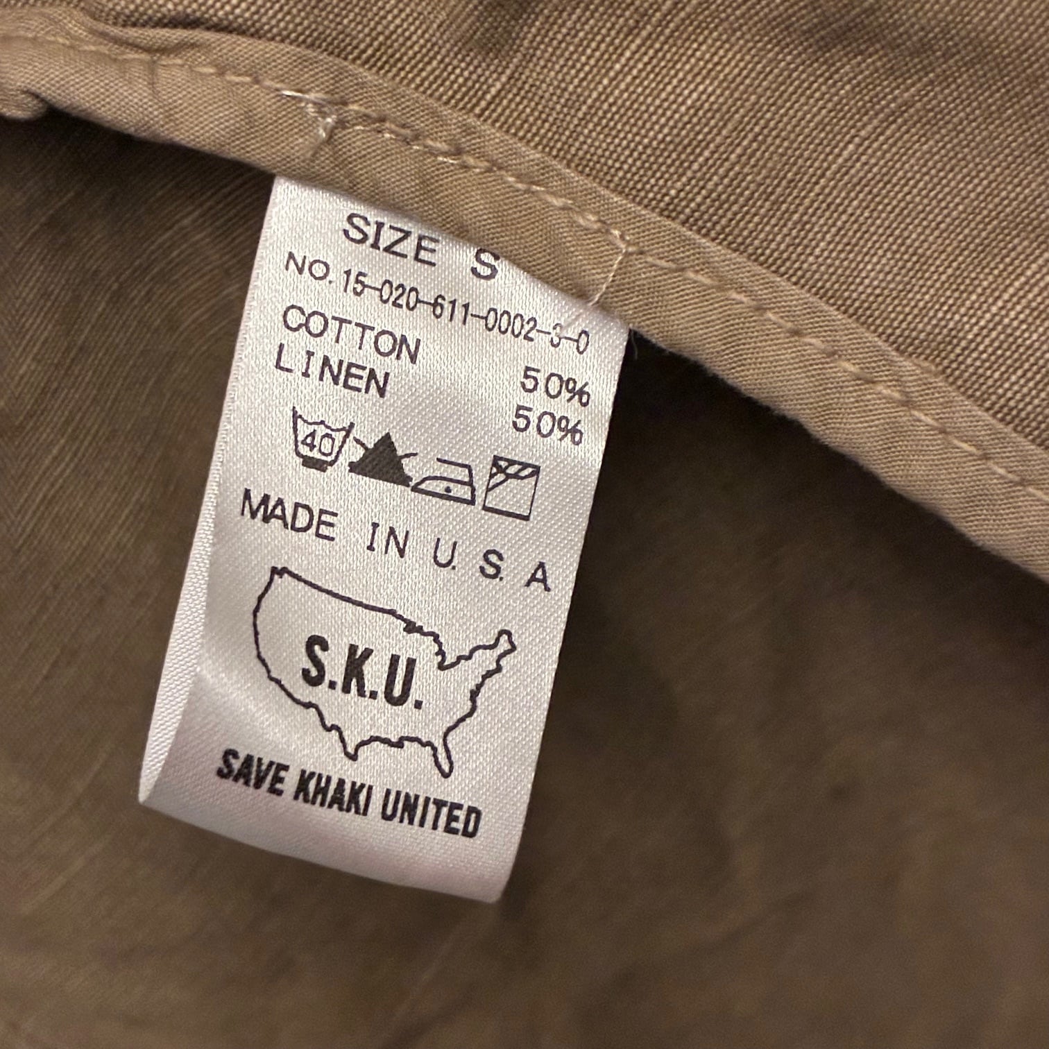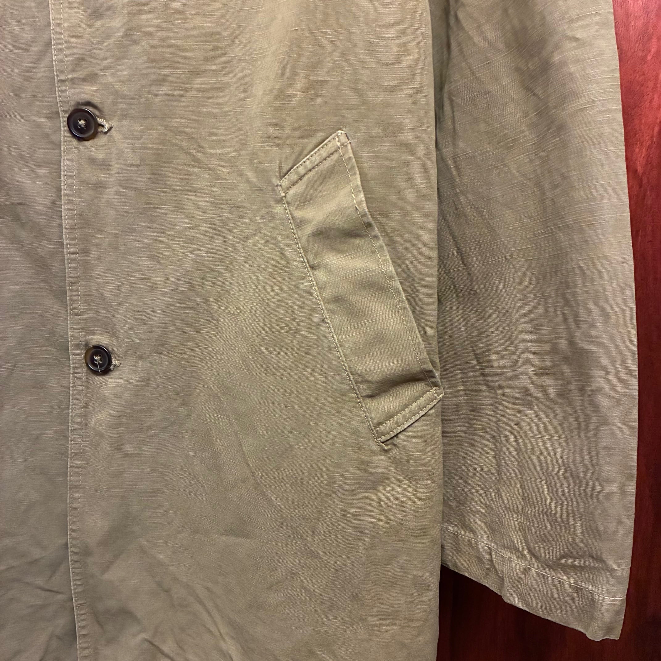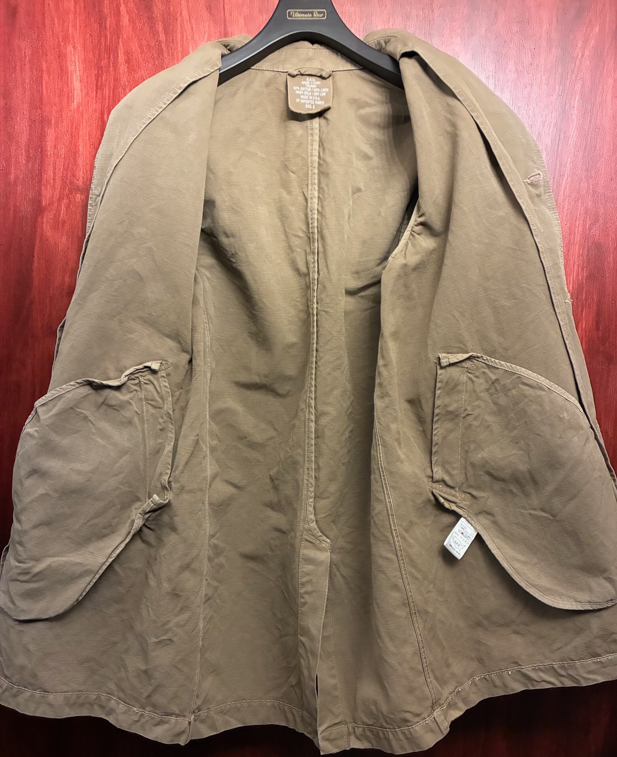 【JOURNAL STANDARD 取り扱い】 MADE IN USA製 S.K.U. SAVE KHAKI UNITED コットンリネンステンカラーコート カーキ Sサイズ
