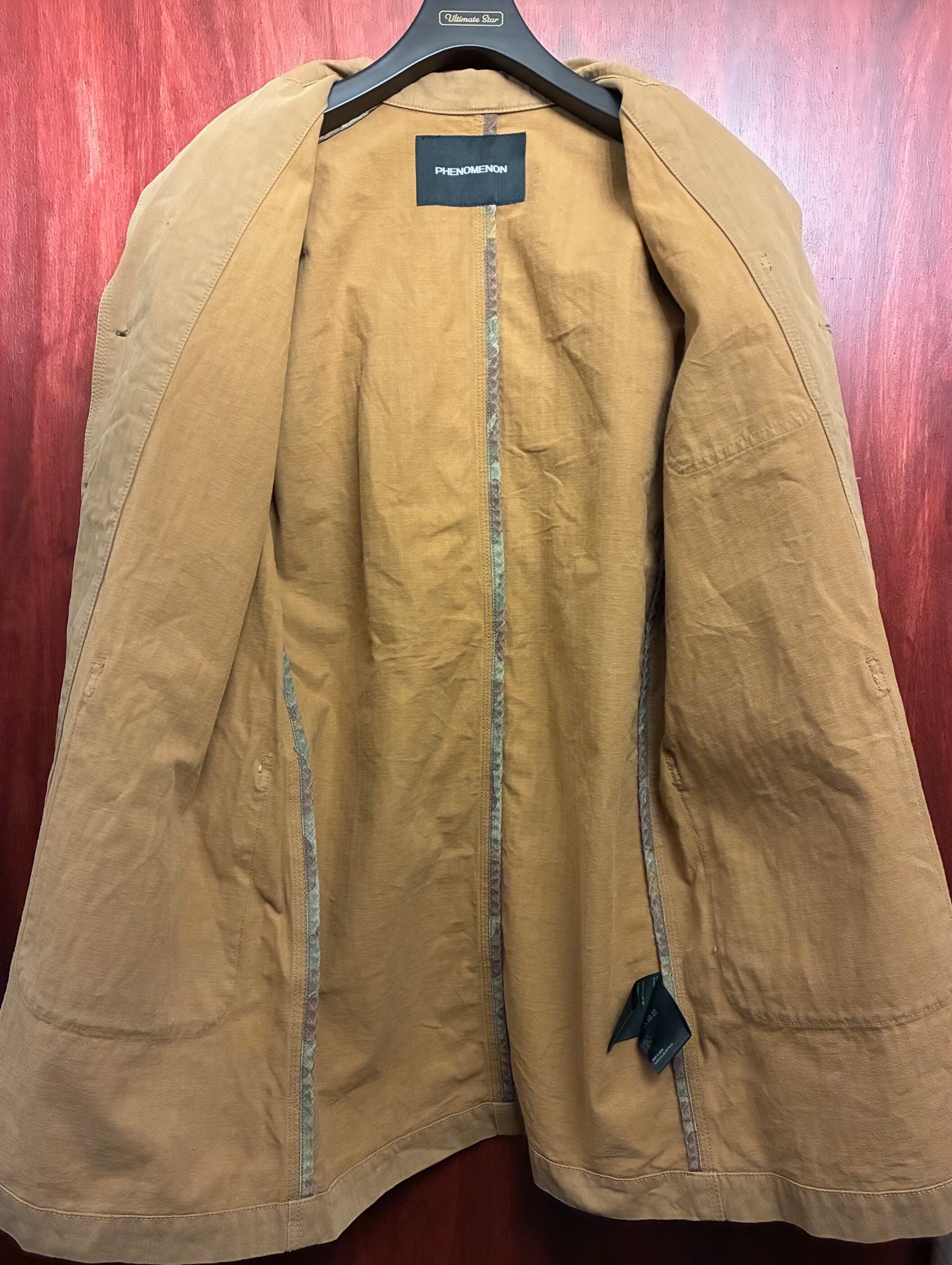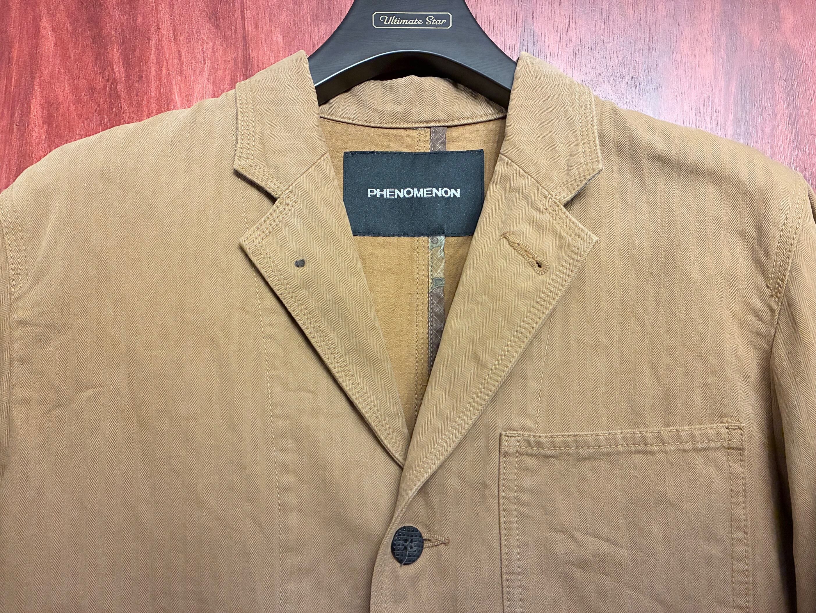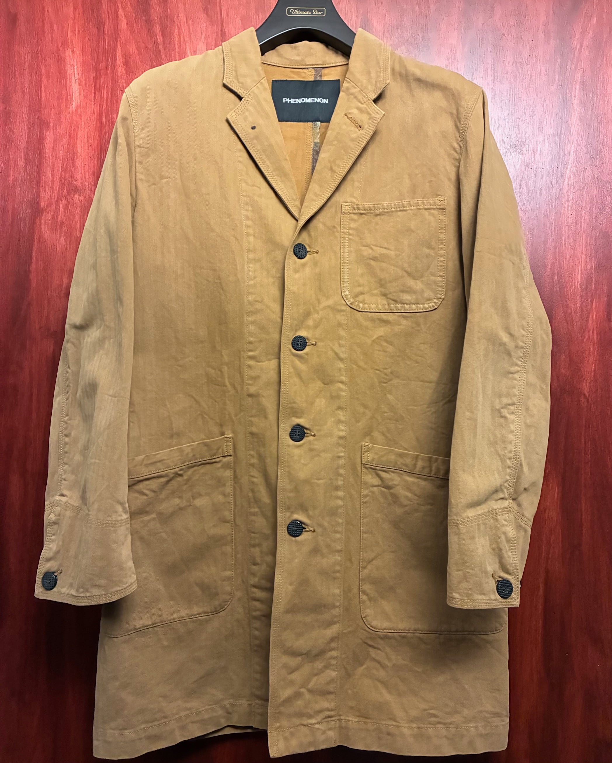 MADE IN JAPAN製 PHENOMENON 2012年AWモデル シャドーヘリンボーン柄 コットンチェスターコート キャメル 38/Mサイズ
