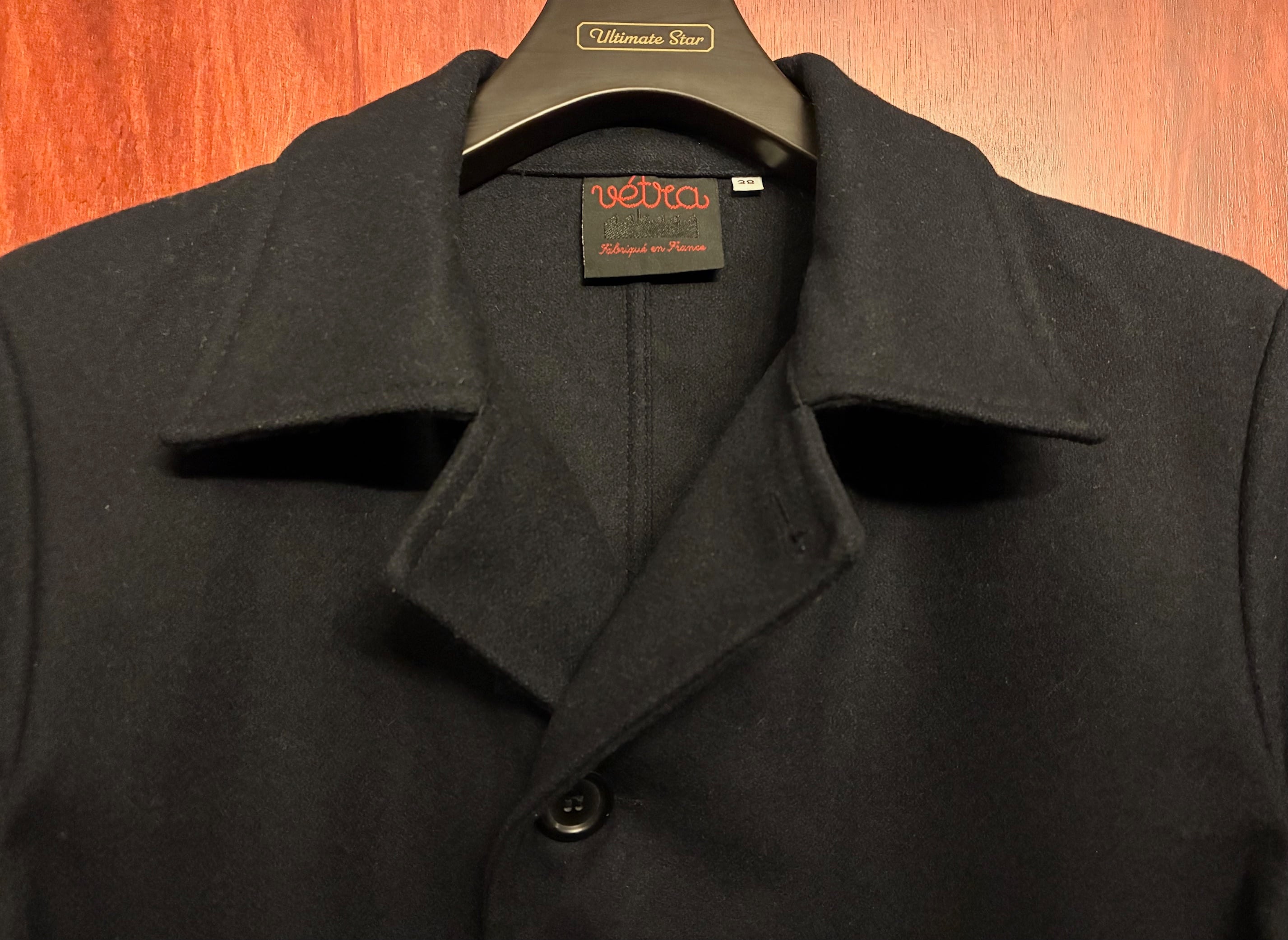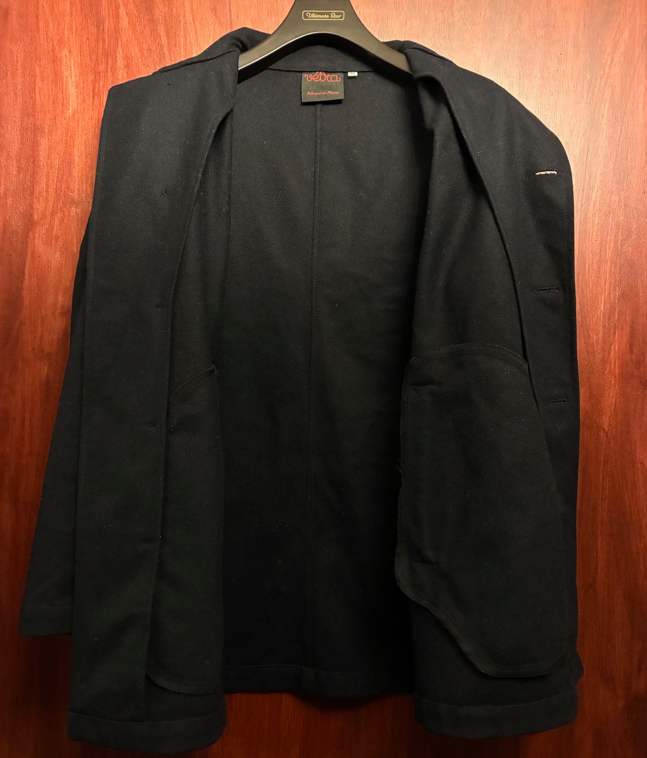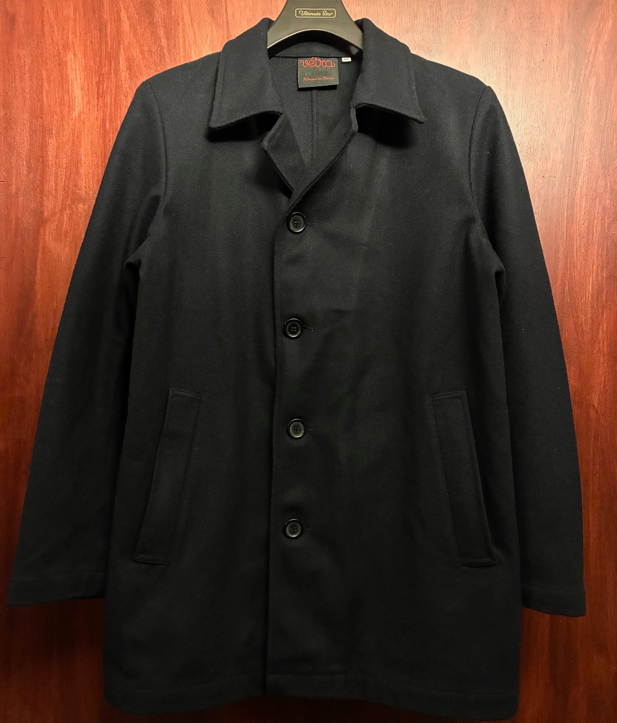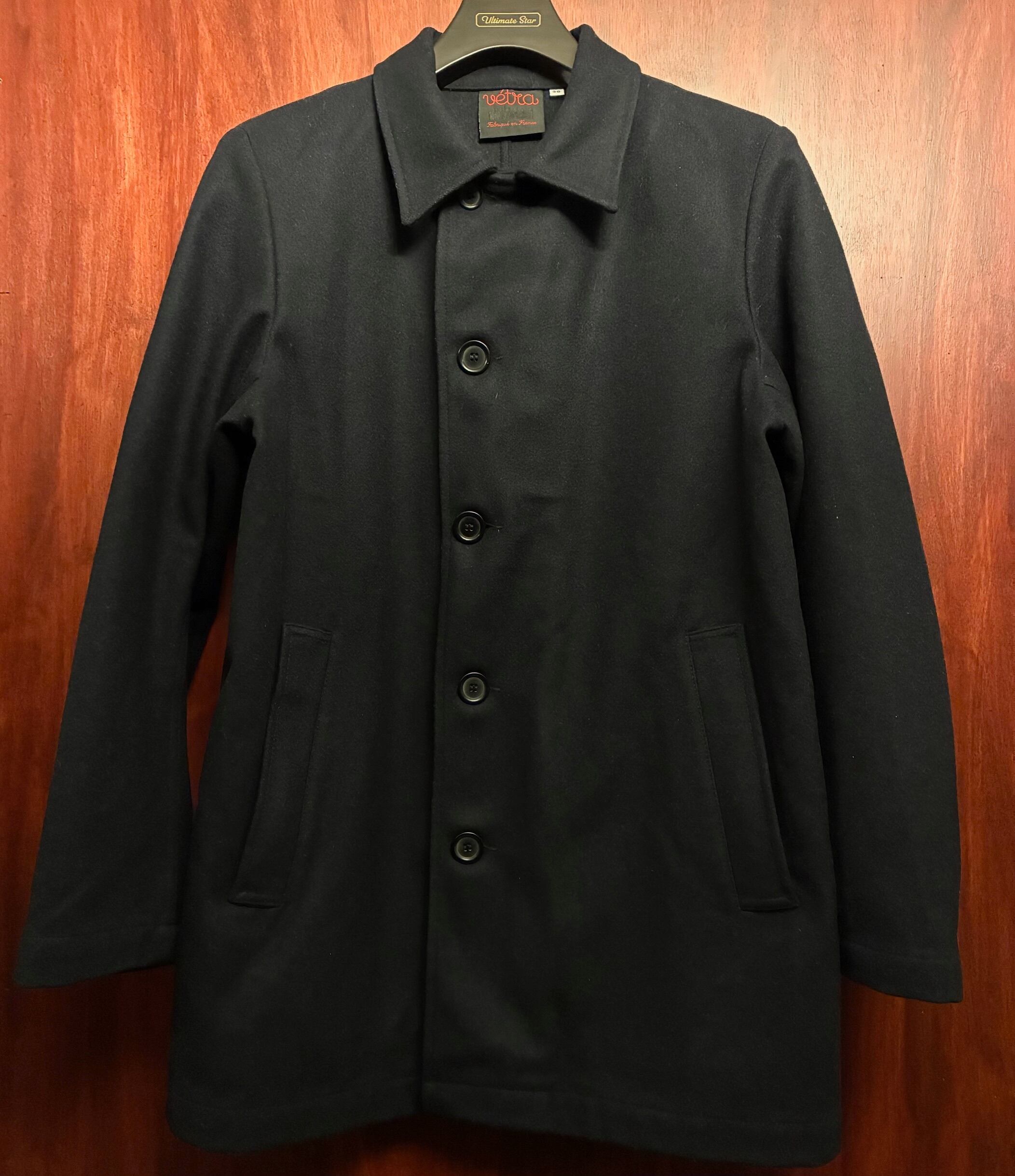 MADE IN FRANCE製 VETRA アシンメトリーデザイン ウールナイロンステンカラーコート ダークネイビー 38サイズ