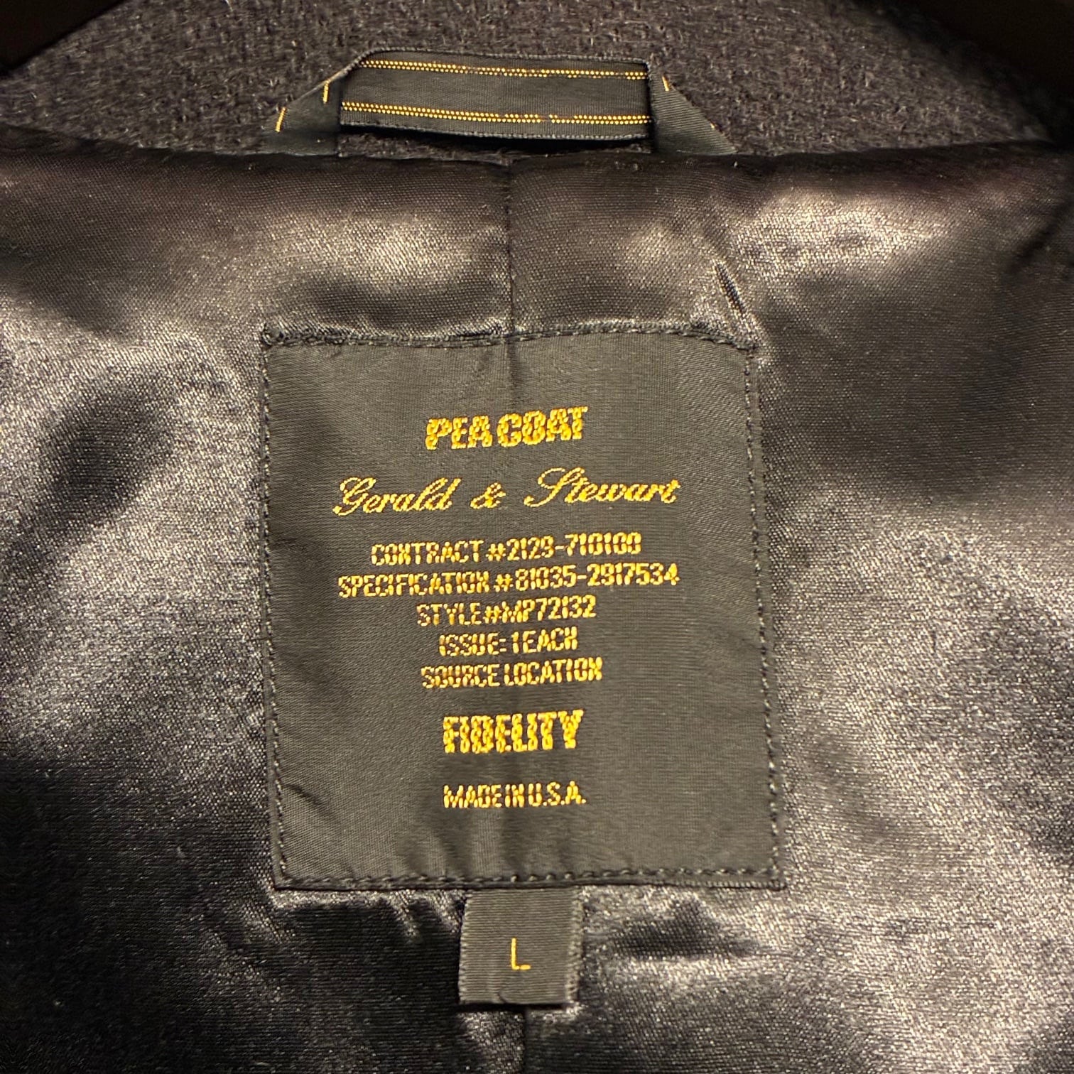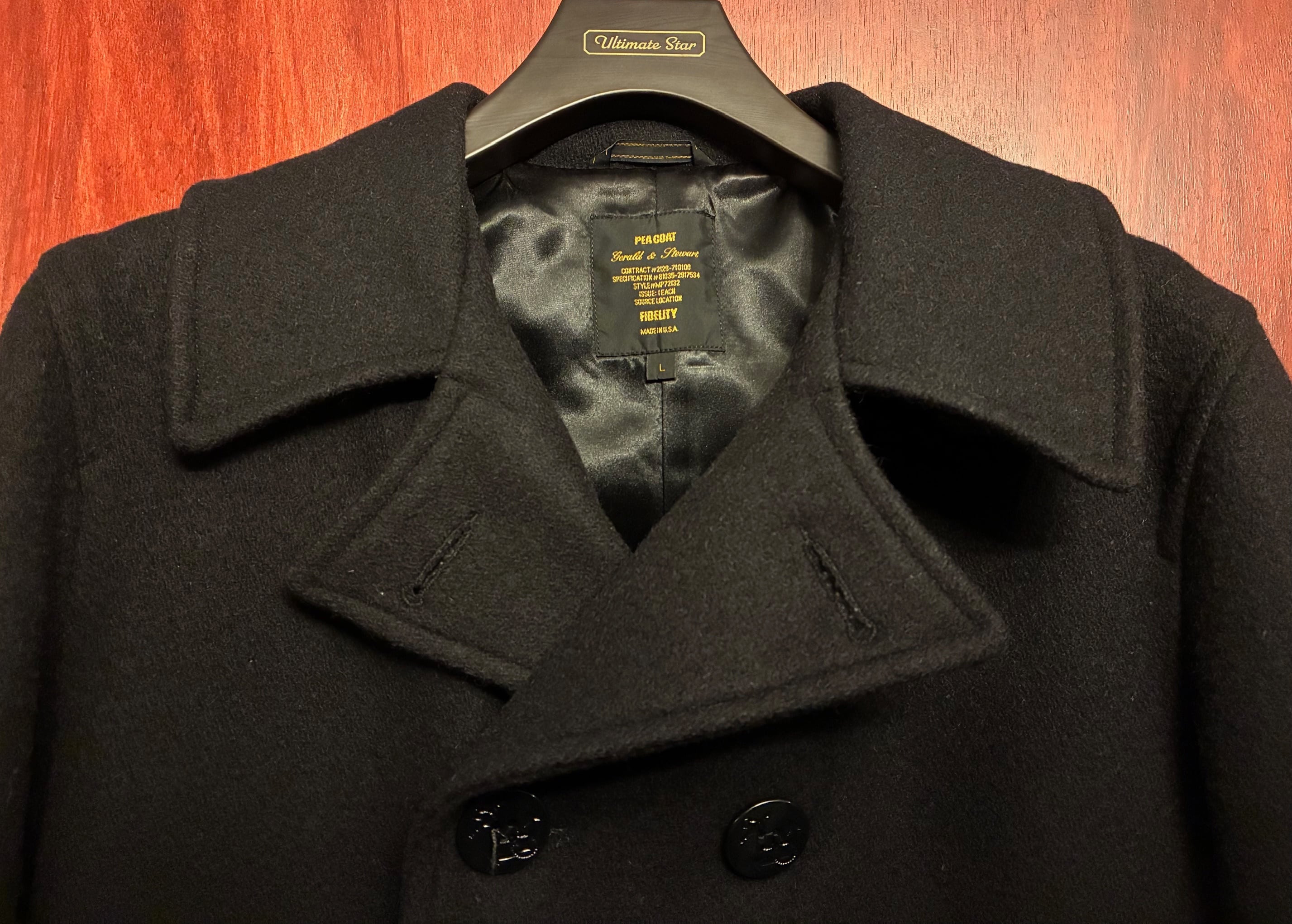 MADE IN USA製 FIDELITY ウールナイロンPコート ブラック Lサイズ