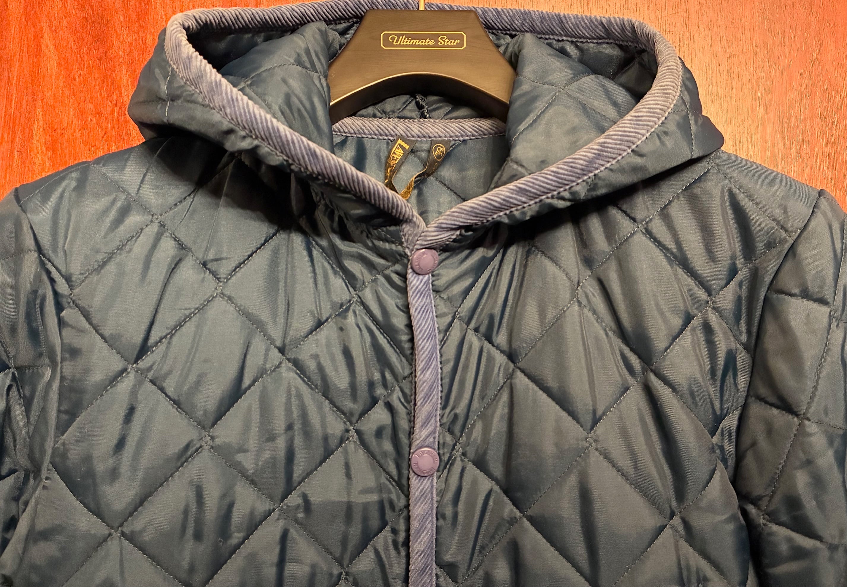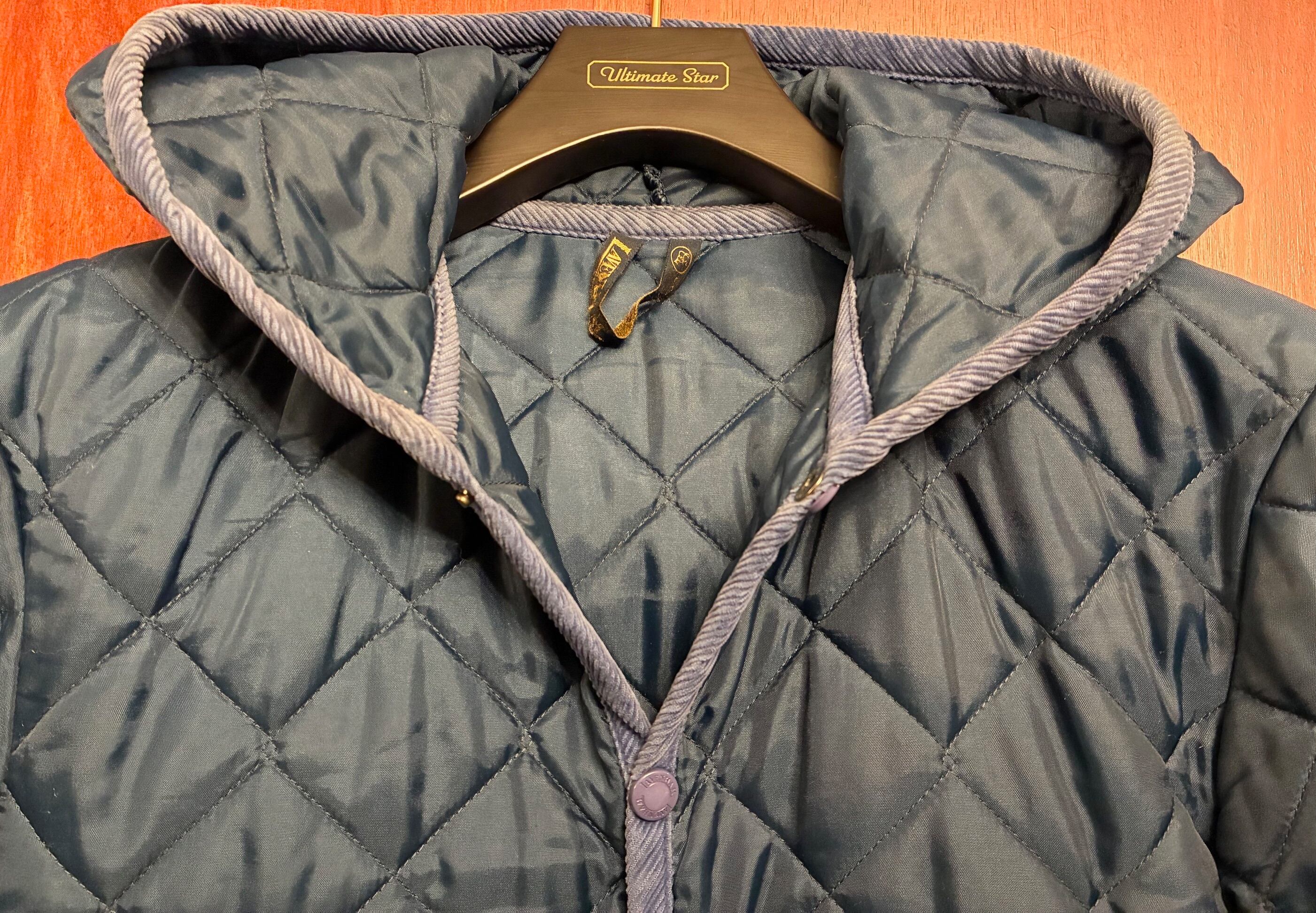 MADE IN ENGLAND製 LAVENHAM フード付きキルティングジャケット ネイビー 36/48サイズ