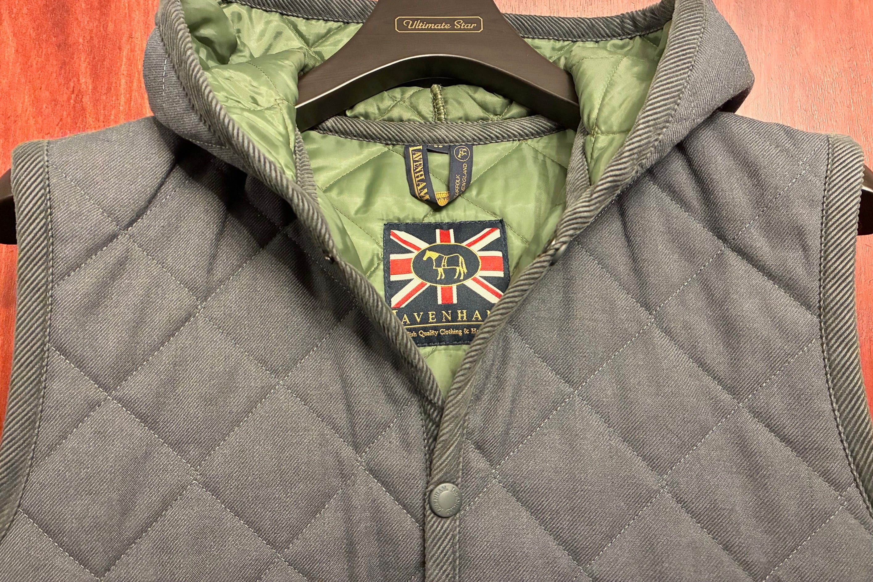 MADE IN ENGLAND製 LAVENHAM フード付きキルティングベスト グレー 38/50サイズ