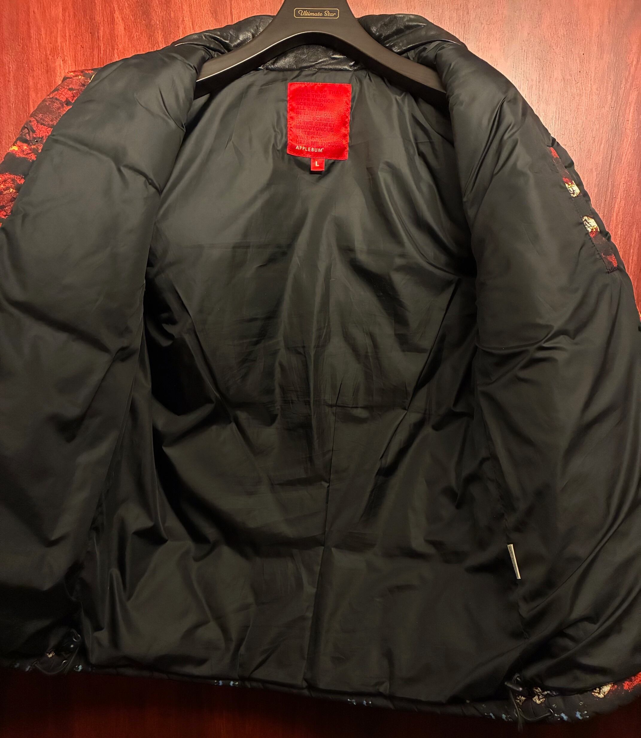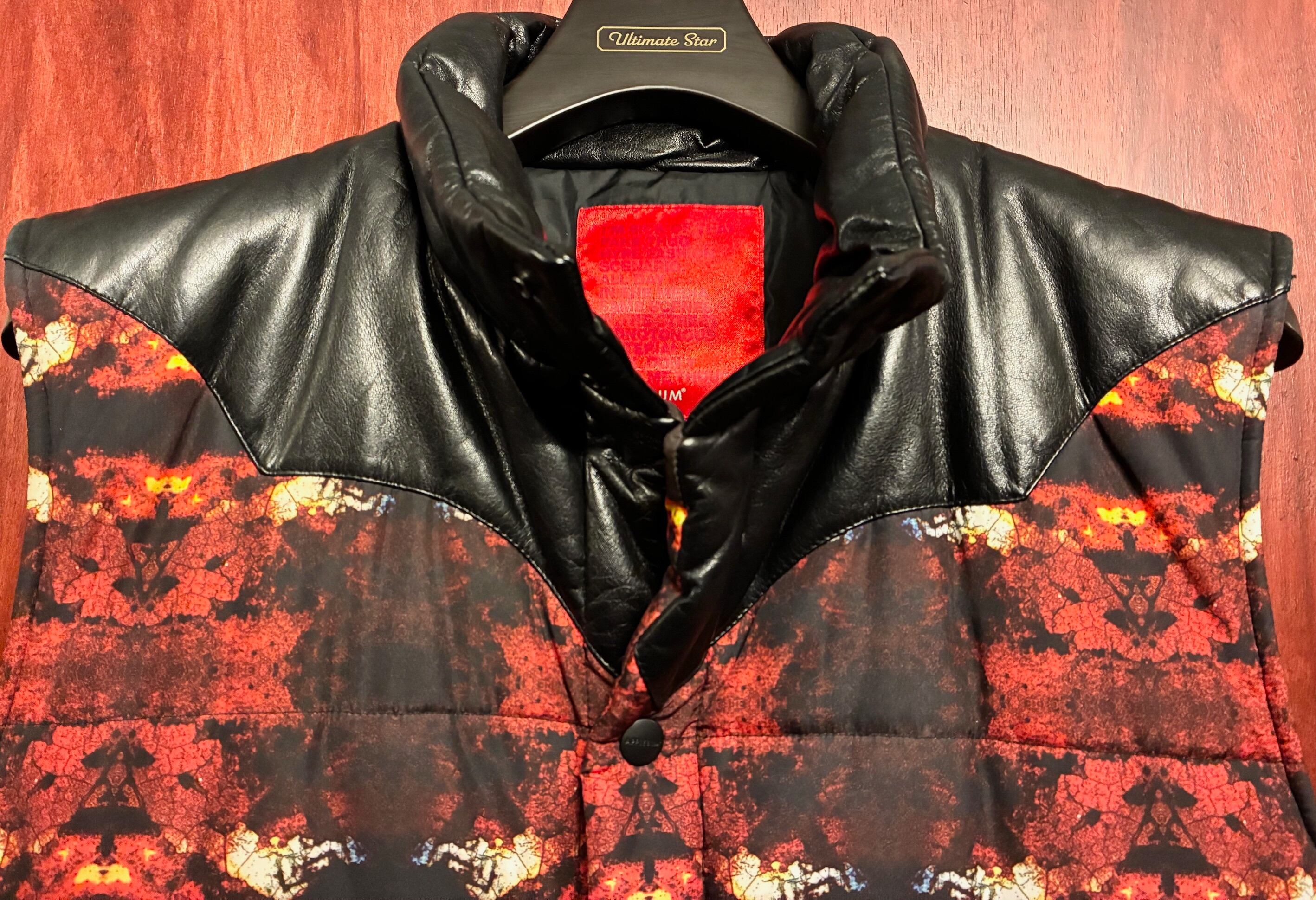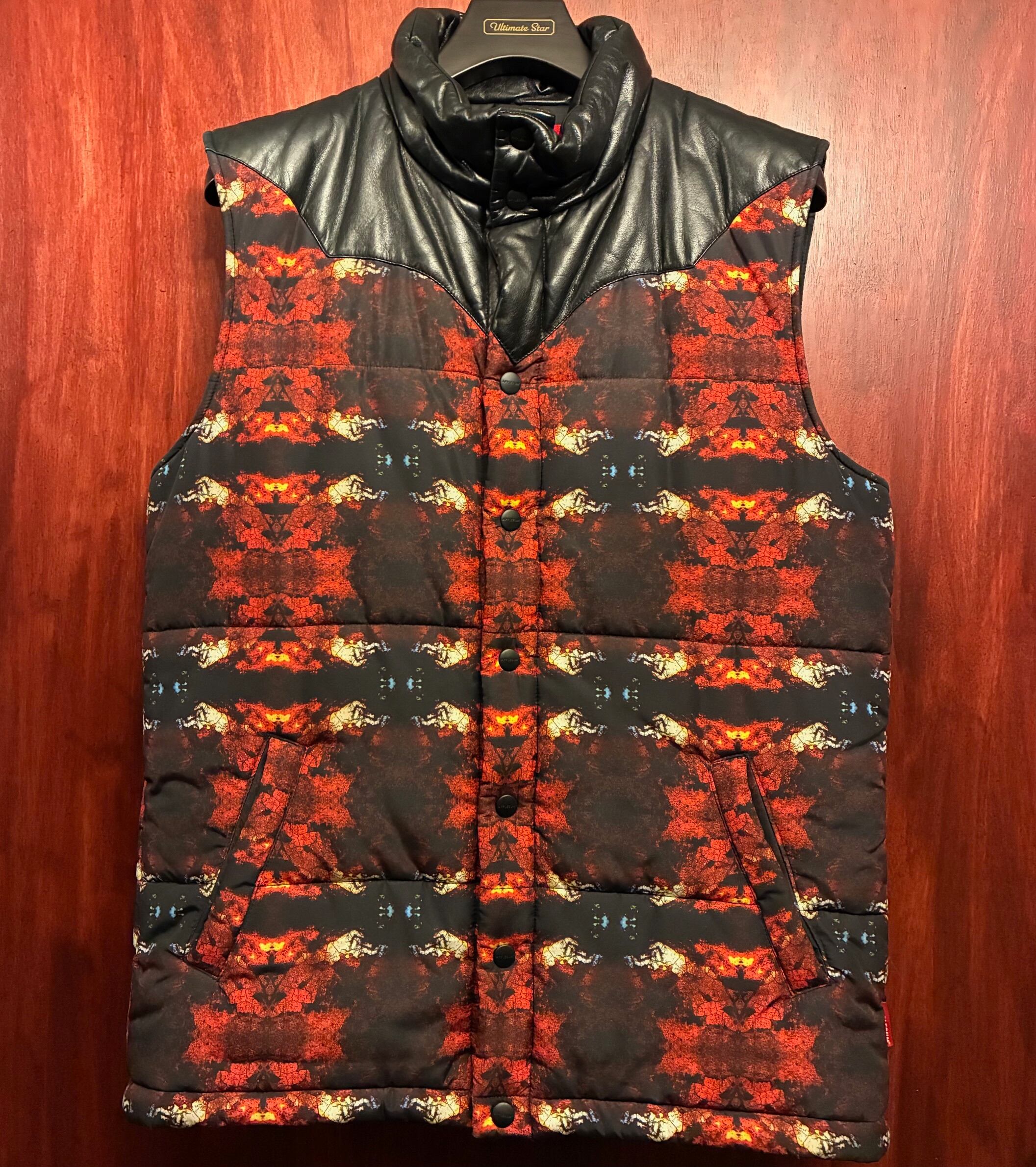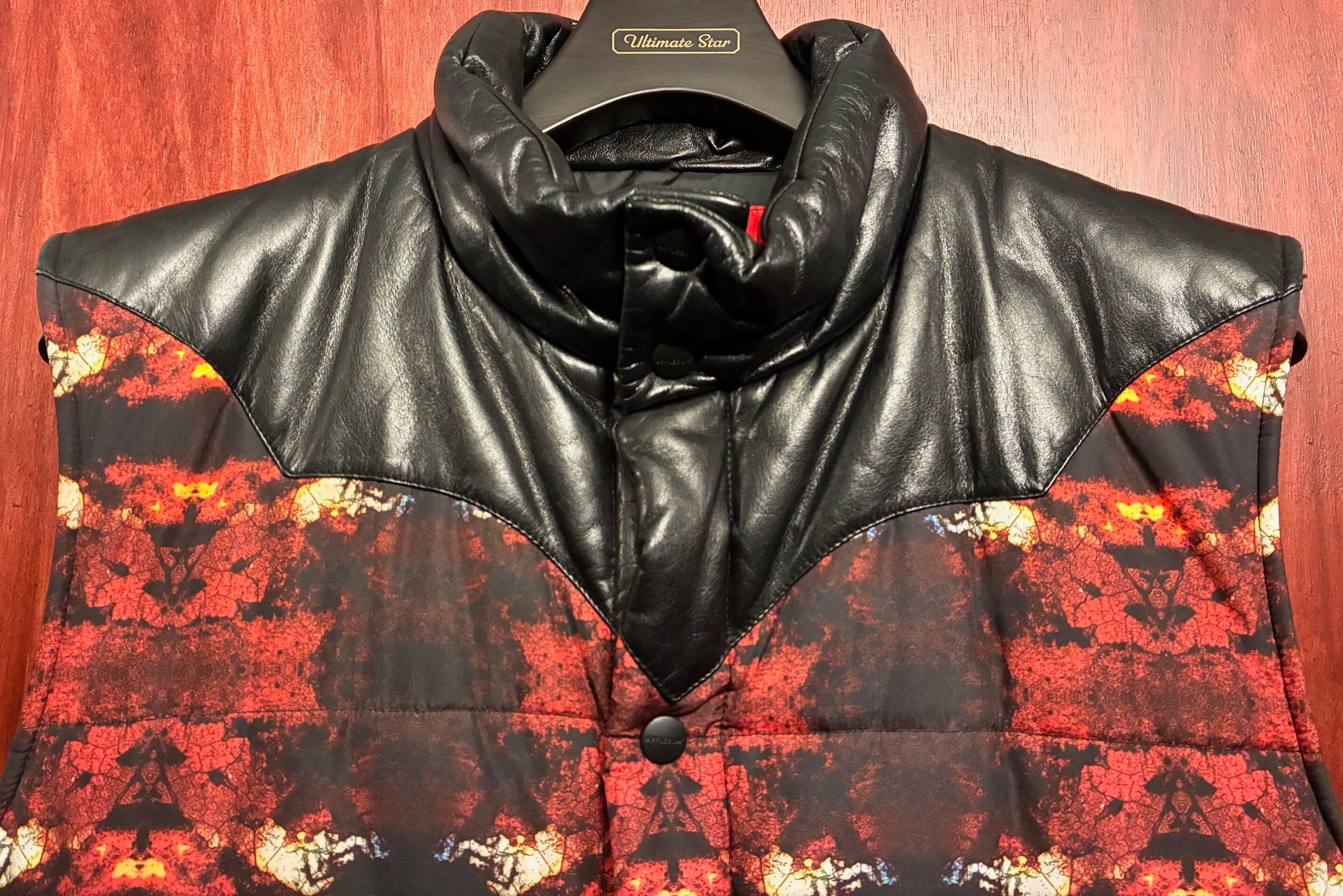 APPLEBUM 牛革 カウレザーコンビ ダウンベスト レッド×ブラック Lサイズ