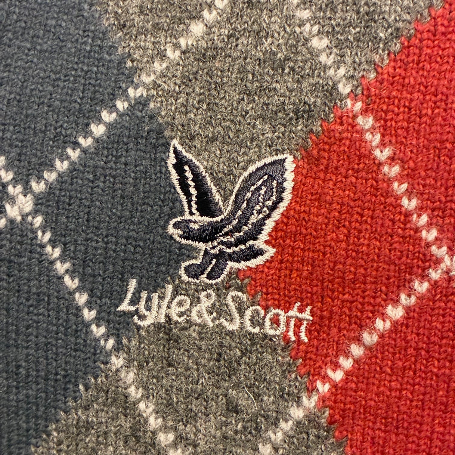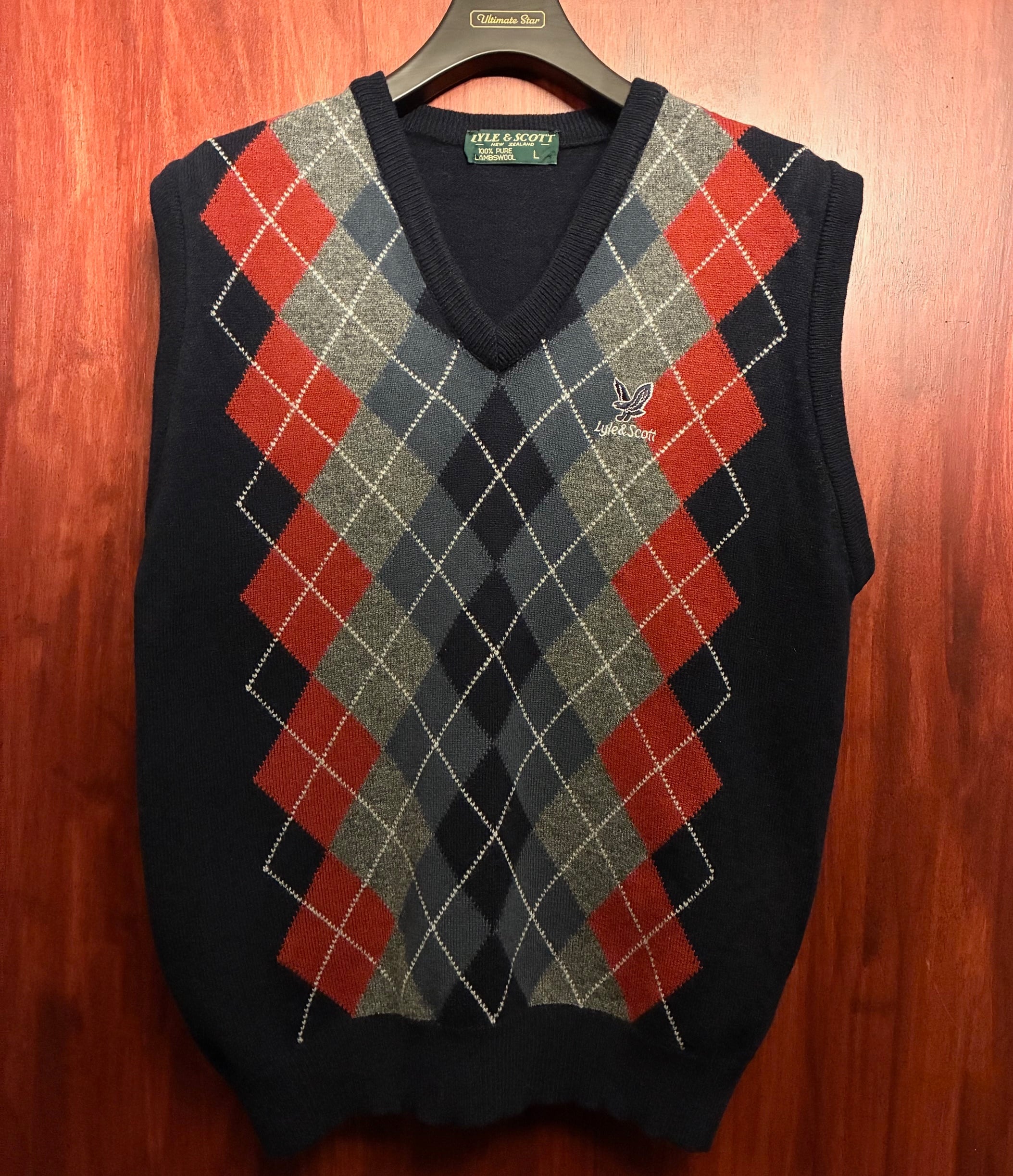 LYLE & SCOTT アーガイル柄 Vネック ウールニットベスト ネイビー Lサイズ