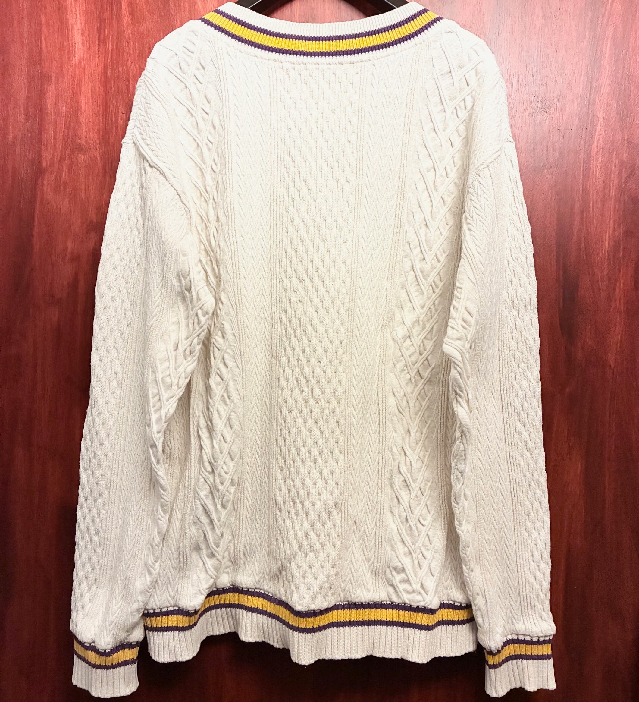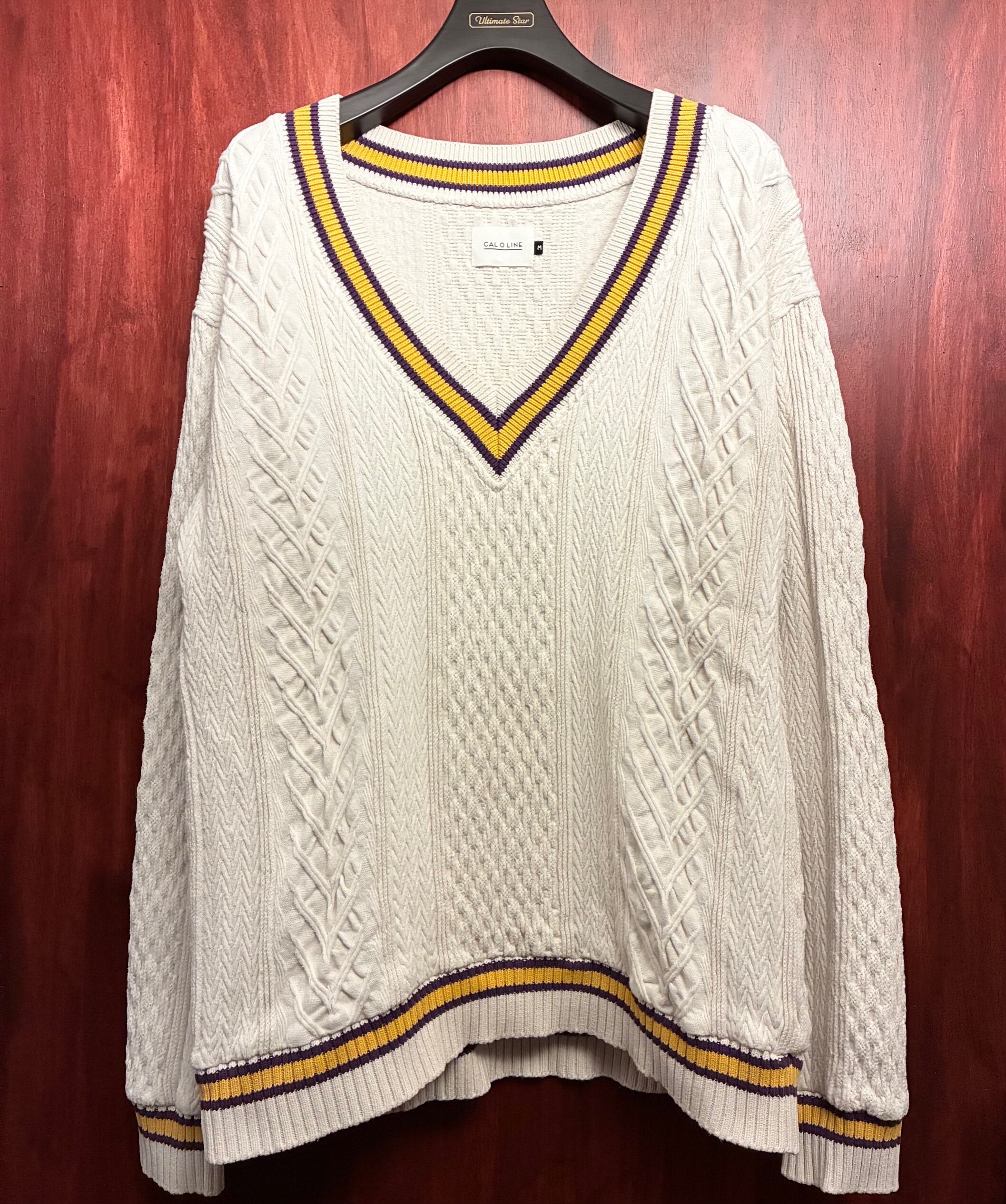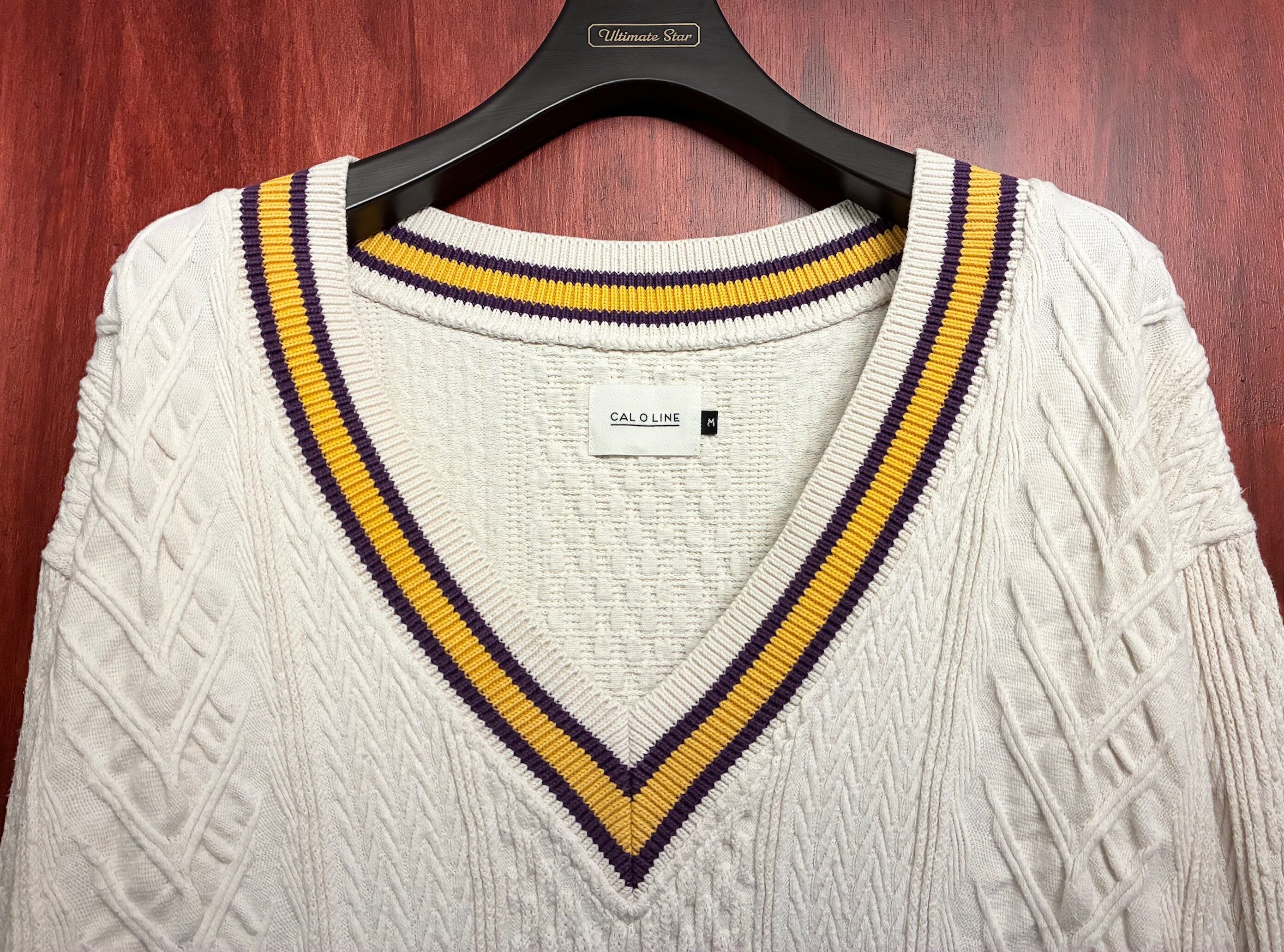 MADE IN JAPAN製 CAL O LINE ケーブルニット コットンVネックセーター オフホワイト Mサイズ