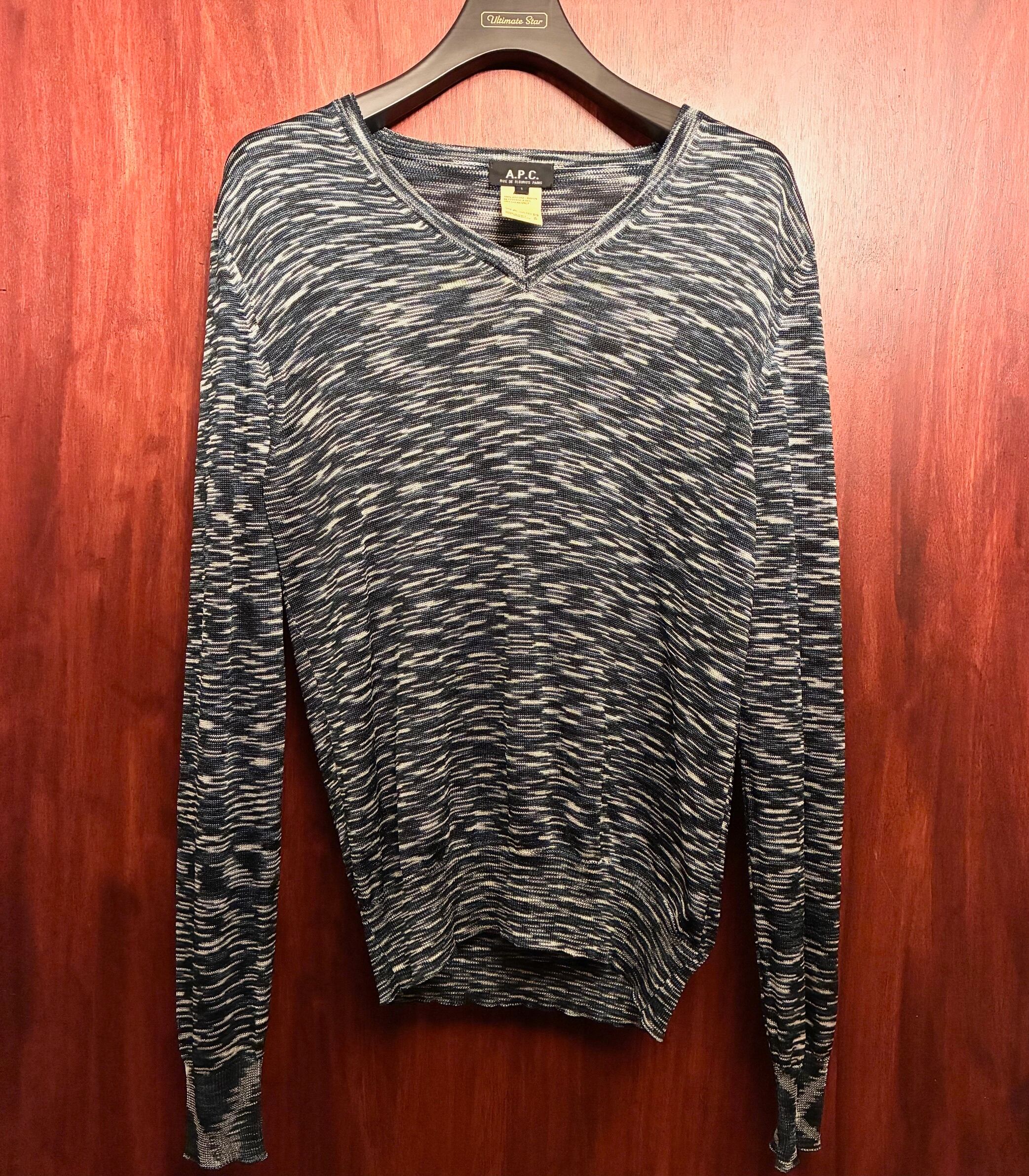 MADE IN ITALY製 A.P.C. レーヨンVネックセーター ネイビー 1サイズ