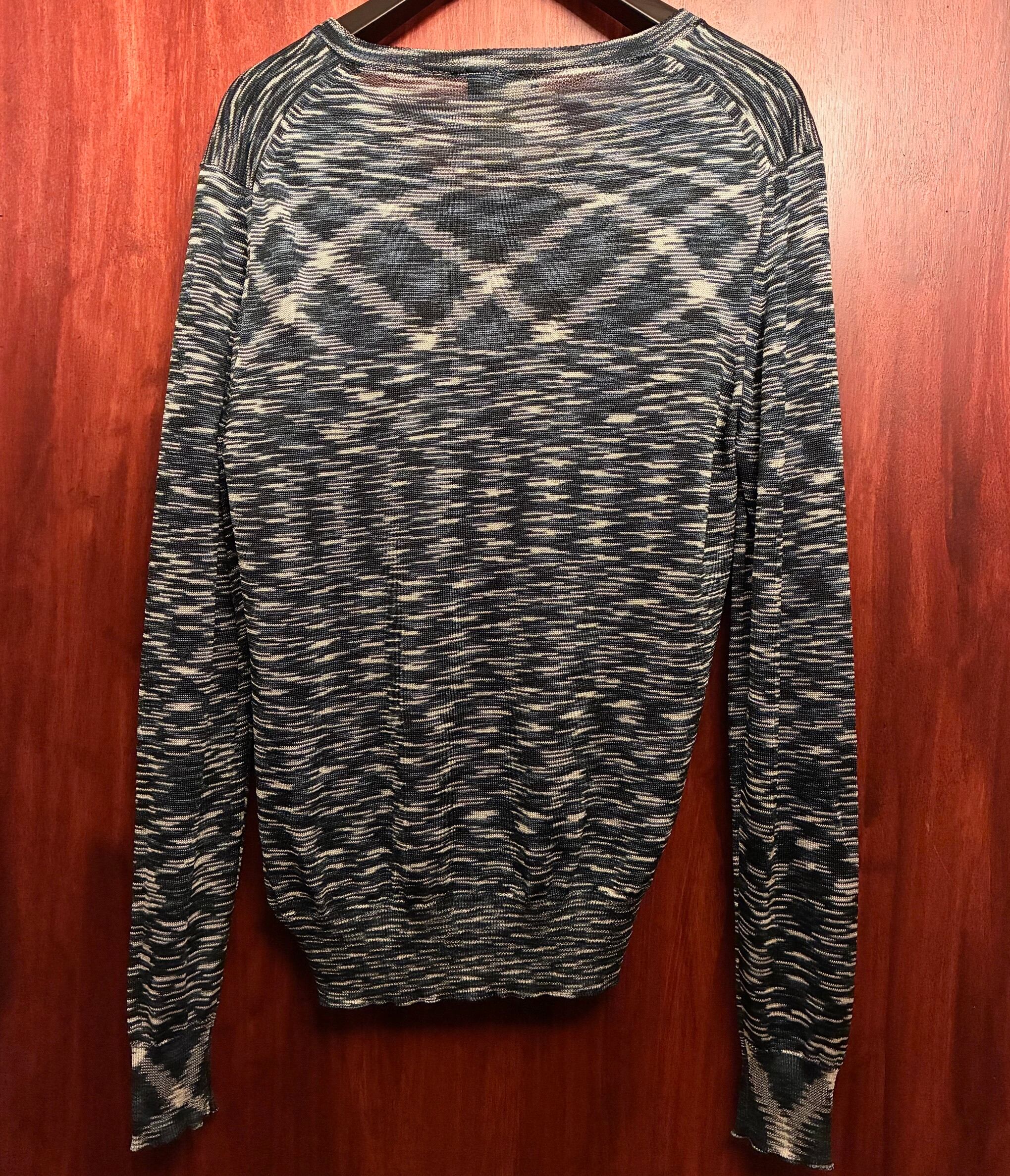 レーヨン100%なのでドレープ感があり、ネイビーにホワイトを混ぜたようなミックスカラーがオシャレなサマーセーターとしても活躍出来るおすすめの一品です。