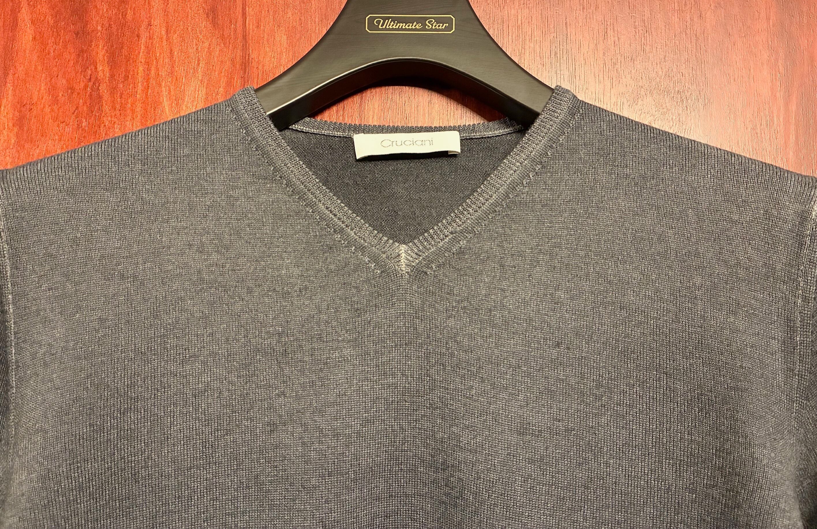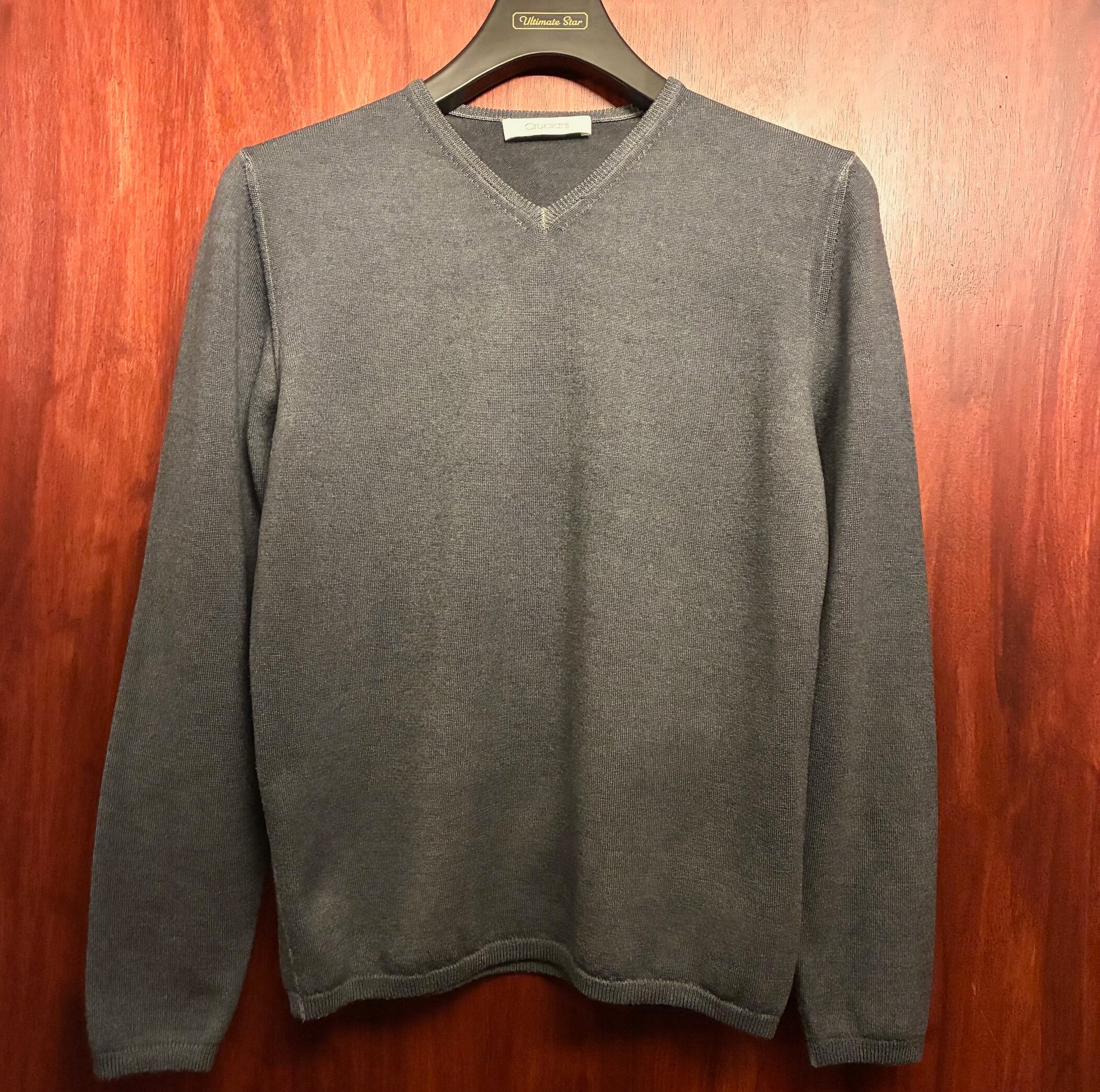 MADE IN ITALY製 Cruciani ウールVネックセーター チャコールグレー 44サイズ