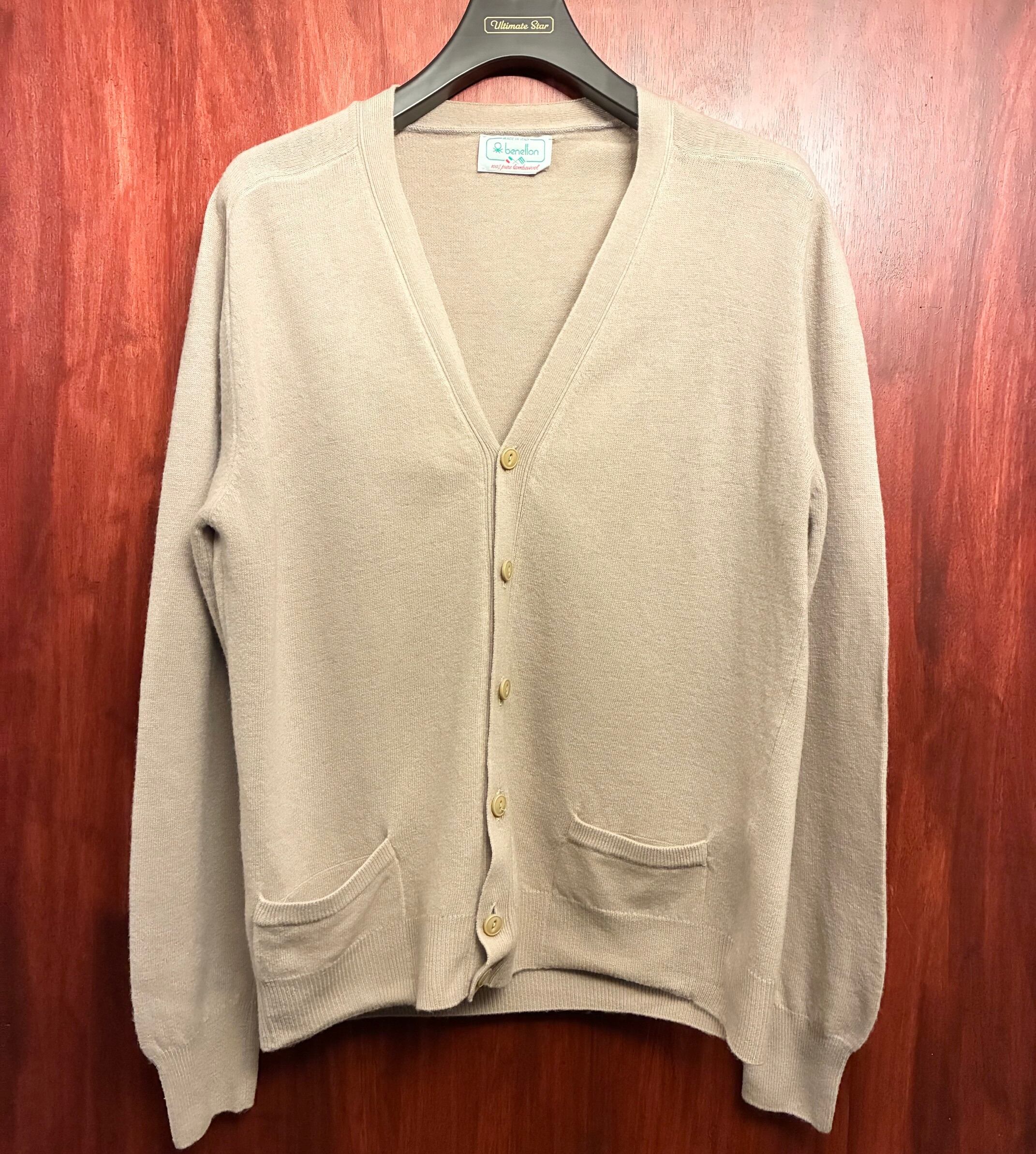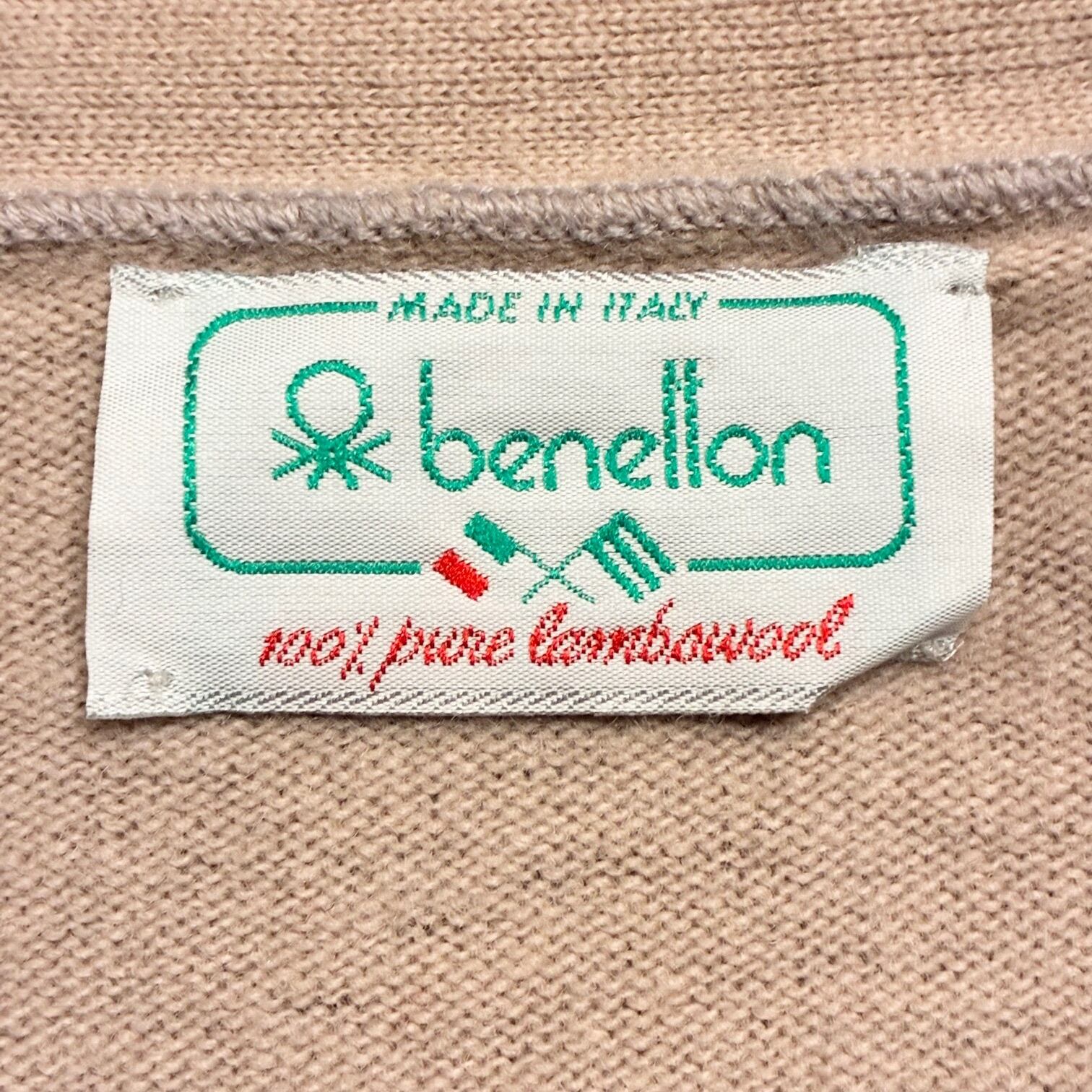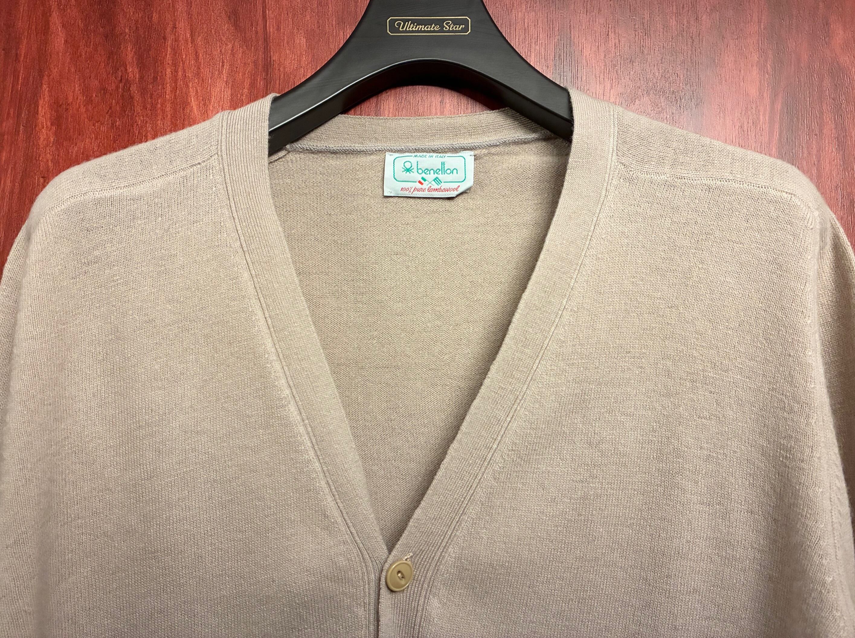MADE IN ITALY製 80s UNITED COLORS OF BENETTON ラムウールカーディガン ベージュ 48サイズ