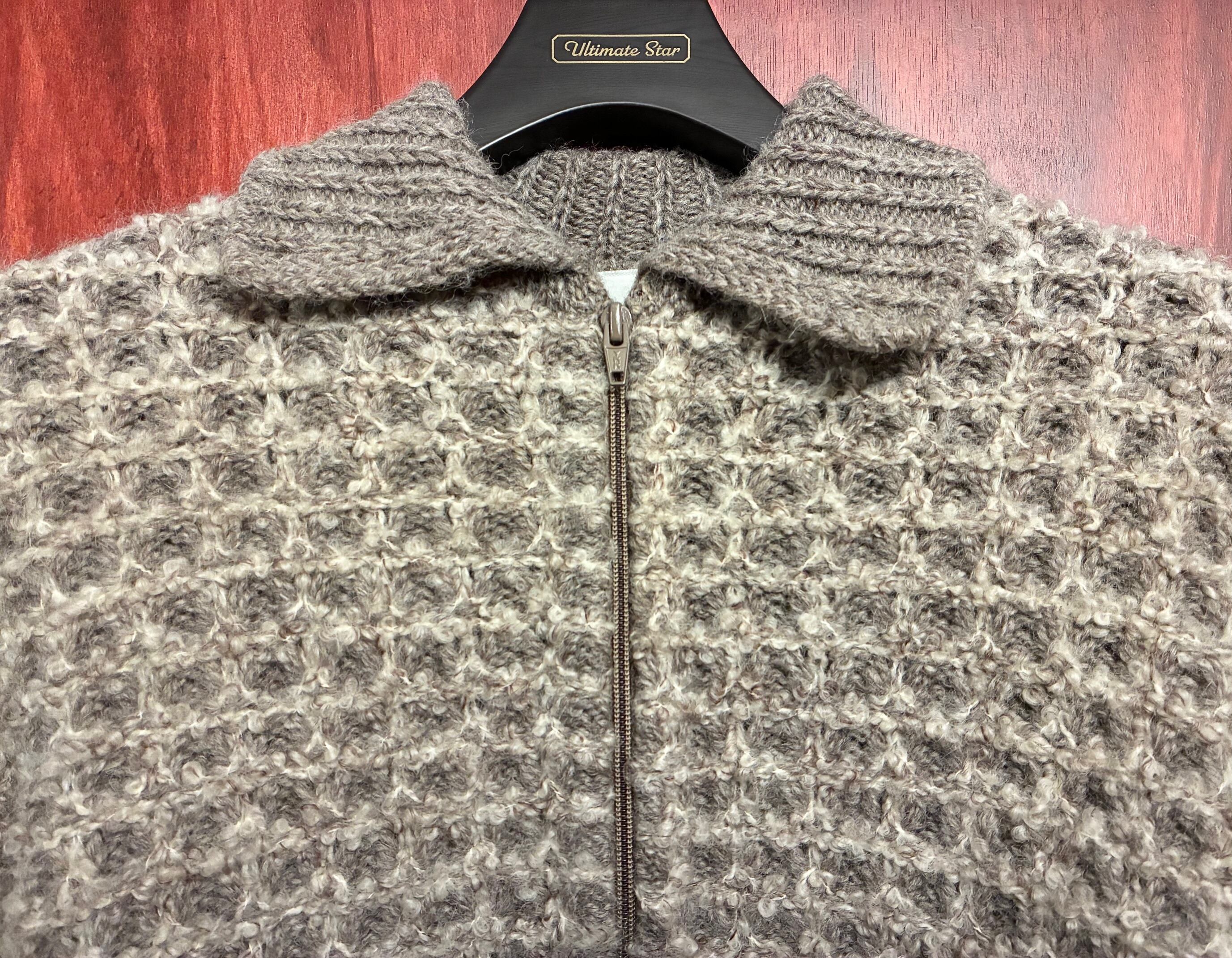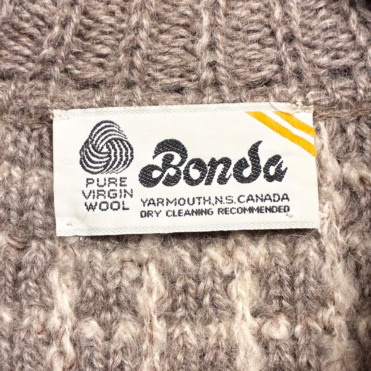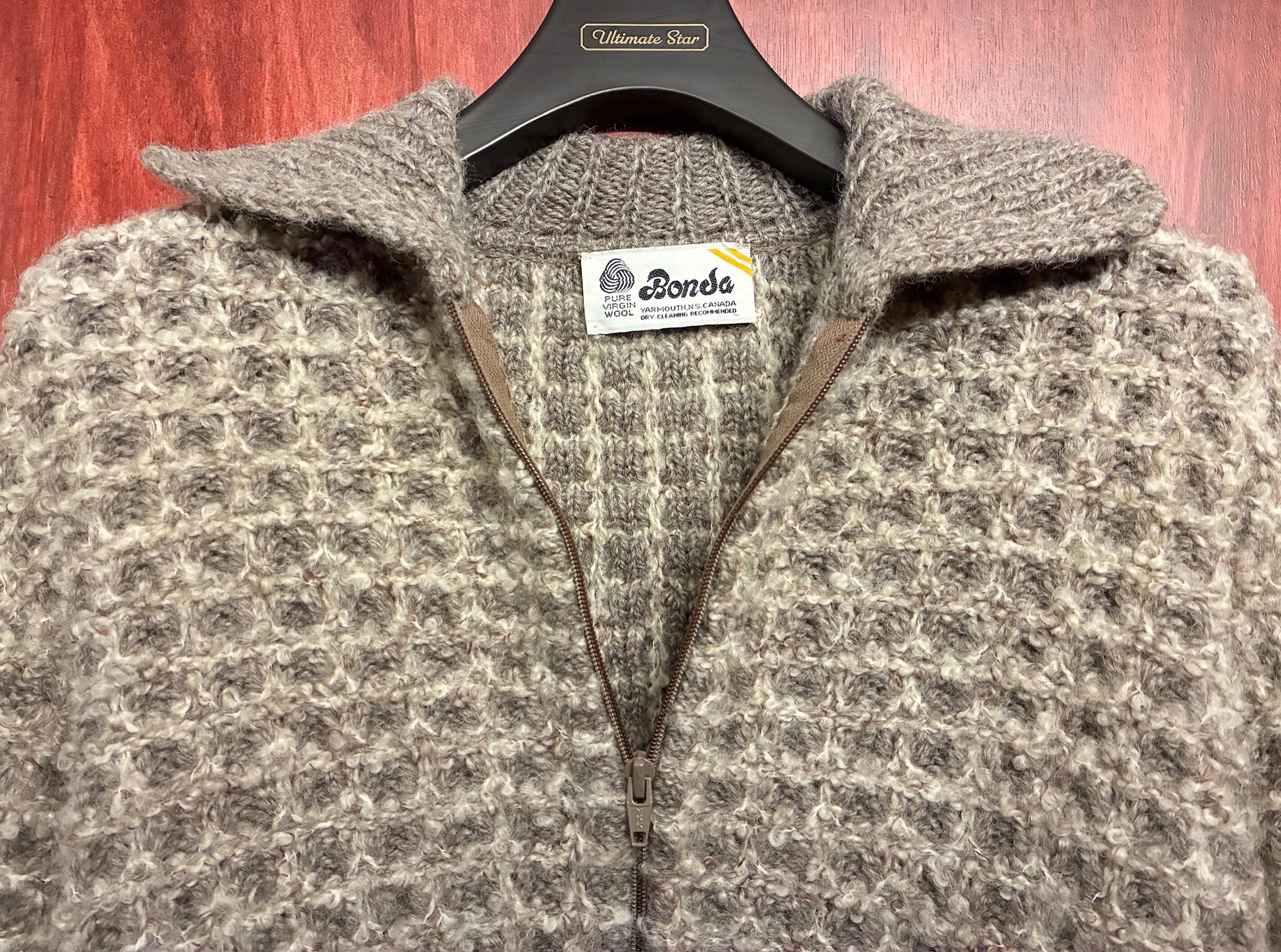 こちらはヴィンテージのカウチンセーターなどを手掛けていたカナダ製のBondaのフルジップニットジャケットです。