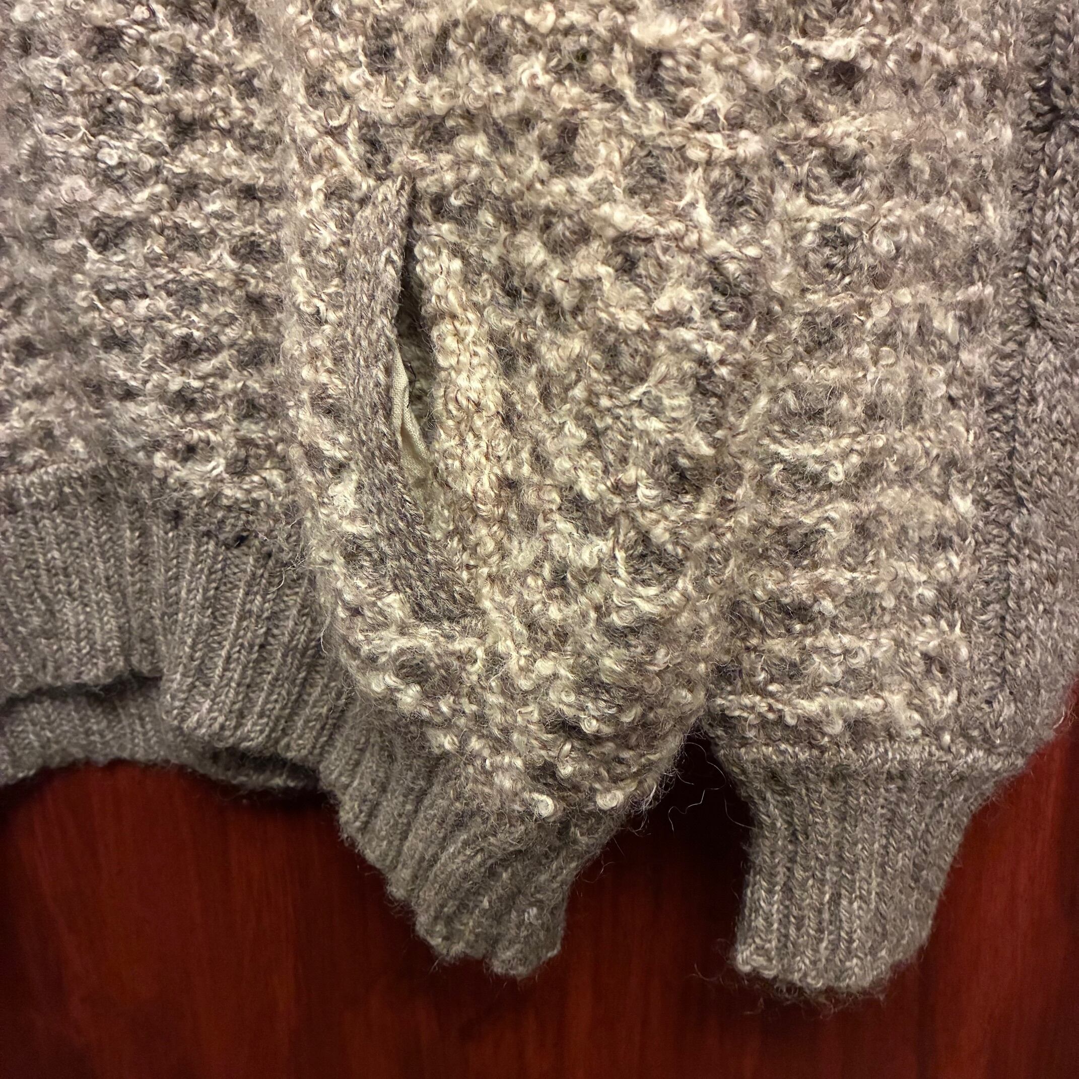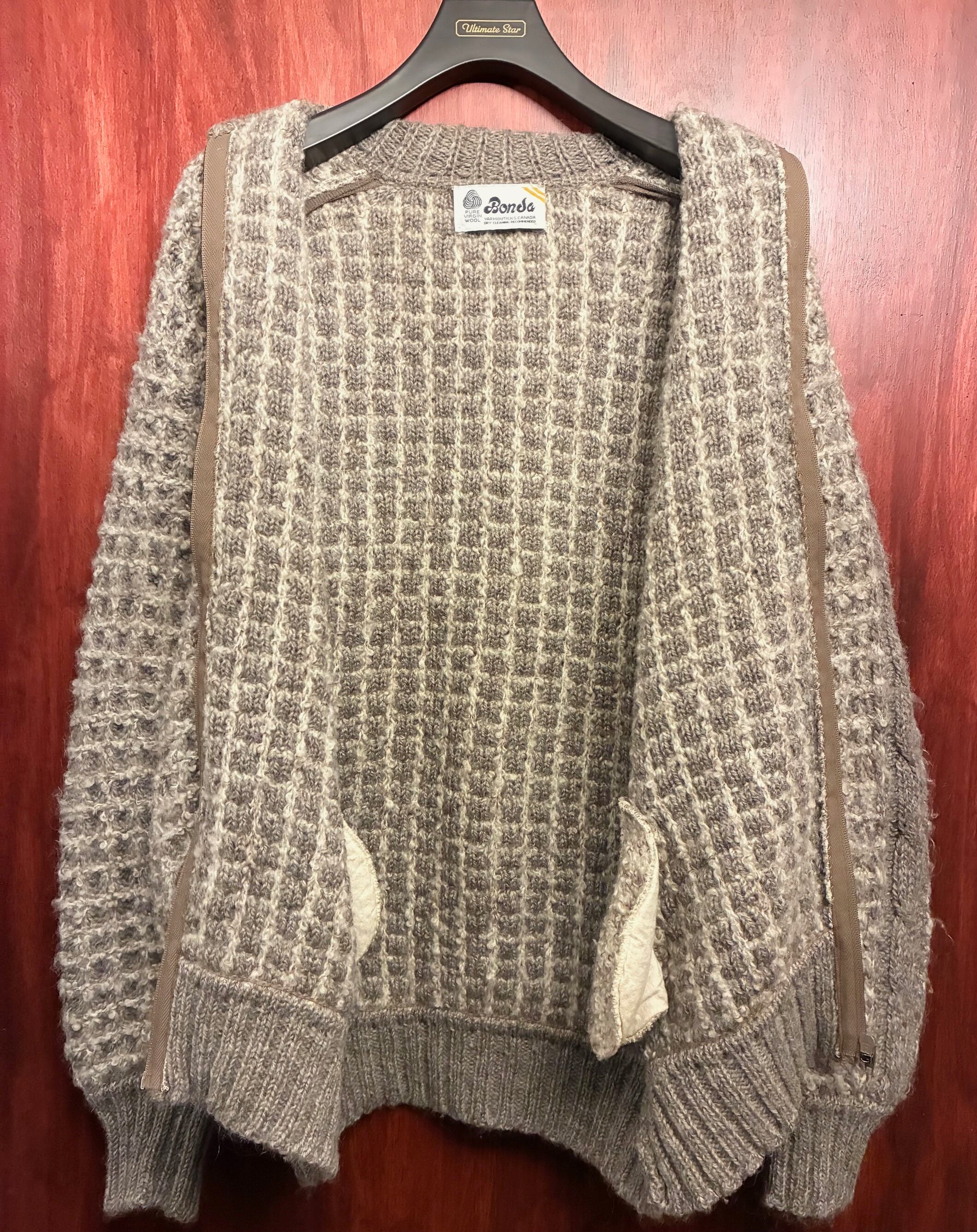 MADE IN CANADA製 70s~80s Bonda ヴァージンウールフルジップニットジャケット グレージュ×アイボリー XLサイズ