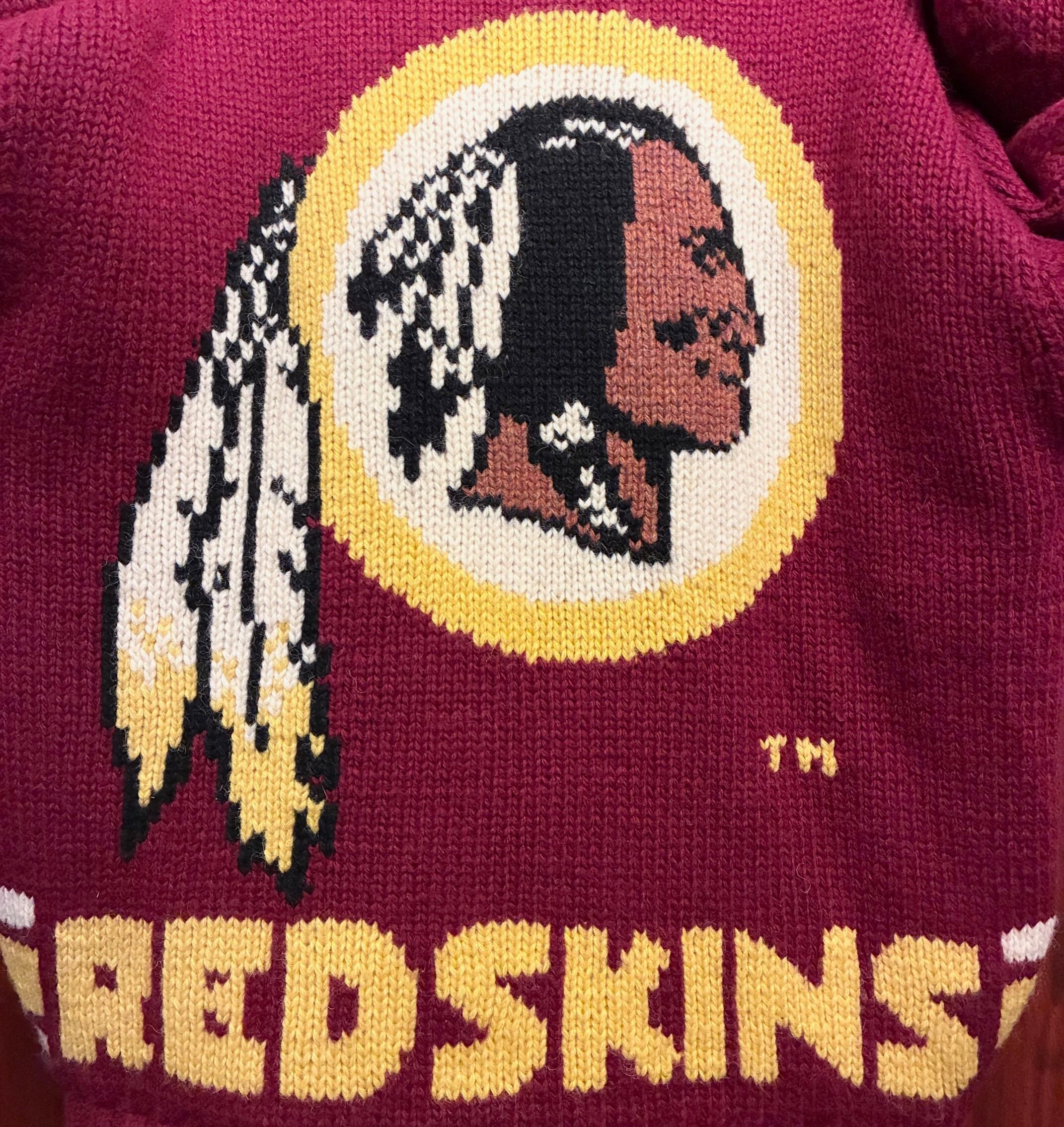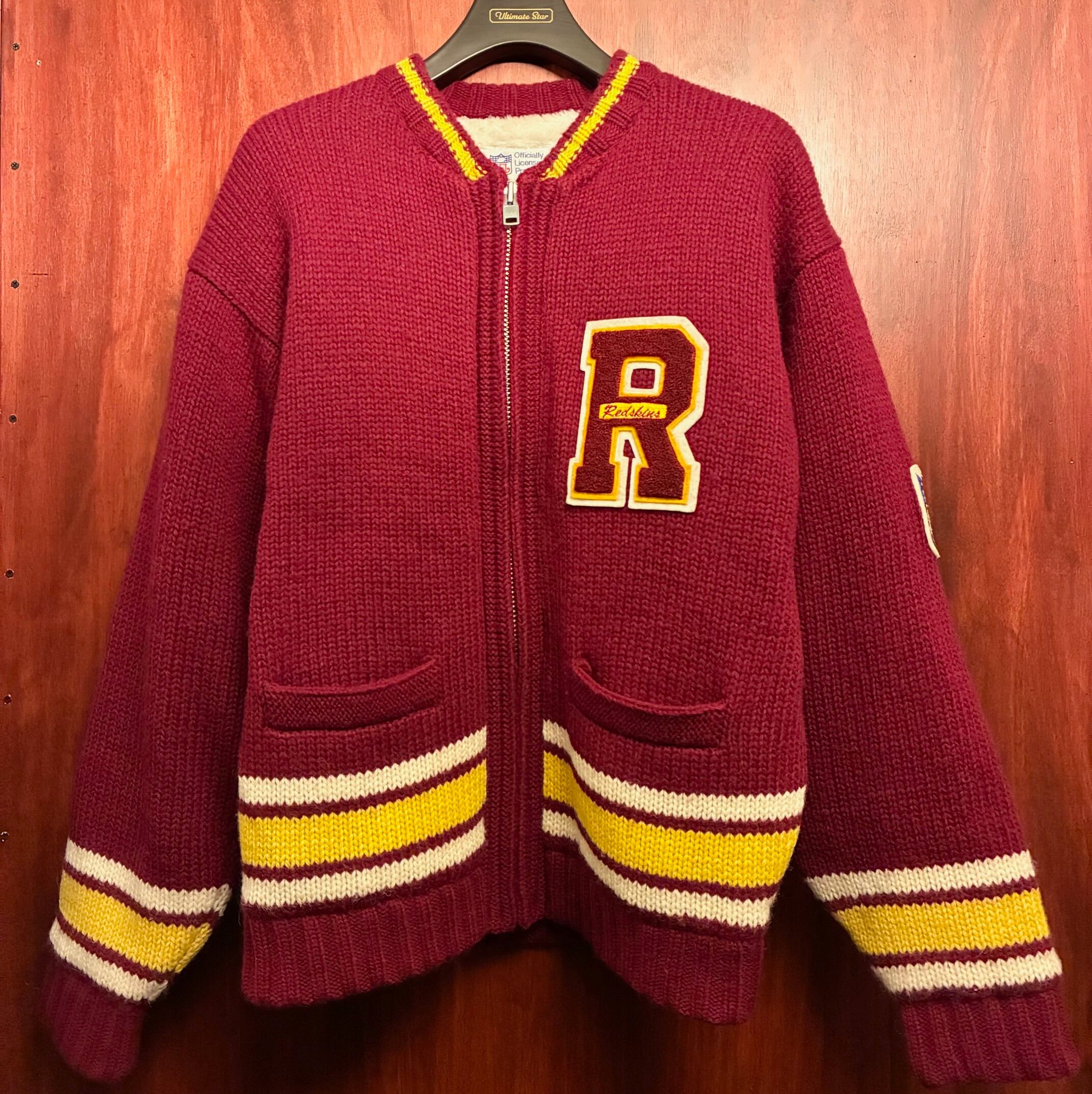 こちらはNFLの人気チーム、WASHINGTON REDSKINS(ワシントン・レッドスキンズ)のフルジップニットジャケットです。