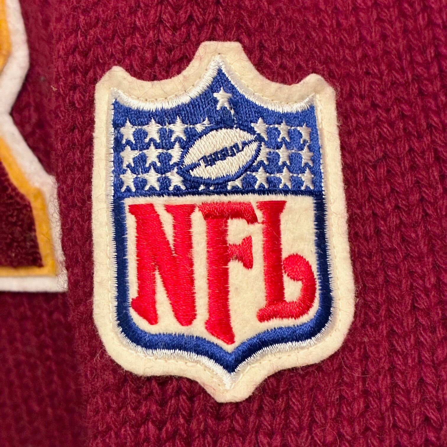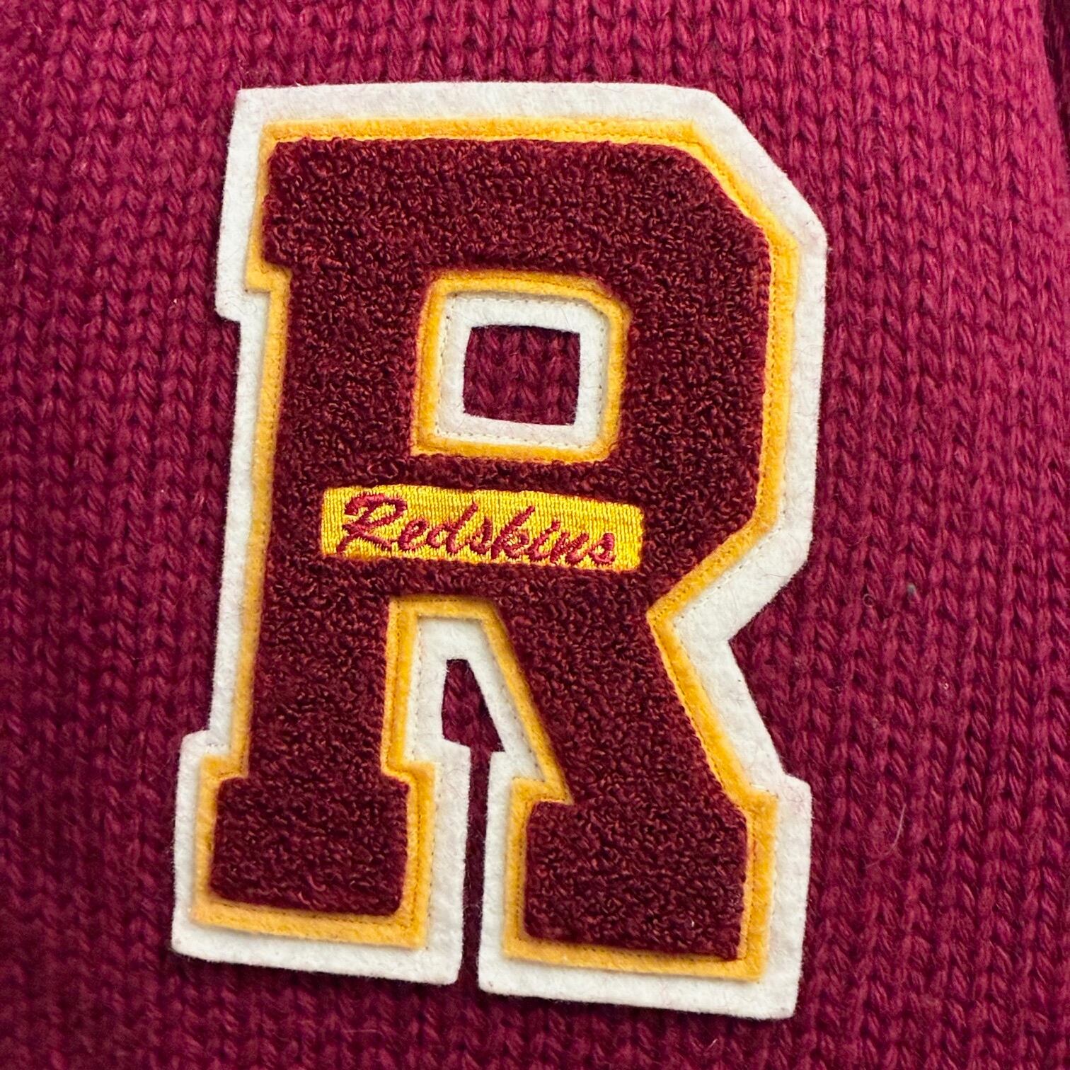 左胸にレッドスキンズのRのワッペンと左腕にNFLのワッペンが付いており、背面のレッドスキンズのチームロゴとチーム名はニットに織り込んで作るなど非常に手の込んだスタジャンのようなデザインになっております。