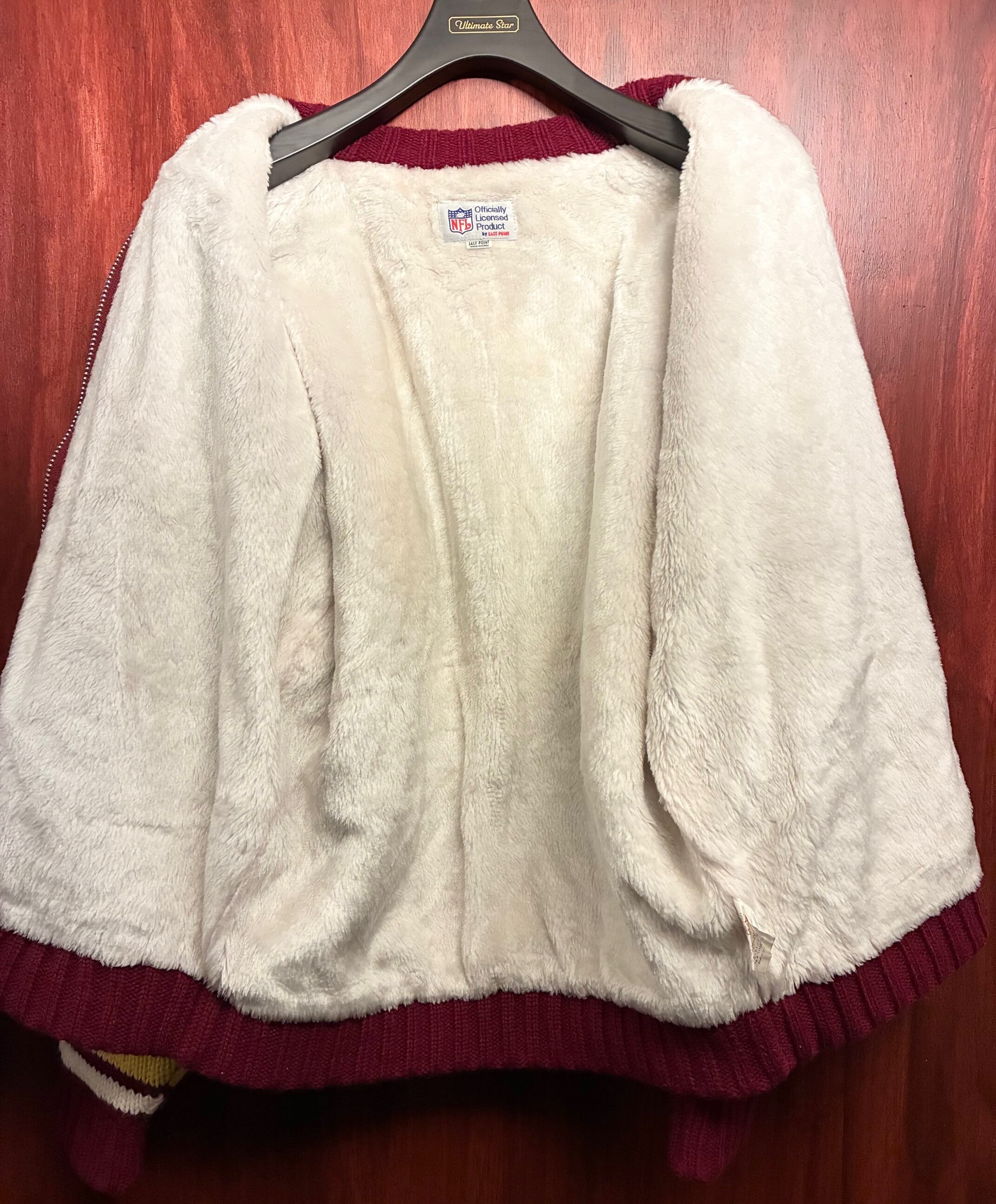 レア MADE IN KOREA製 90s EAST POINT × NFL WASHINGTON REDSKINS 裏ボア フルジップニットジャケット ワイン Fサイズ