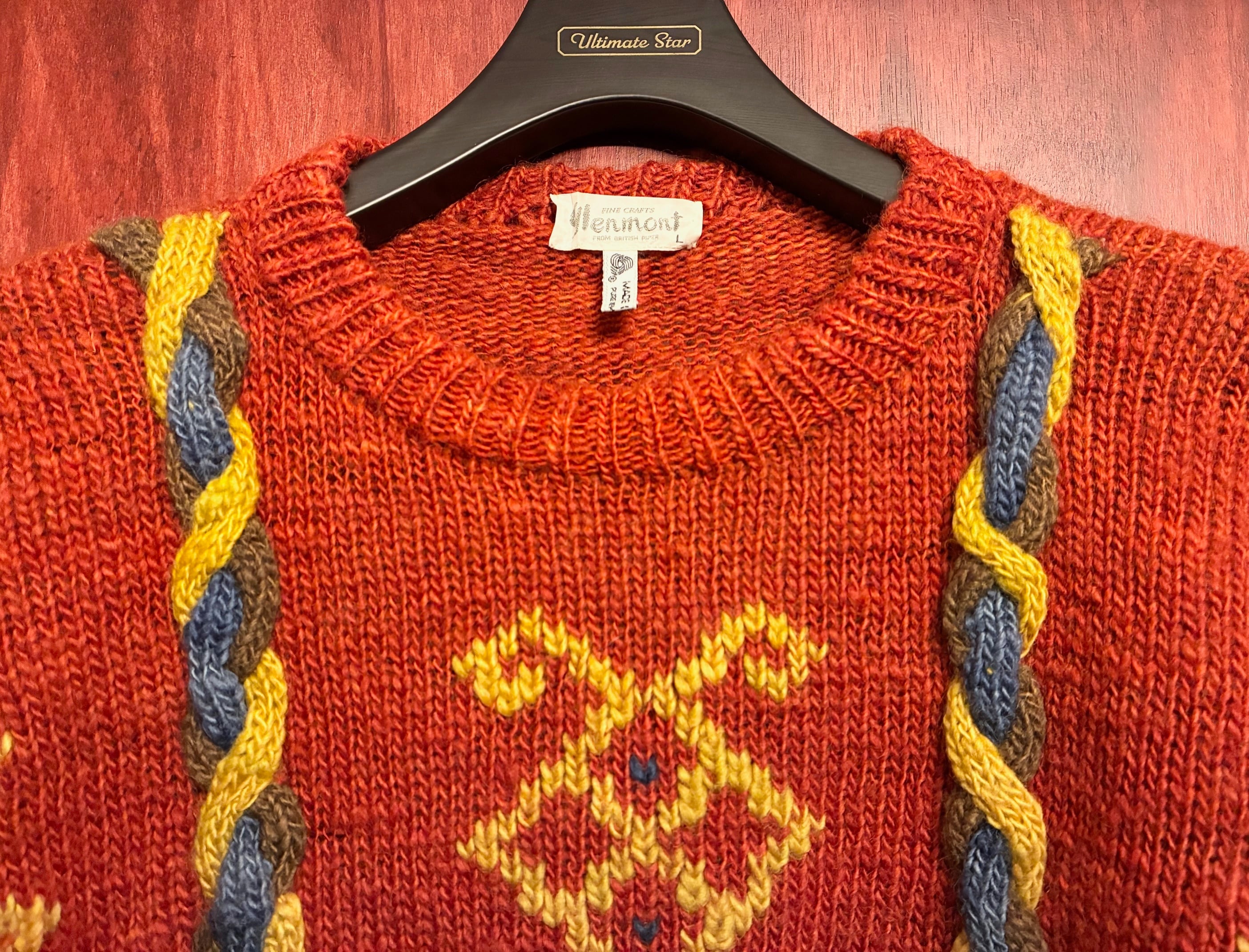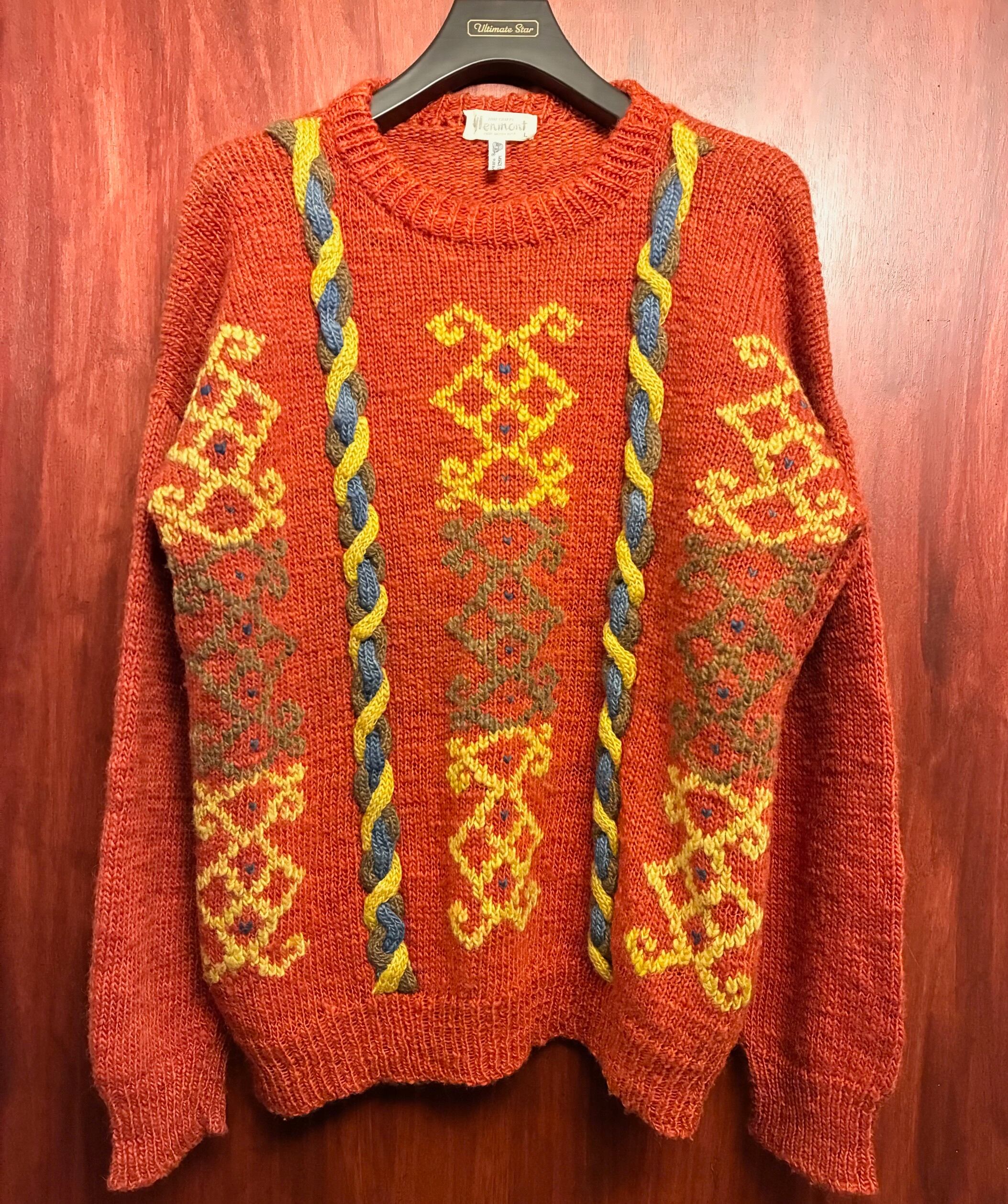 MADE IN URUGUAY製 glenmont 3Dニット ウールセーター オレンジ Lサイズ