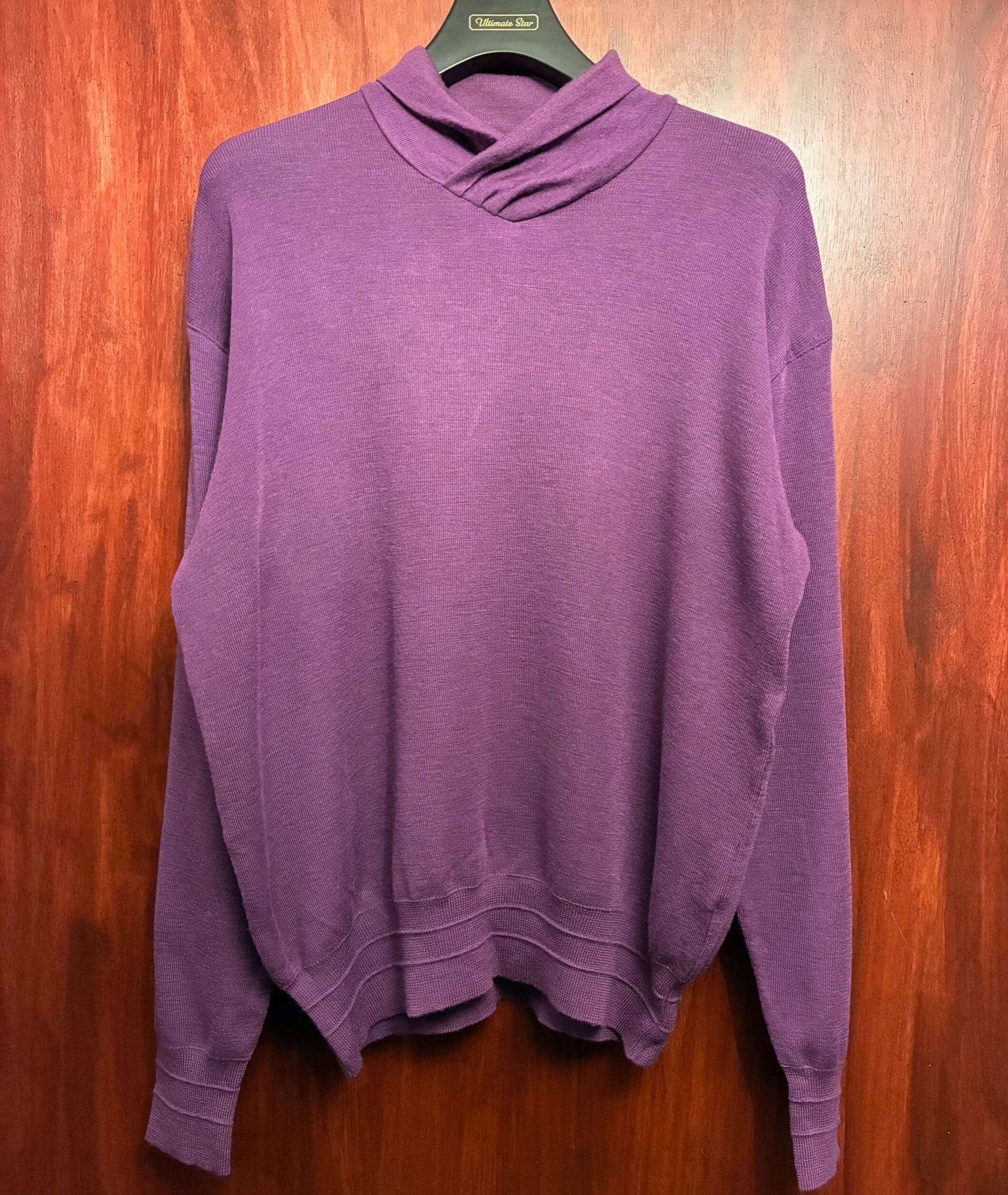 MADE IN ITALY製 DUCA COUTURE ラムウールハイネックセーター パープル Lサイズ