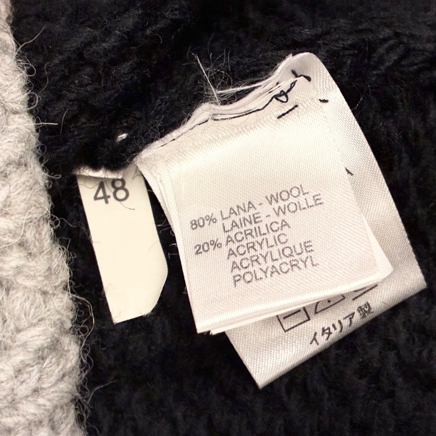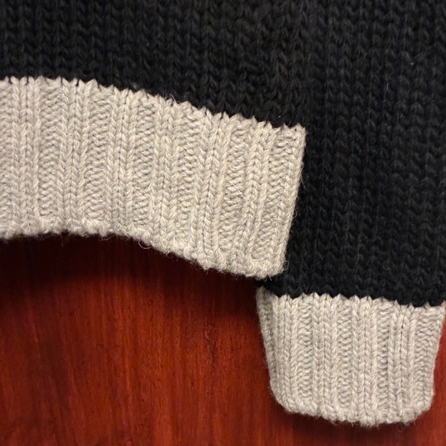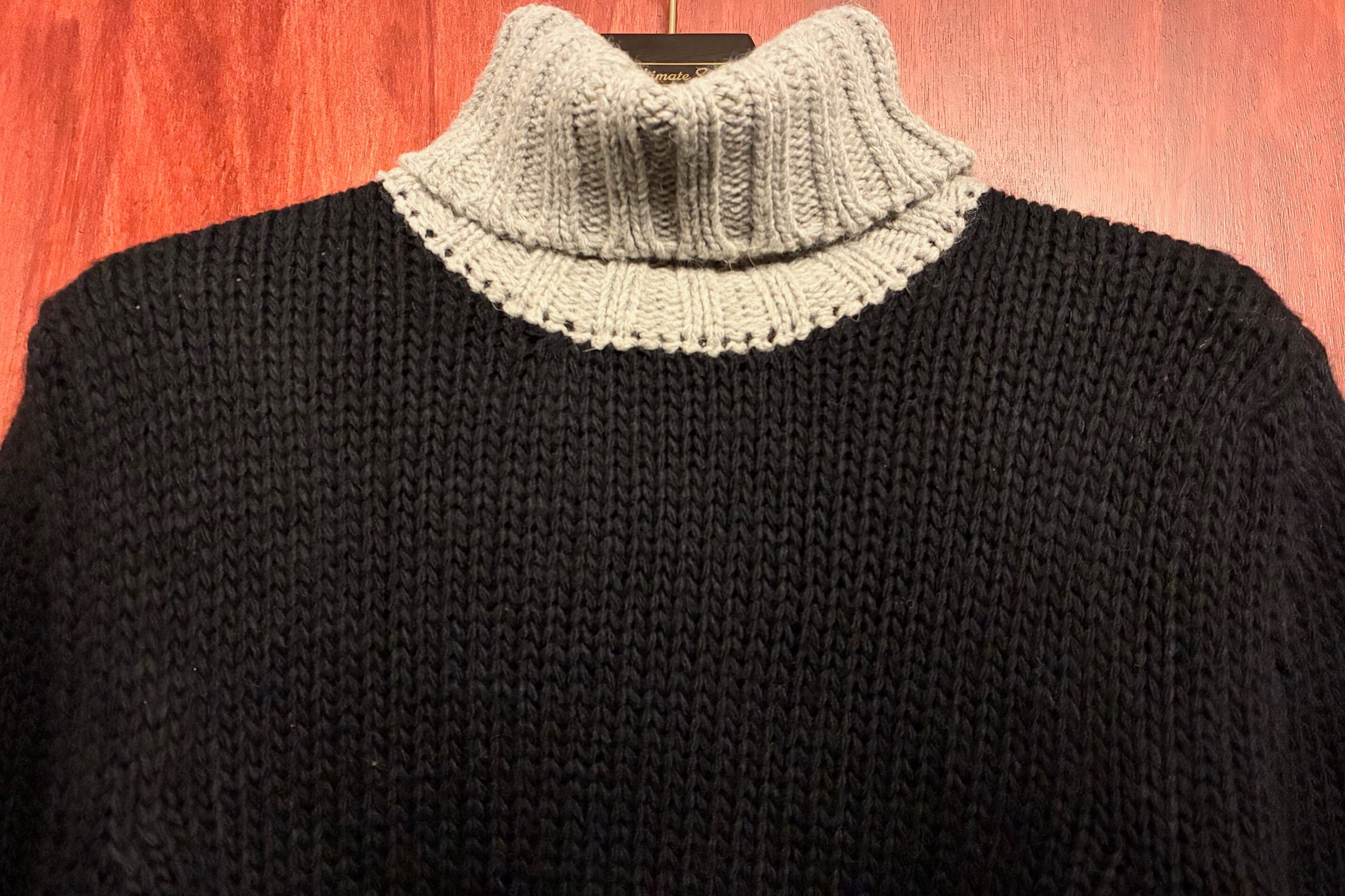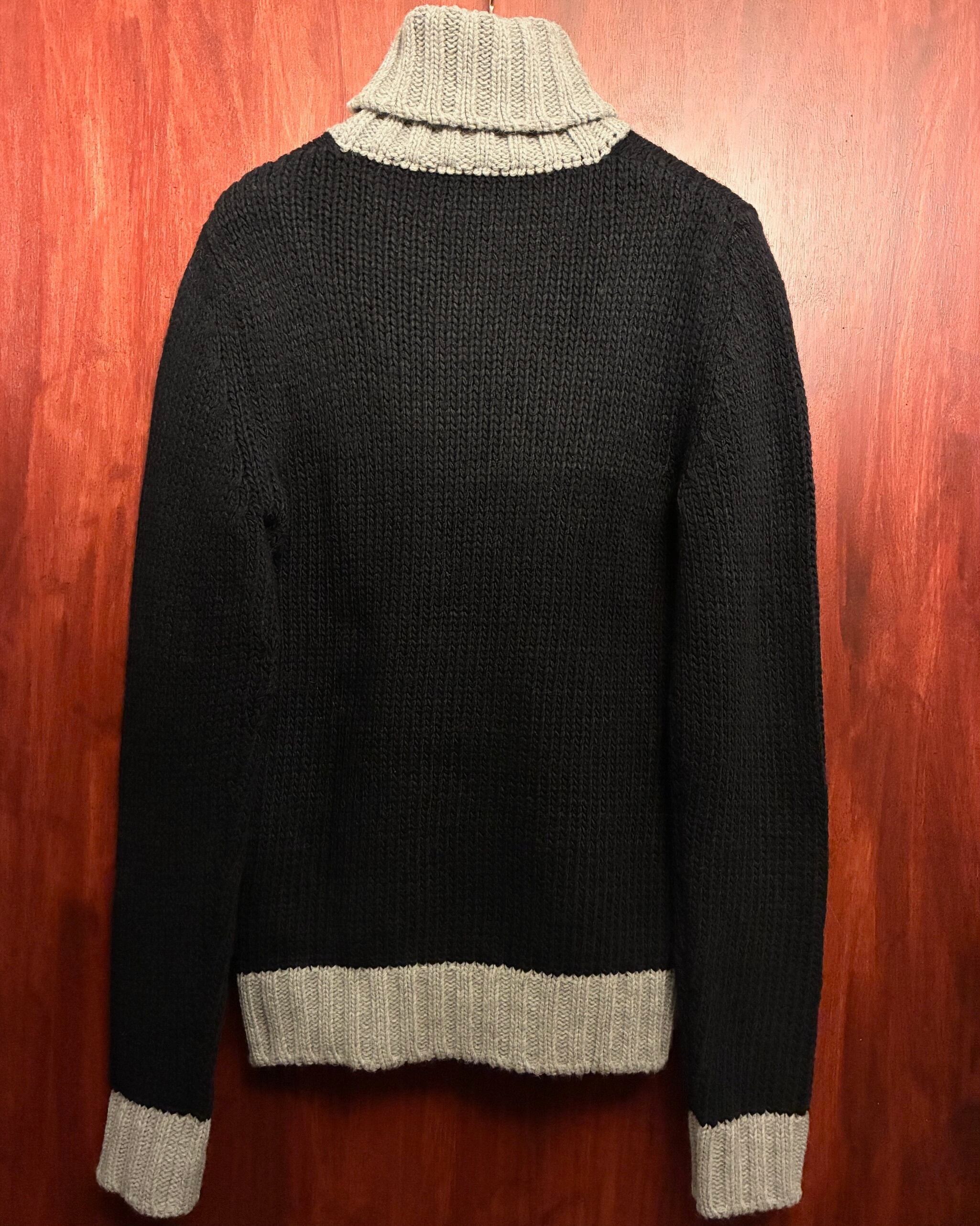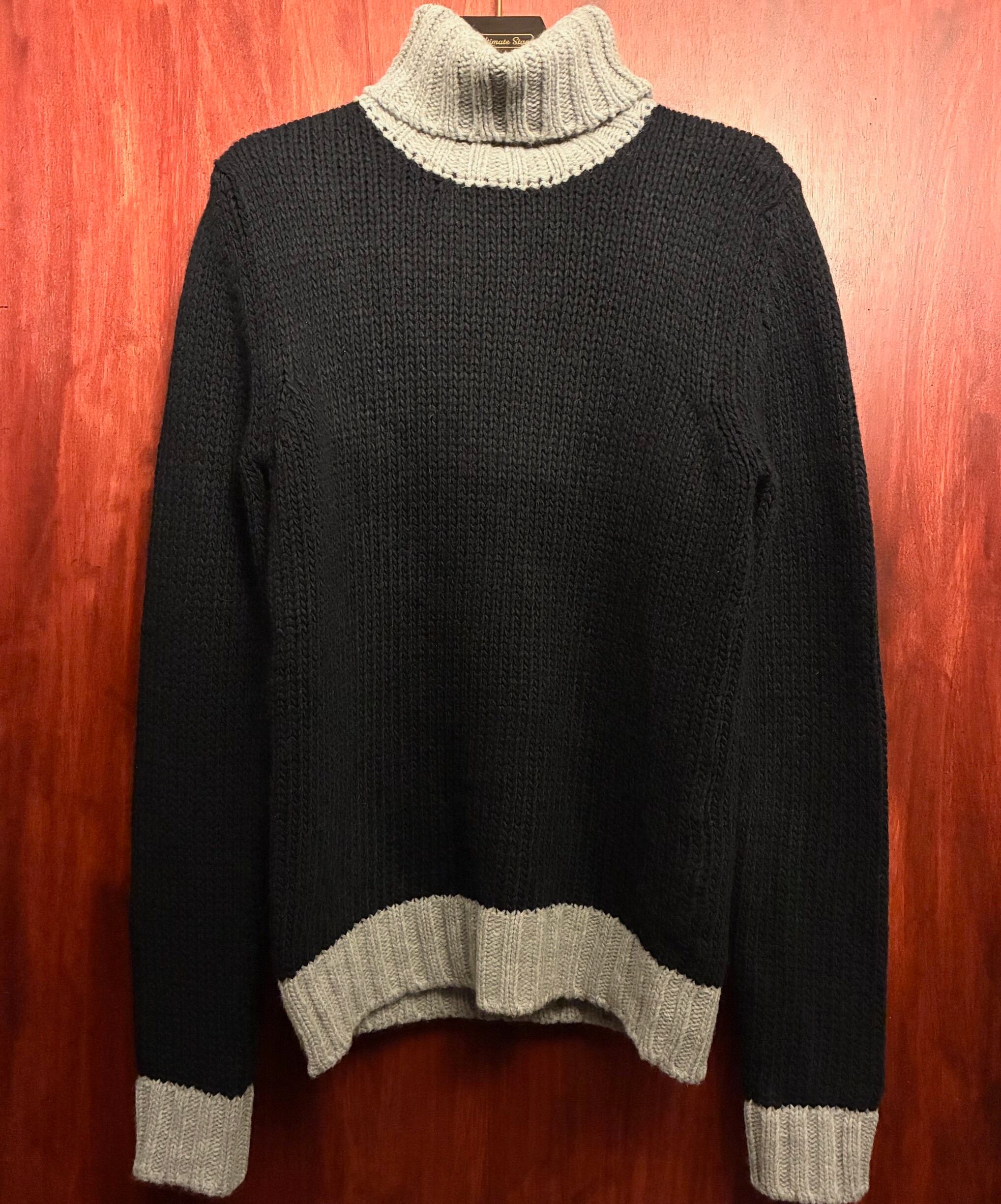 MADE IN ITALY製 VNECK ツートンカラー タートルネックウールセーター ブラック×グレー 48サイズ