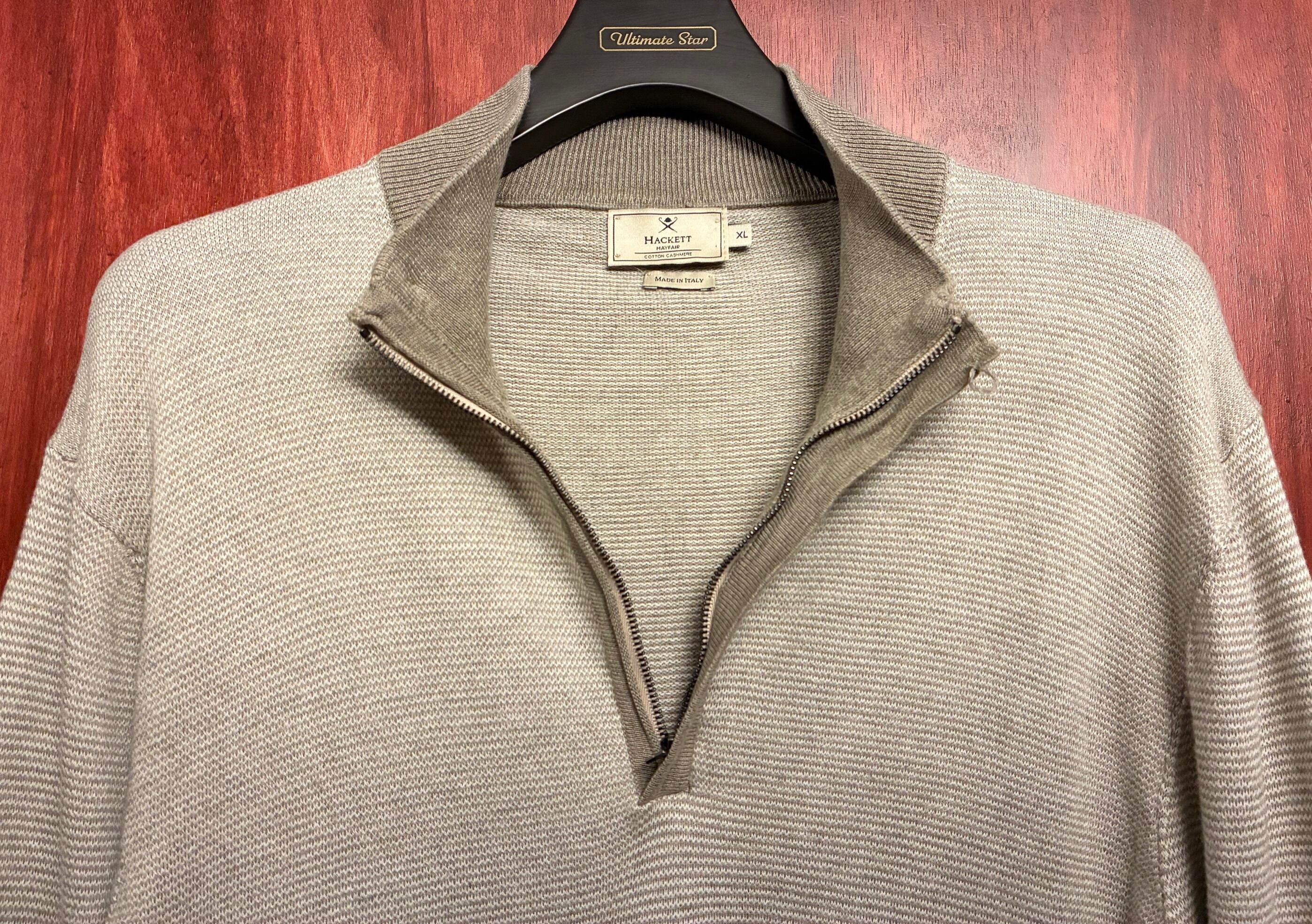MADE IN ITALY製 HACKETT MAYFAIR ハーフジップコットンカシミヤセーター ベージュ XLサイズ
