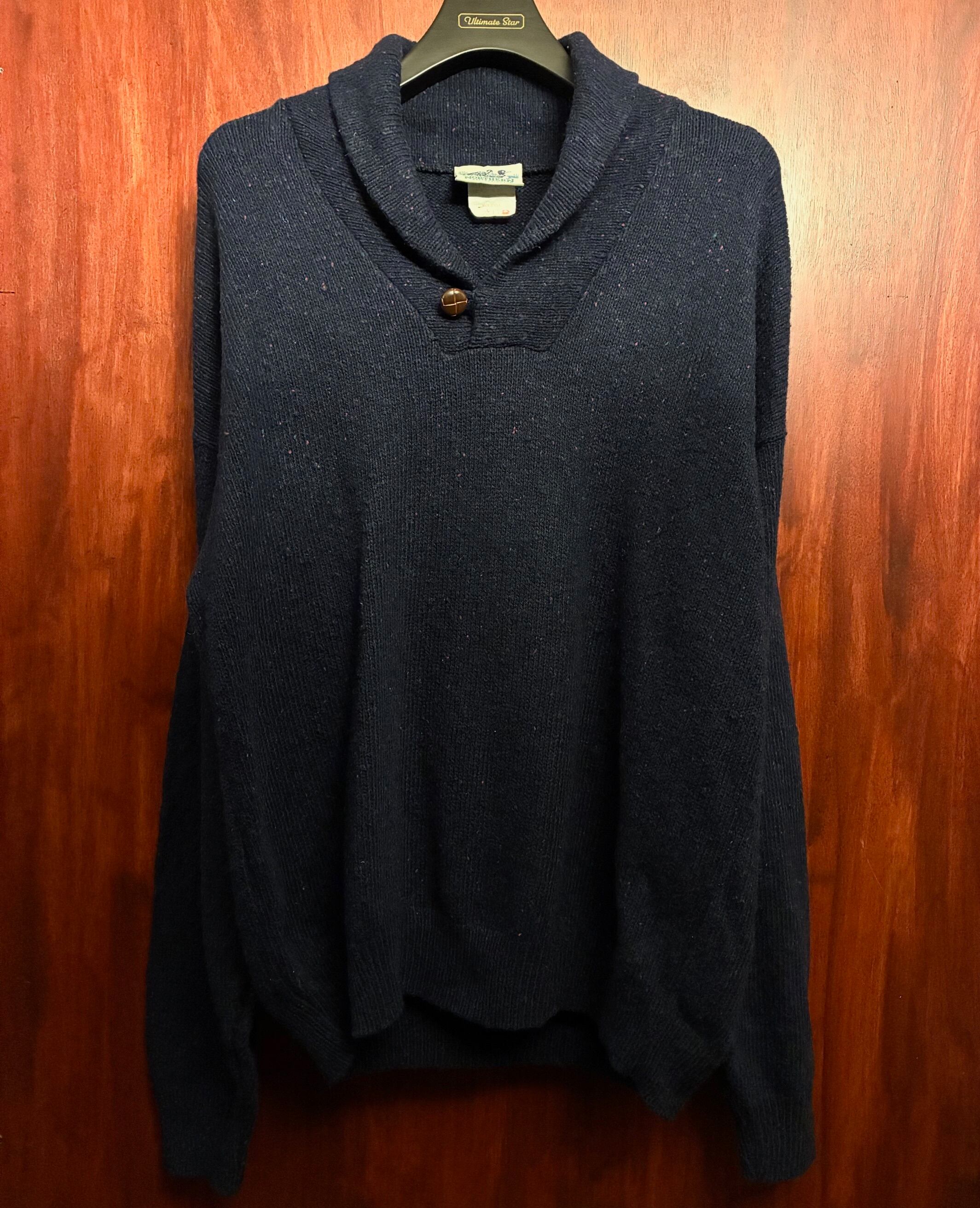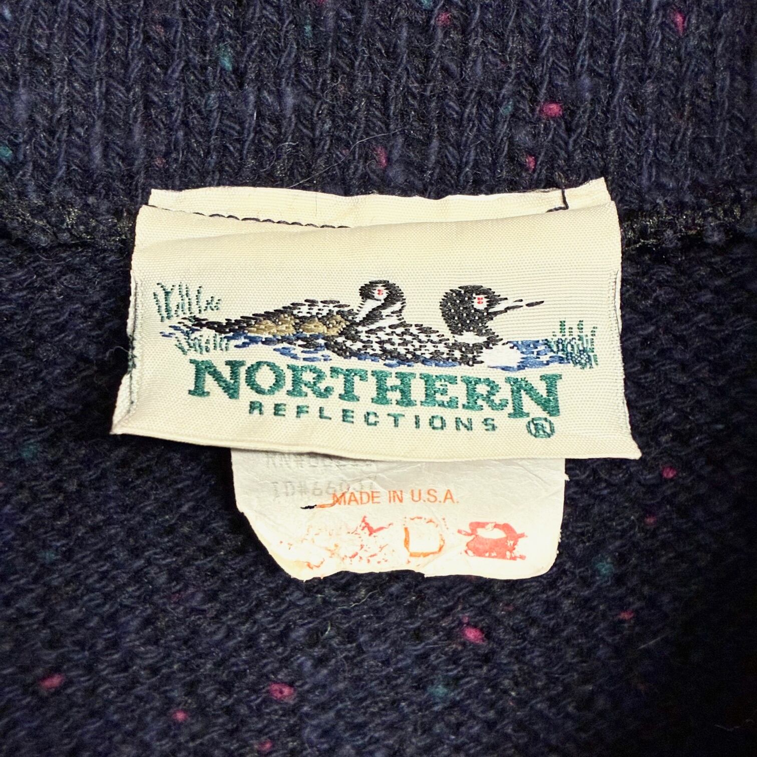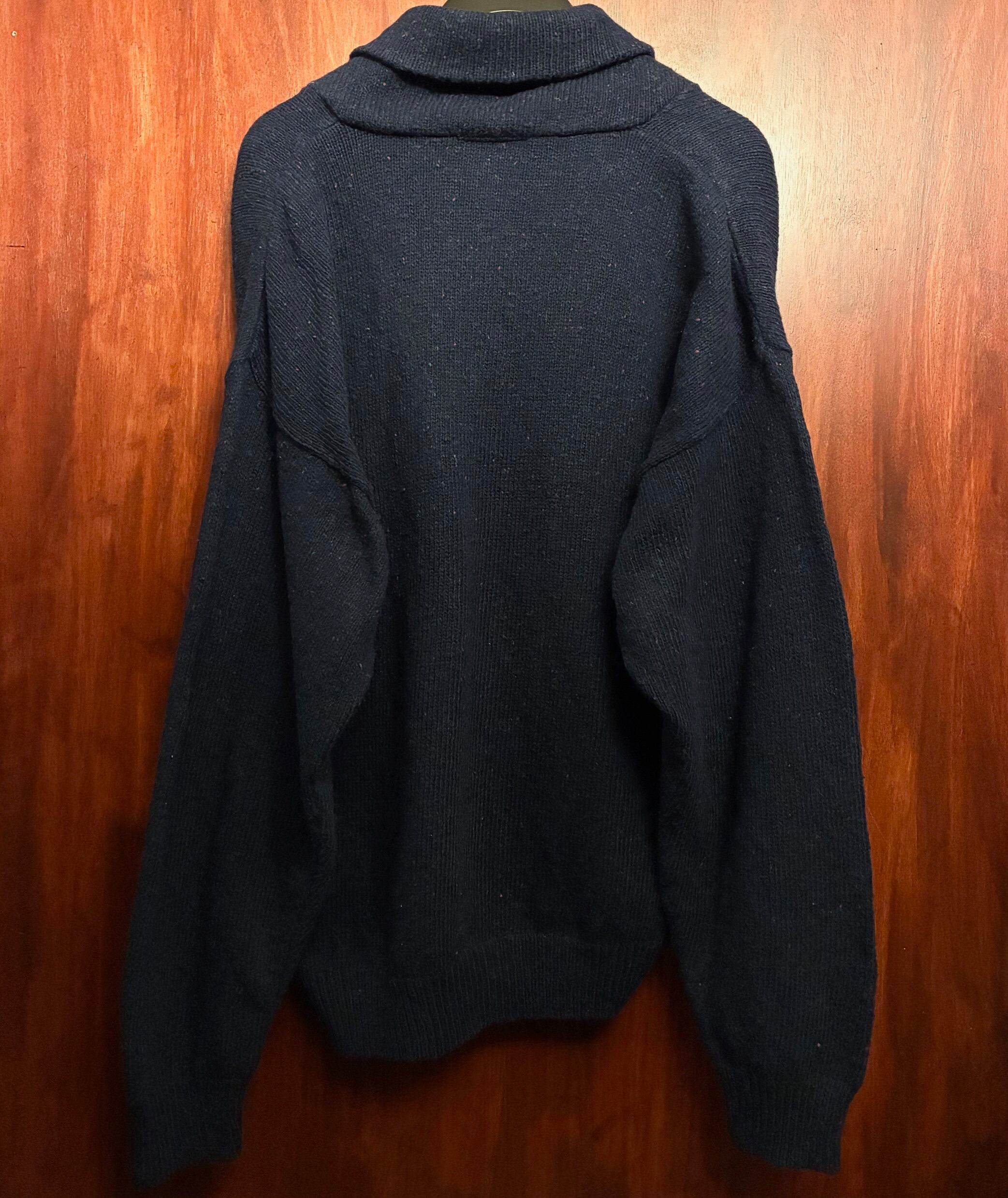 MADE IN USA製 90s NORTHERN REFLECTIONS ショールカラーコットンウールセーター ネイビー Mサイズ