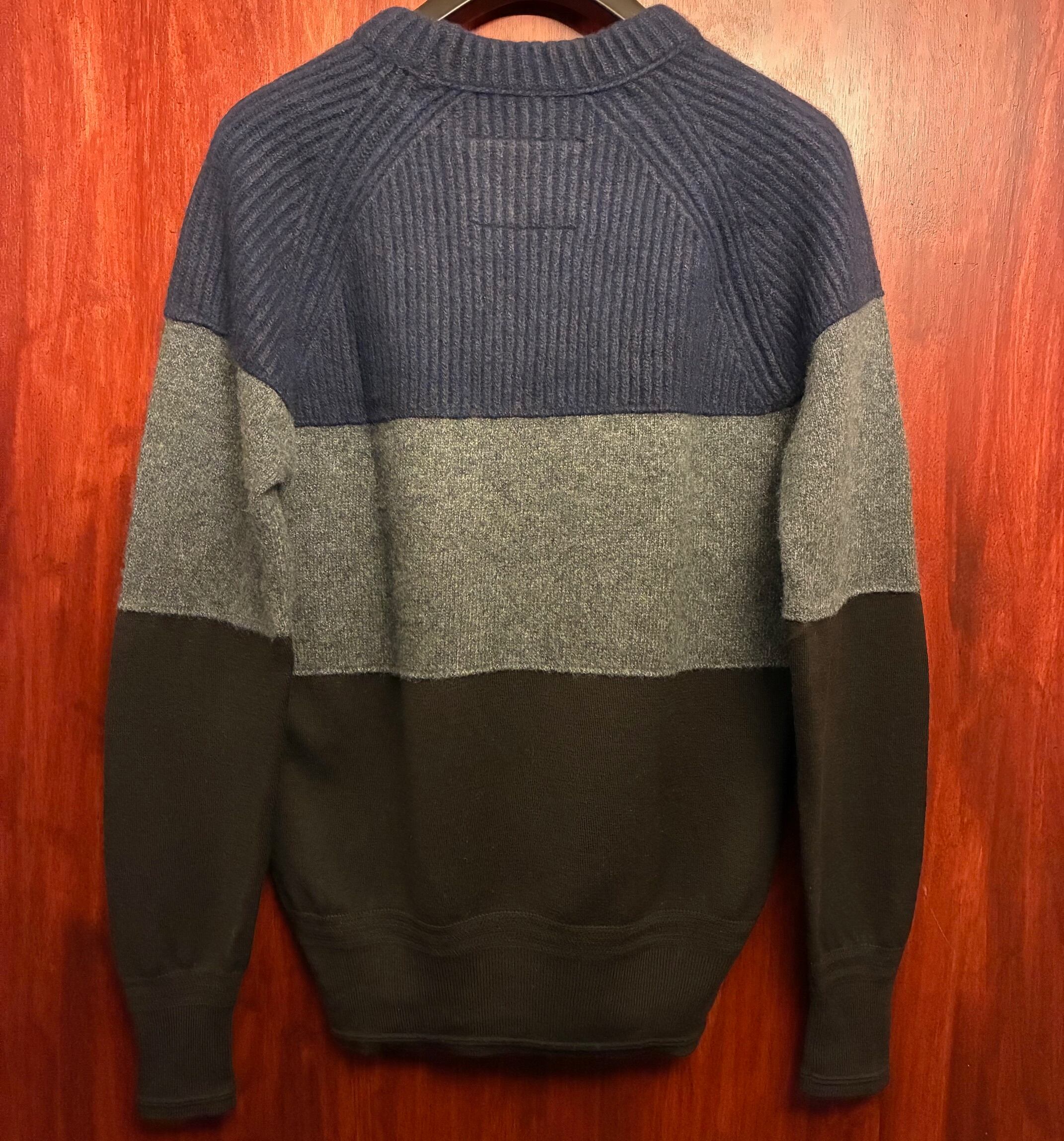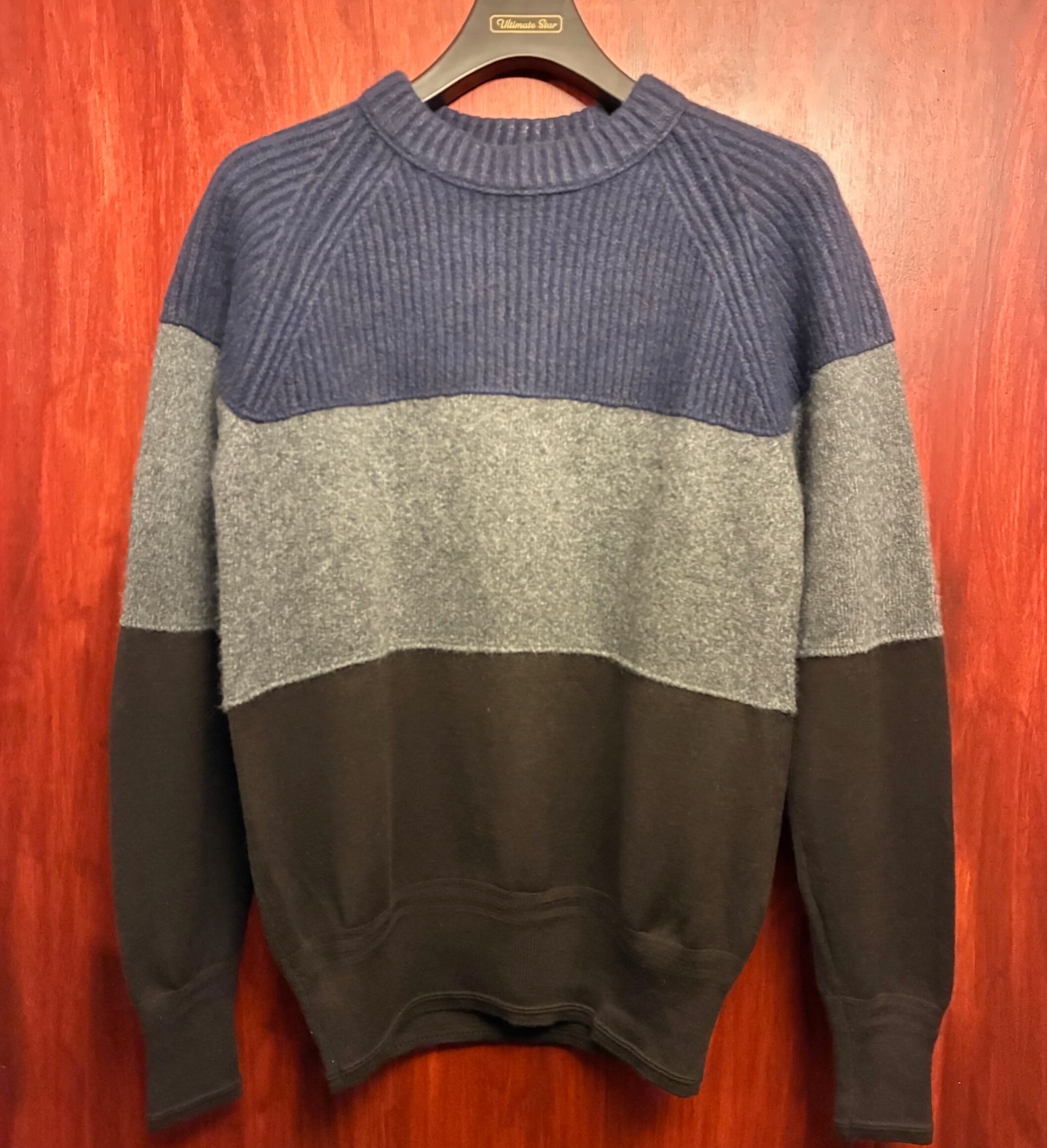 SIDE SLOPE ウールカシミヤシルク切り替え クルーネックセーター ネイビー×グレー×ブラウン 3サイズ