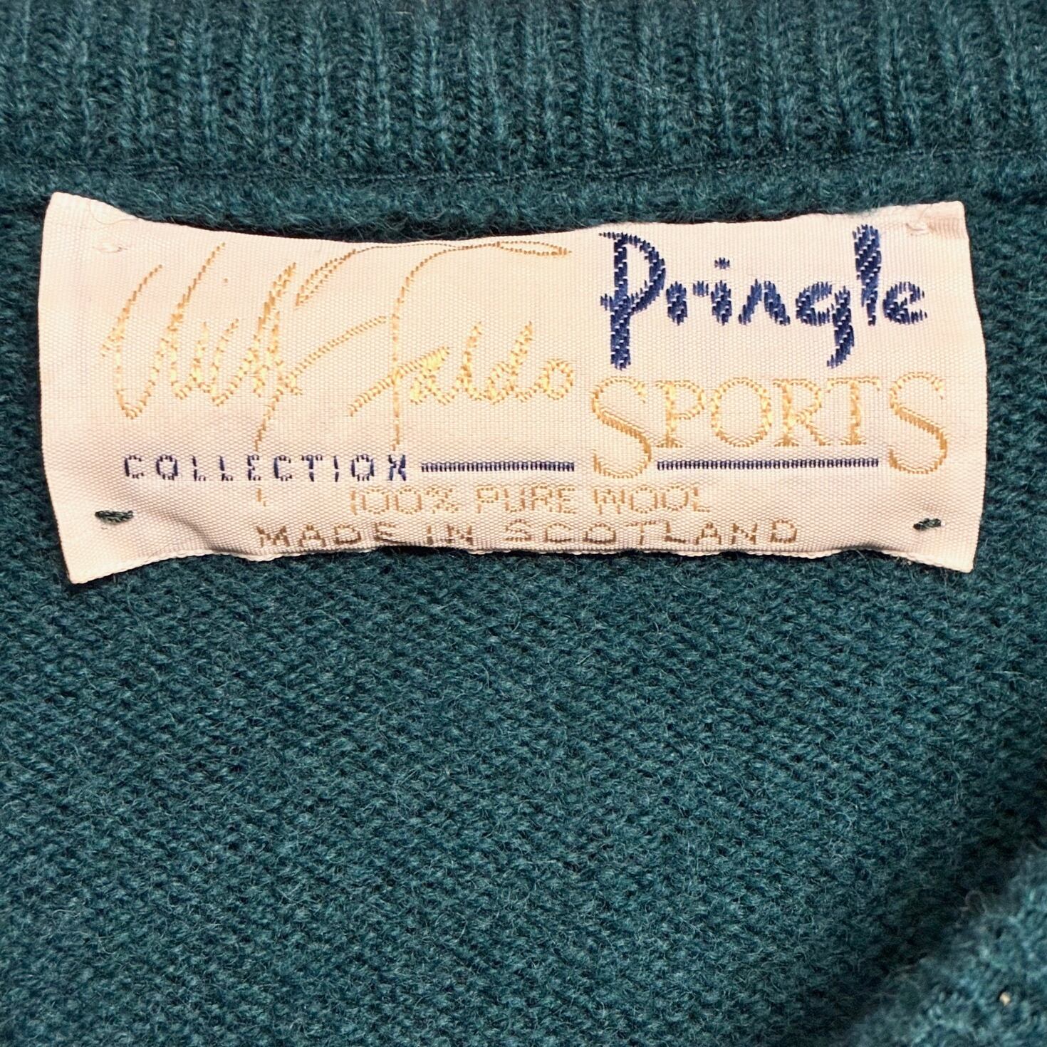 MADE IN SCOTLAND製 90s Pringle SPORTS Nick Faldo クルーネックウールセーター グリーン Lサイズ