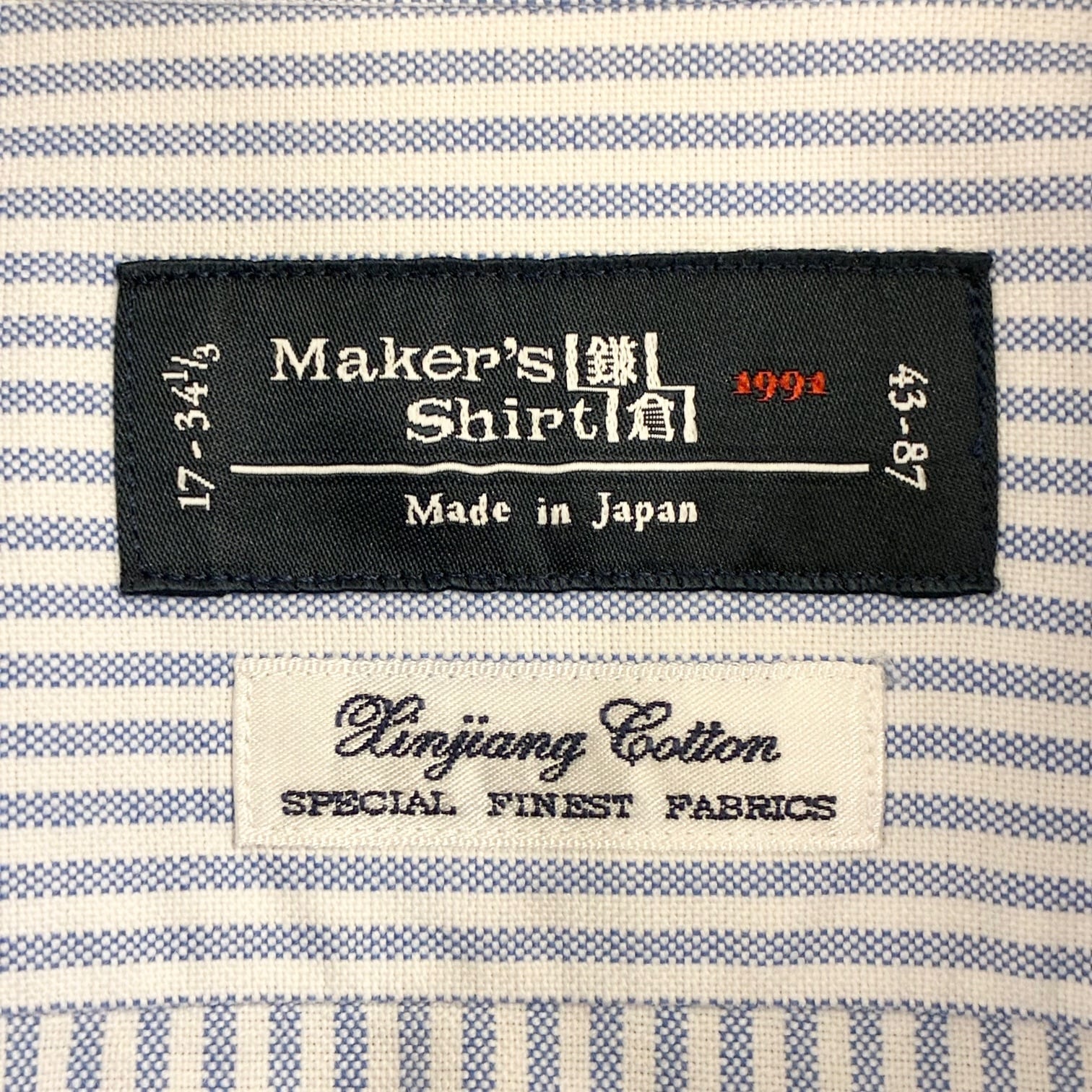 MADE IN JAPAN製 Maker's Shirt 鎌倉 ヒッコリーストライプ柄 長袖ボタンダウンオックスフォードシャツ サックスブルー×ホワイト 43-87サイズ