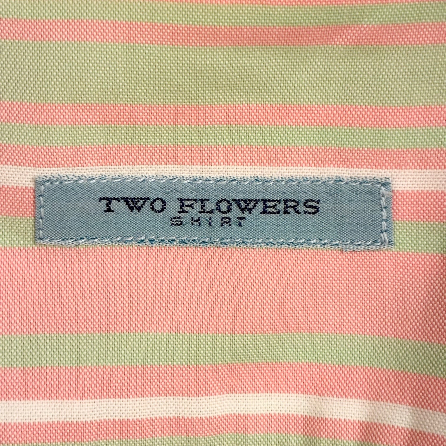 MADE IN ITALY製 TWO FLOWERS ストライプ柄 長袖オックスフォードシャツ ピンク Lサイズ
