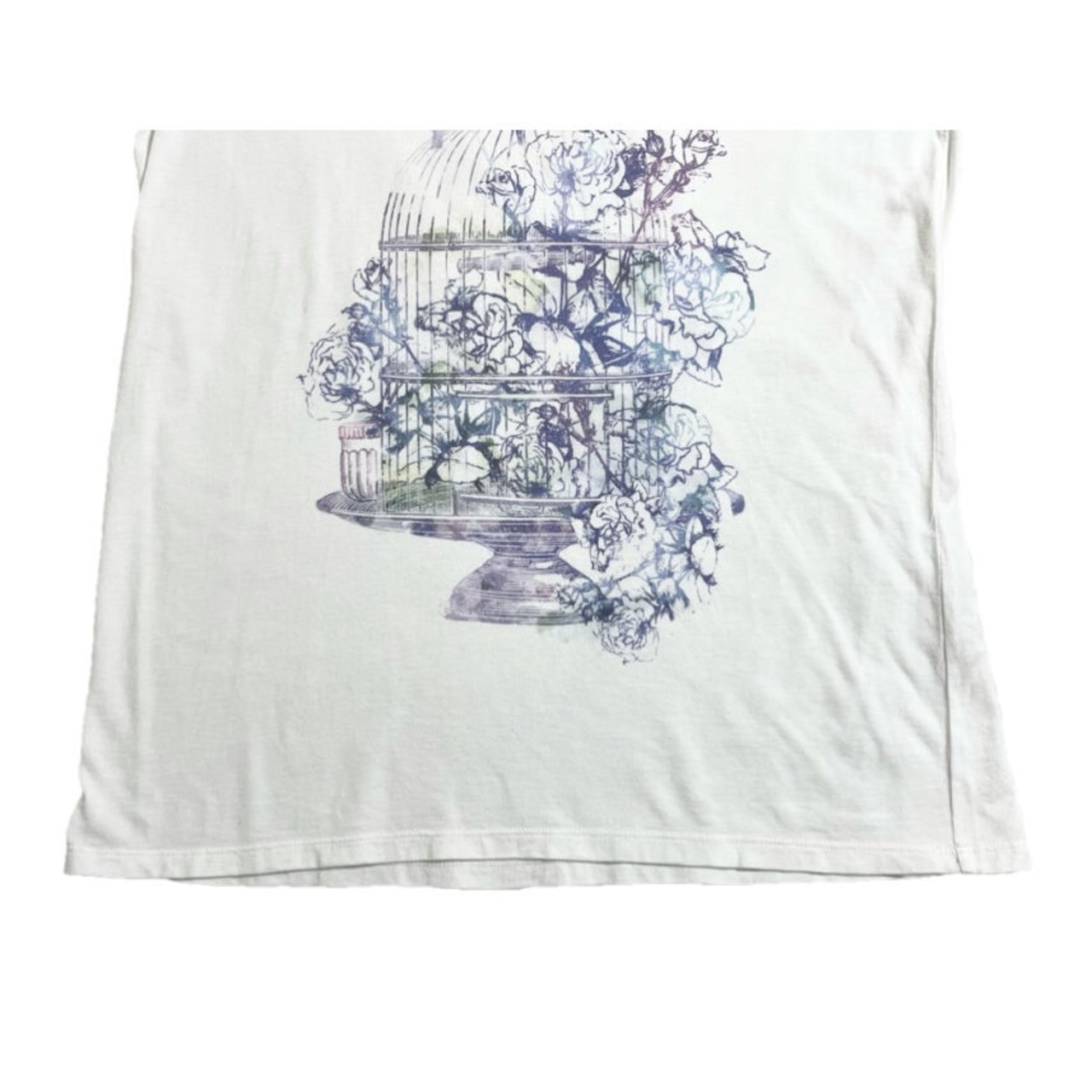 こちらは花で彩られた鳥かごがデザインされたTシャツです。