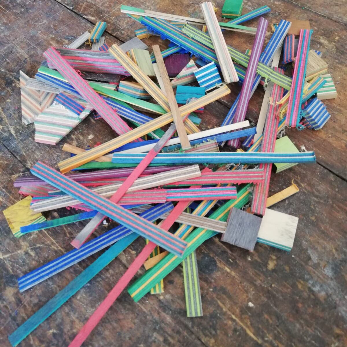 洗浄した廃スケートボードを削って製作しておりますので、商品の特性上デッキの種類やデザインによって1点1点カラーリングが異なりますので何卒ご了承下さい。