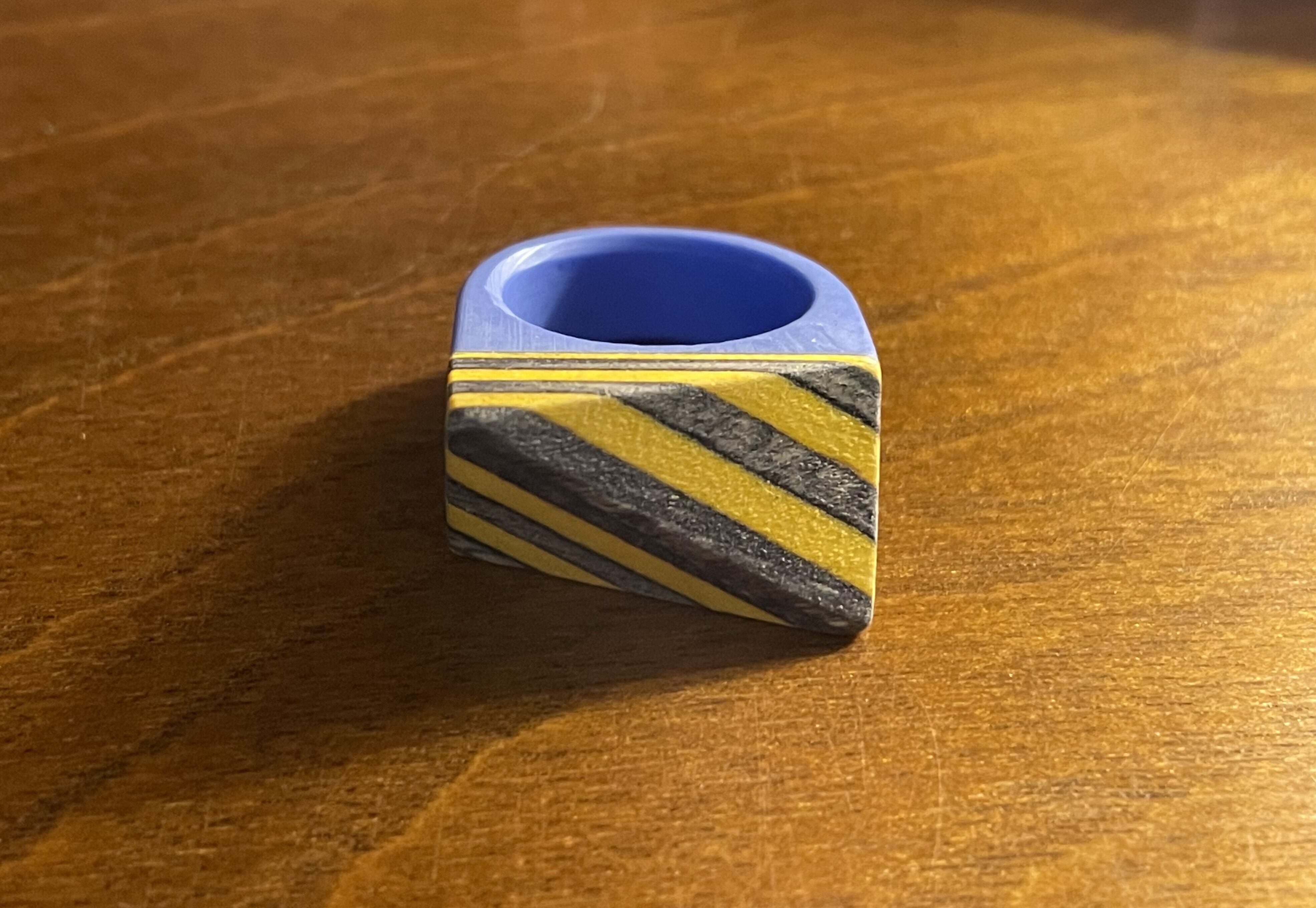 ★新品★ HANDMADE IN ITALY製 SIMONE FRABBONI リサイクルスケートボード三角型リング イエロー×ブルー