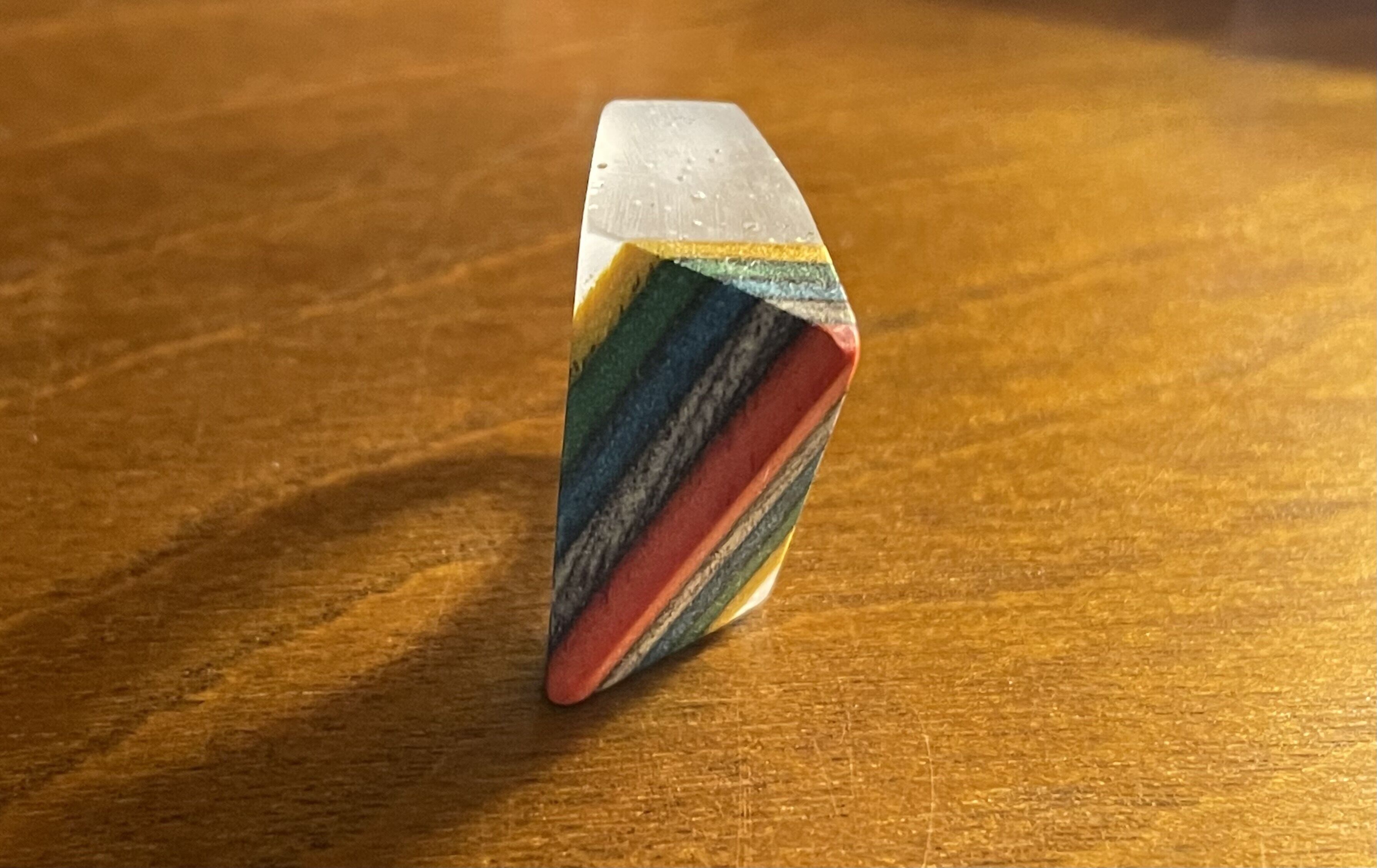 ★新品★ HANDMADE IN ITALY製 SIMONE FRABBONI リサイクルスケートボード三角型リング マルチカラー×クリア