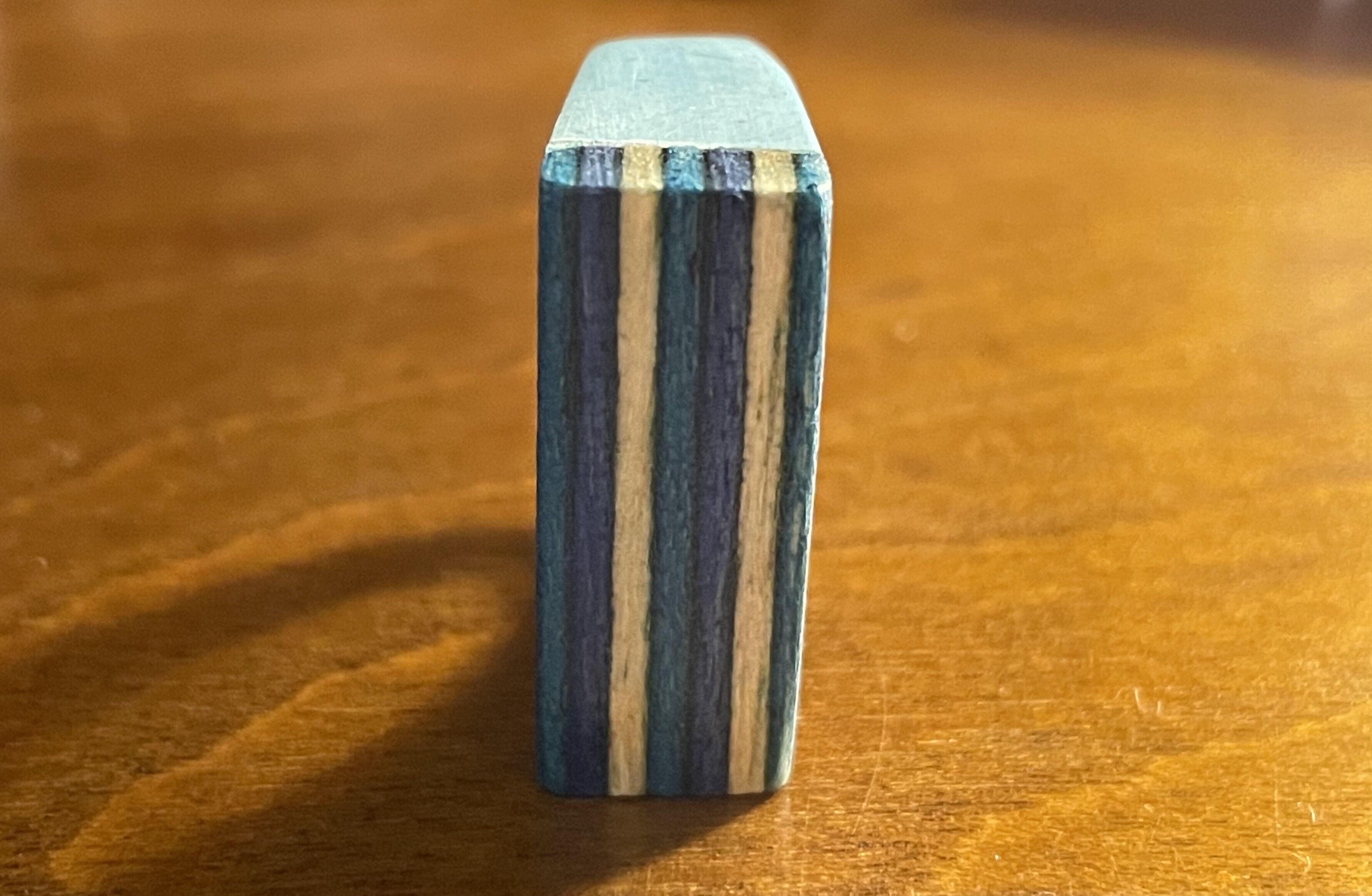 洗浄した廃スケートボードを削って製作しておりますので、商品の特性上デッキの種類やデザインによって1点1点カラーリングが異なりますので何卒ご了承下さい。