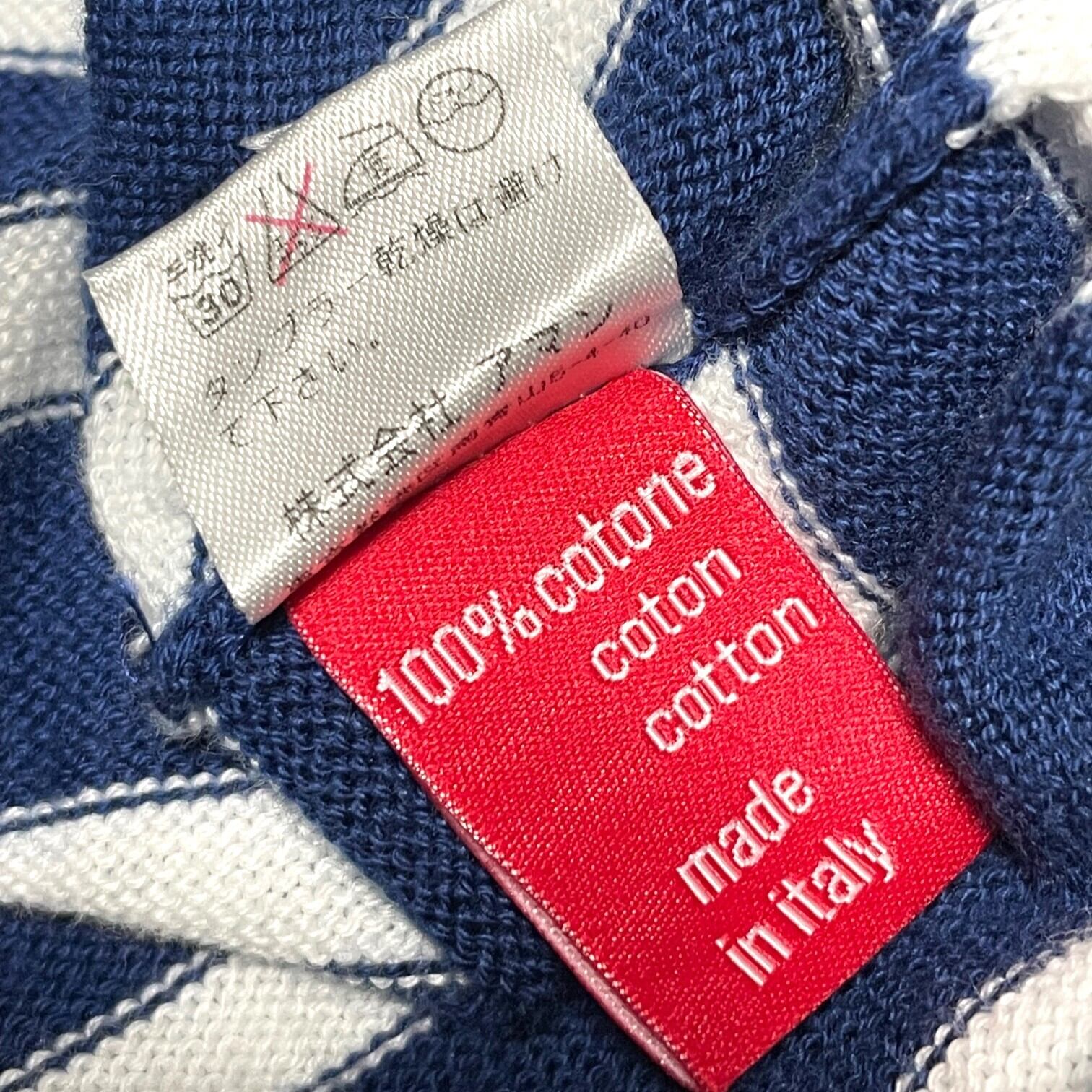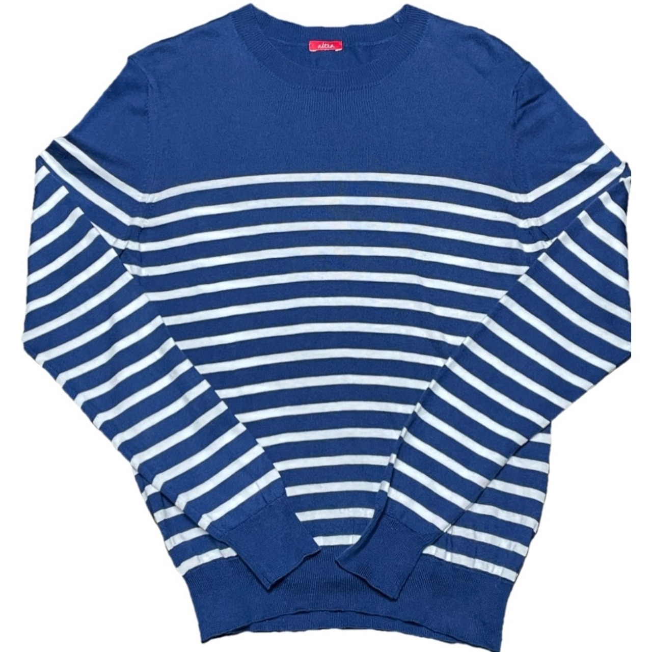 MADE IN ITALY製 altea ボーダークルーネックコットンセーター ネイビー Mサイズ