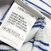 このマリンTシャツの原型は元々ラッセル編みという生地で作られたもので、この生地を織れるマシンは現在フランスでも数台しかなく編むのにも時間がかかるので大量に生産されない為、時代の流れで少しずつフランス製以外にアジア生産の物が増えてきております。